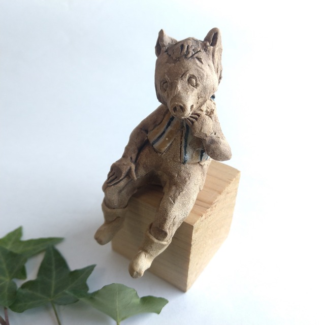 size 7cm×4.5cm×6cm(H) ※各サイズは最大値となっております ひとりずつ手びねりで制作している陶人形で、素材は陶土を使用しています。 干支の動物たちを、少し擬人化したり、可愛らしいポーズで制作してみました。 十二支の起源は古代中国にあり、天文学や占星術に基づいて作られたと言われています。 時間や方角を表す記号としても使われ、日本に伝わった後、動物に例えられるようになり この動物たちは、人々に親しみやすく、生活に根付いた象徴ともされています。 それぞれの干支には独自の意味や特徴があり、今日では占いや性格判断にも活用されています。 亥(い)の特徴は、「勇気と決断力を象徴し、率直で物事をやり遂げる力がある。」ともいわれています。 衣装の一部分には薄く透明釉を施しているので、その部分は少し光沢があります。 全体的に釉薬を使用していないので、表面は少しザラザラしています。 ・・ご購入の際の注意点・・ ・作品はすべて素焼き(800℃)、本焼き(1250℃)と灯油窯で焼成しています。 ・地域によって配送料金が異なります。 ・ご購入前に作品の「サイズ」や「素材」を十分にご確認頂きますようお願い致します。 ・画面上と実物では色が異なって見える場合があります。ご不明な点がありましたら、お問い合わせください。 ・この作品は、他のサイト、イベントや展示会でも販売することもありますので、ご注文いただいた時点で在庫切れとなってしまっていることもあります。 販売済み作品はできるだけ速やかに表示切替するように心がけますが、その時はどうぞご了承ください。