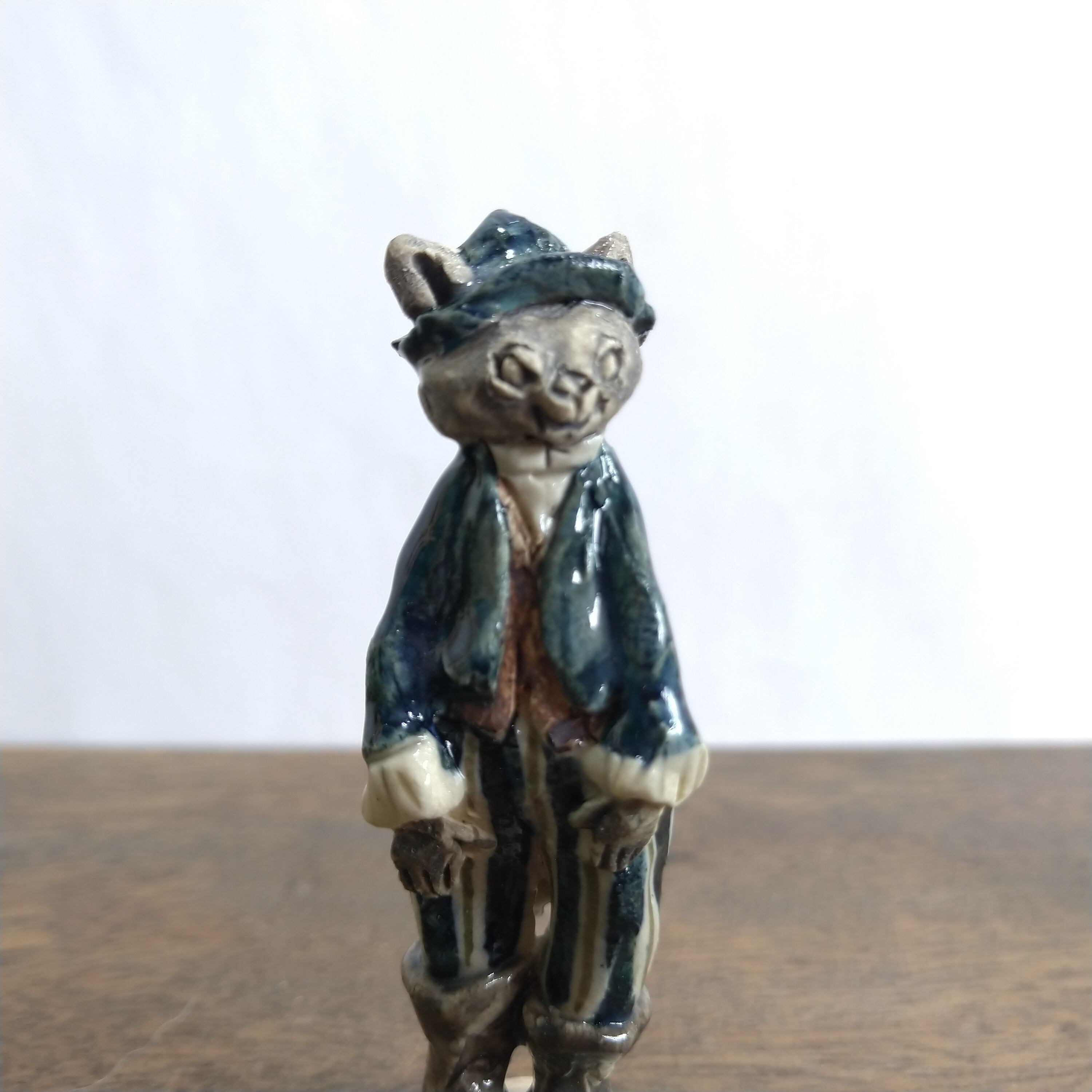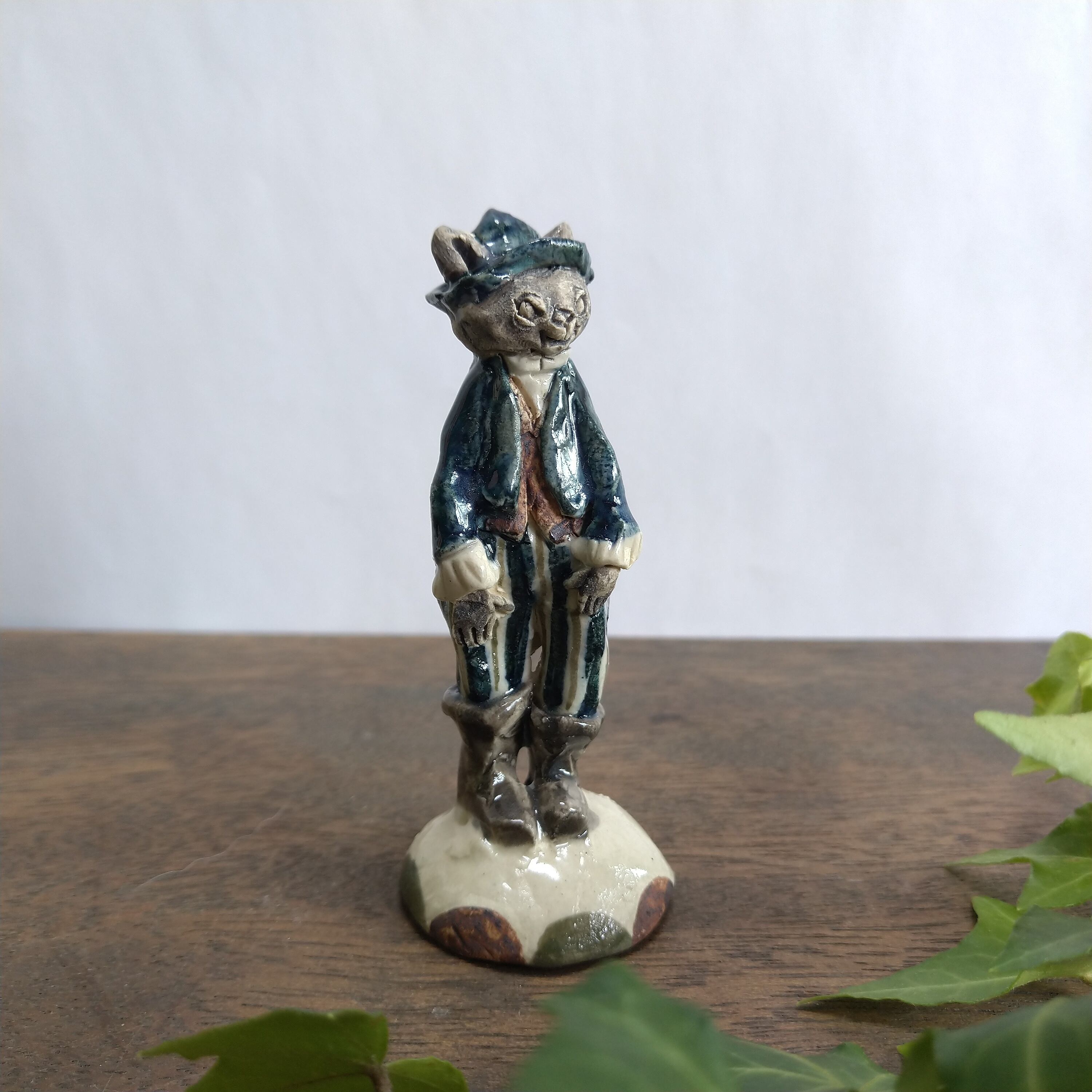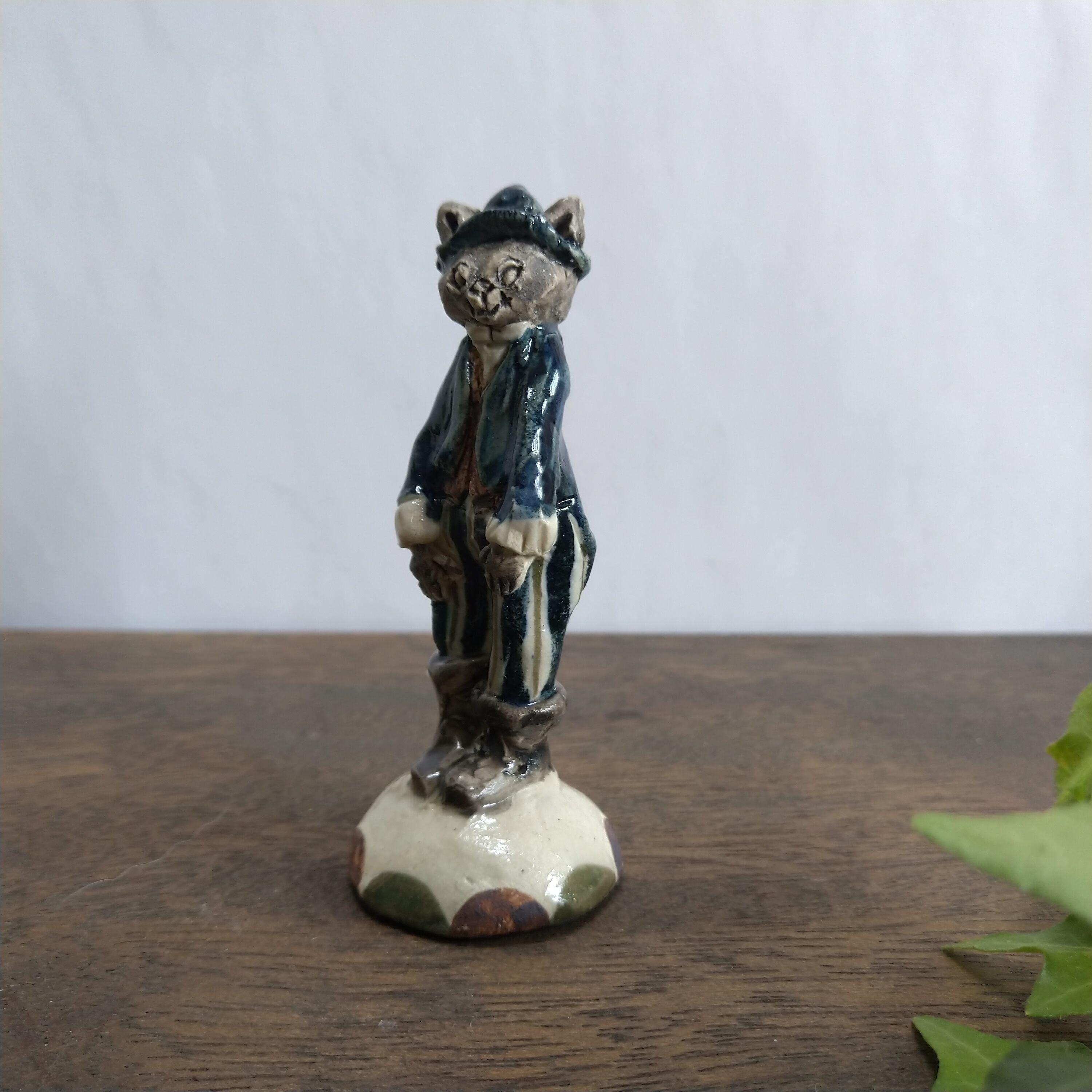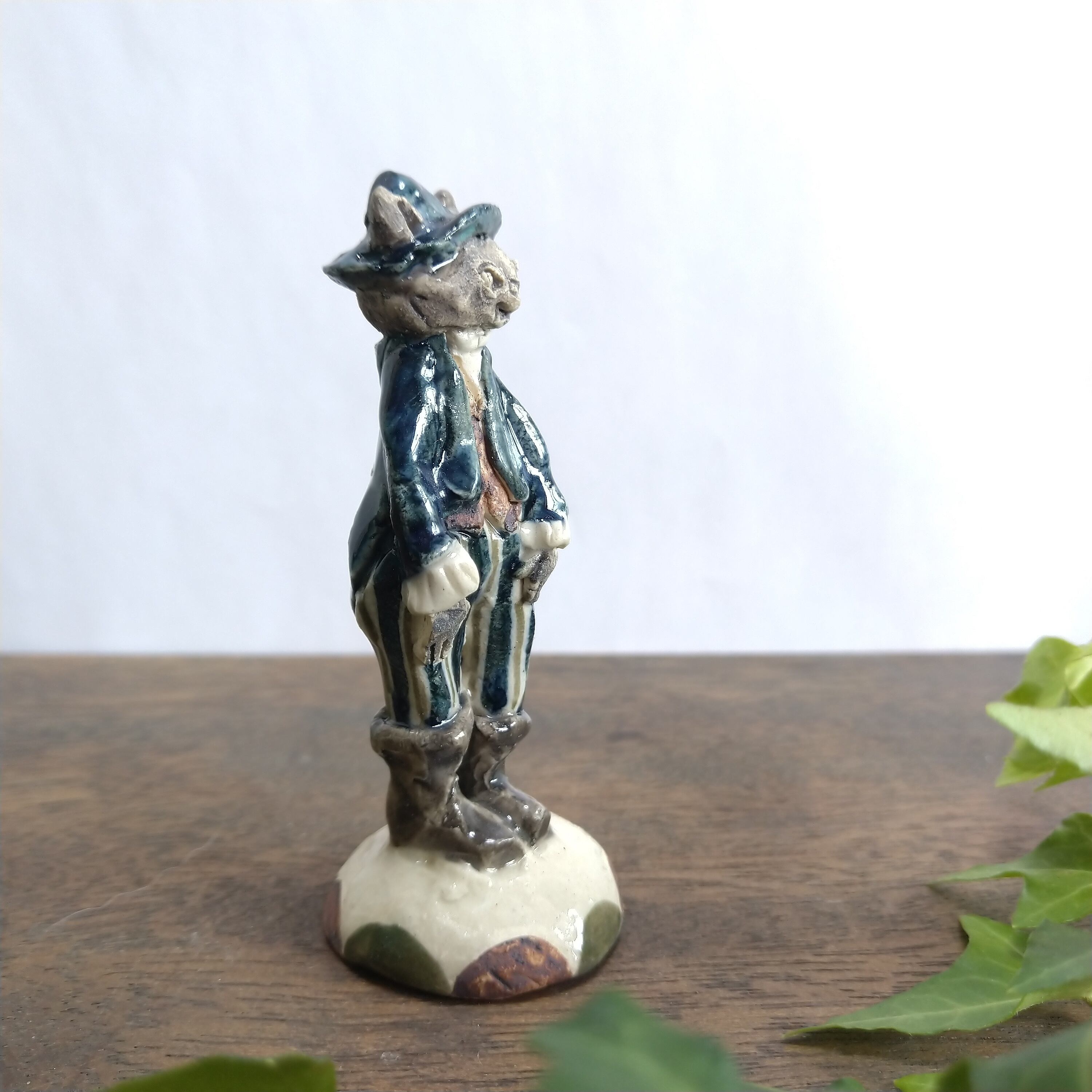 土台と服の一部分にポイントで薄く透明釉をかけているので、その部分は少し光沢があります。