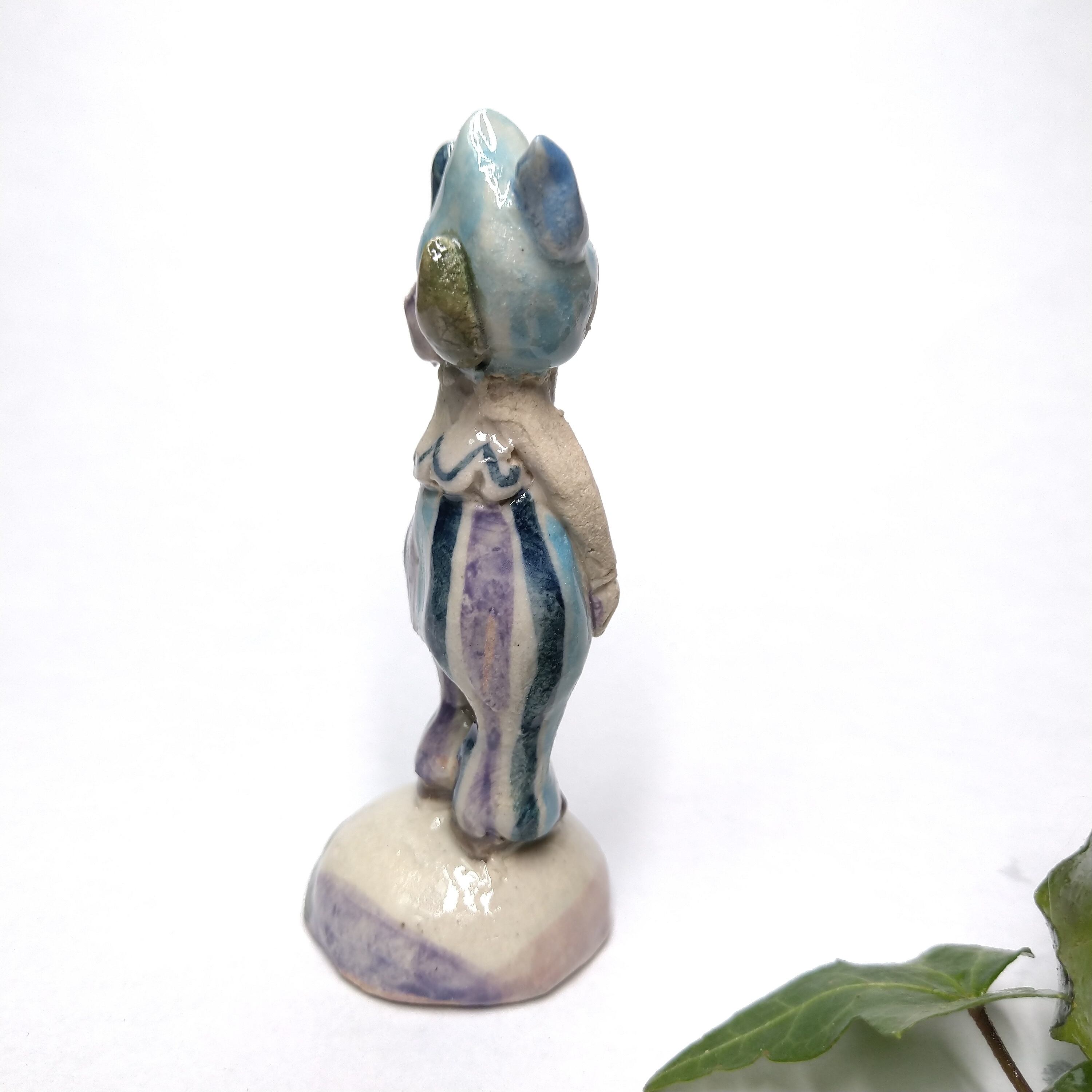 土台と衣装の一部分にポイントで薄く透明釉をかけているので、その部分は少し光沢があります。