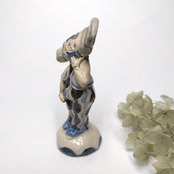 土台と衣装の一部分にポイントで薄く透明釉をかけているので、その部分は少し光沢があります。