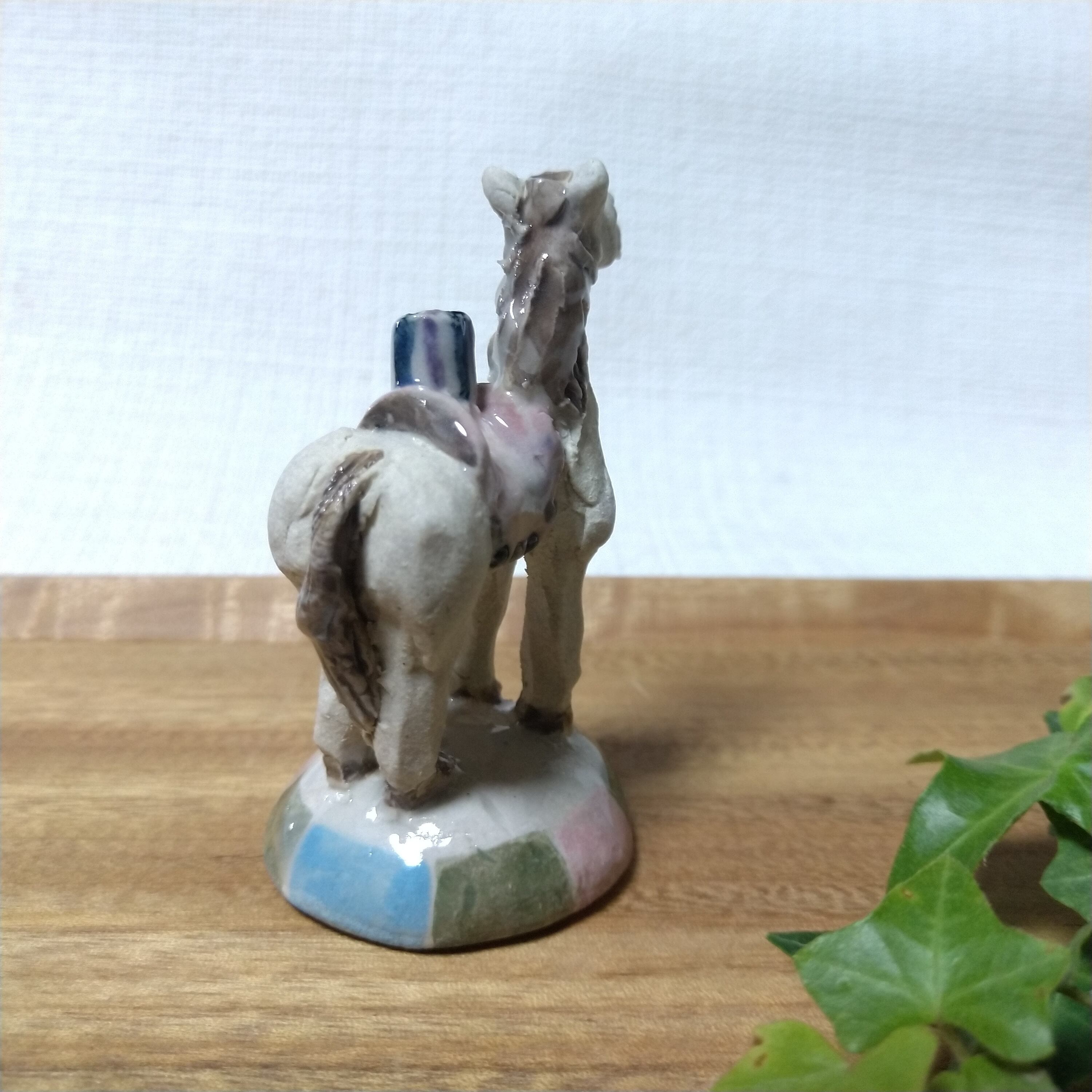 土台やたてがみや尻尾、装飾部分には薄く透明釉をかけているので、その部分は少し光沢があります。