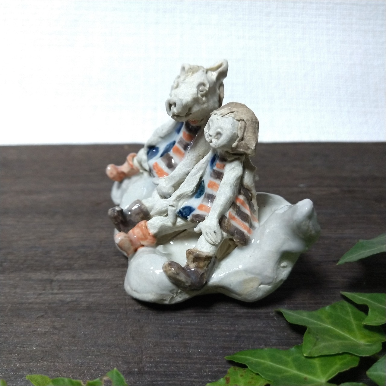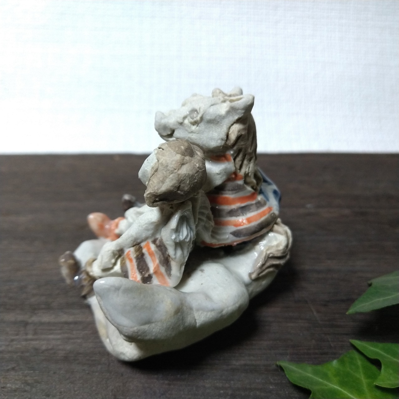 たてがみや尻尾、衣装や土台の一部分にポイントで薄く透明釉をかけているので、その部分は少し光沢があります。