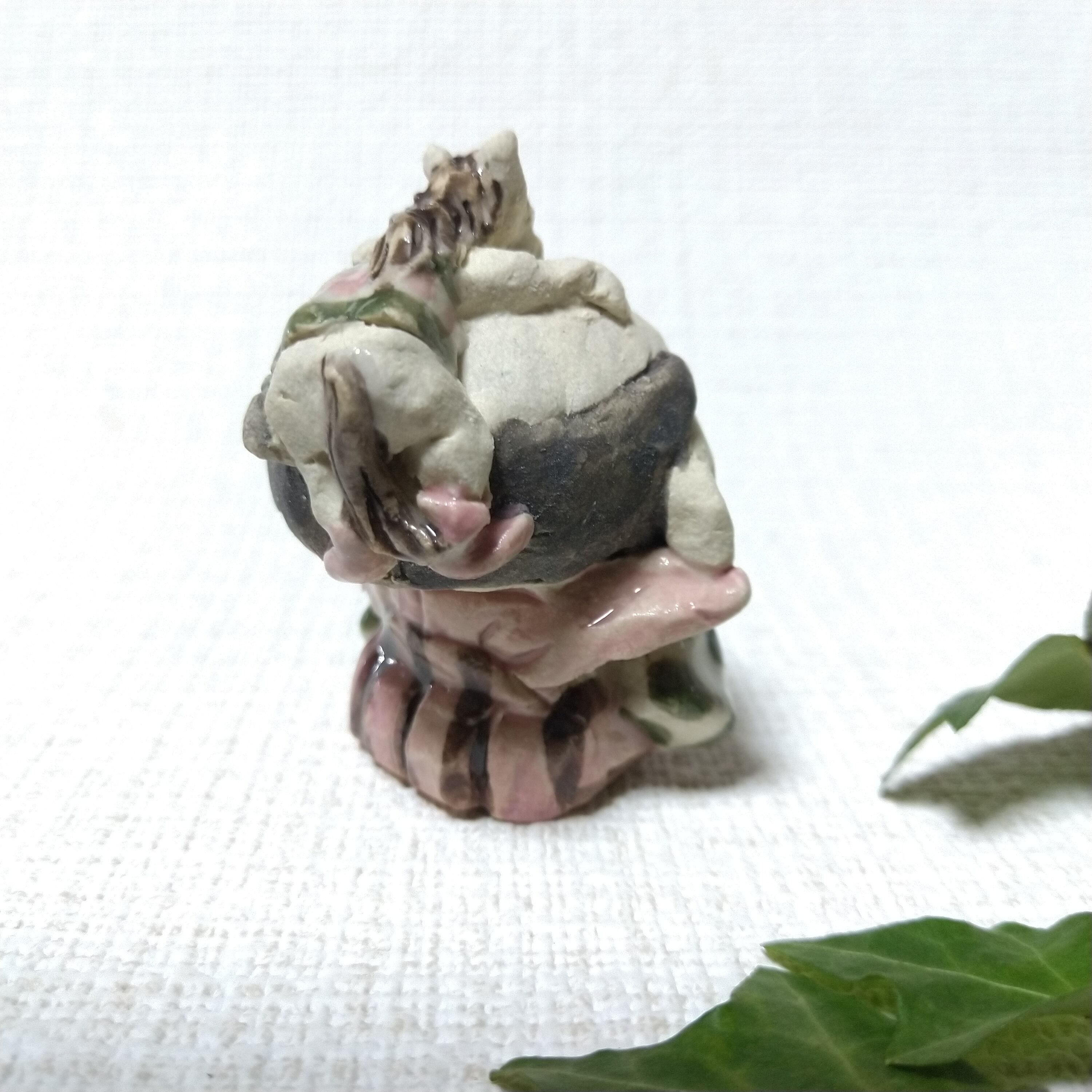 ※ 画像では大きく見えますが、実際は小さな作品です。ご検討の際には「サイズ」のご確認をお願いいたします。こちらのシリーズ作品はA→Eと少しずつ福助のサイズが大きくなっています。