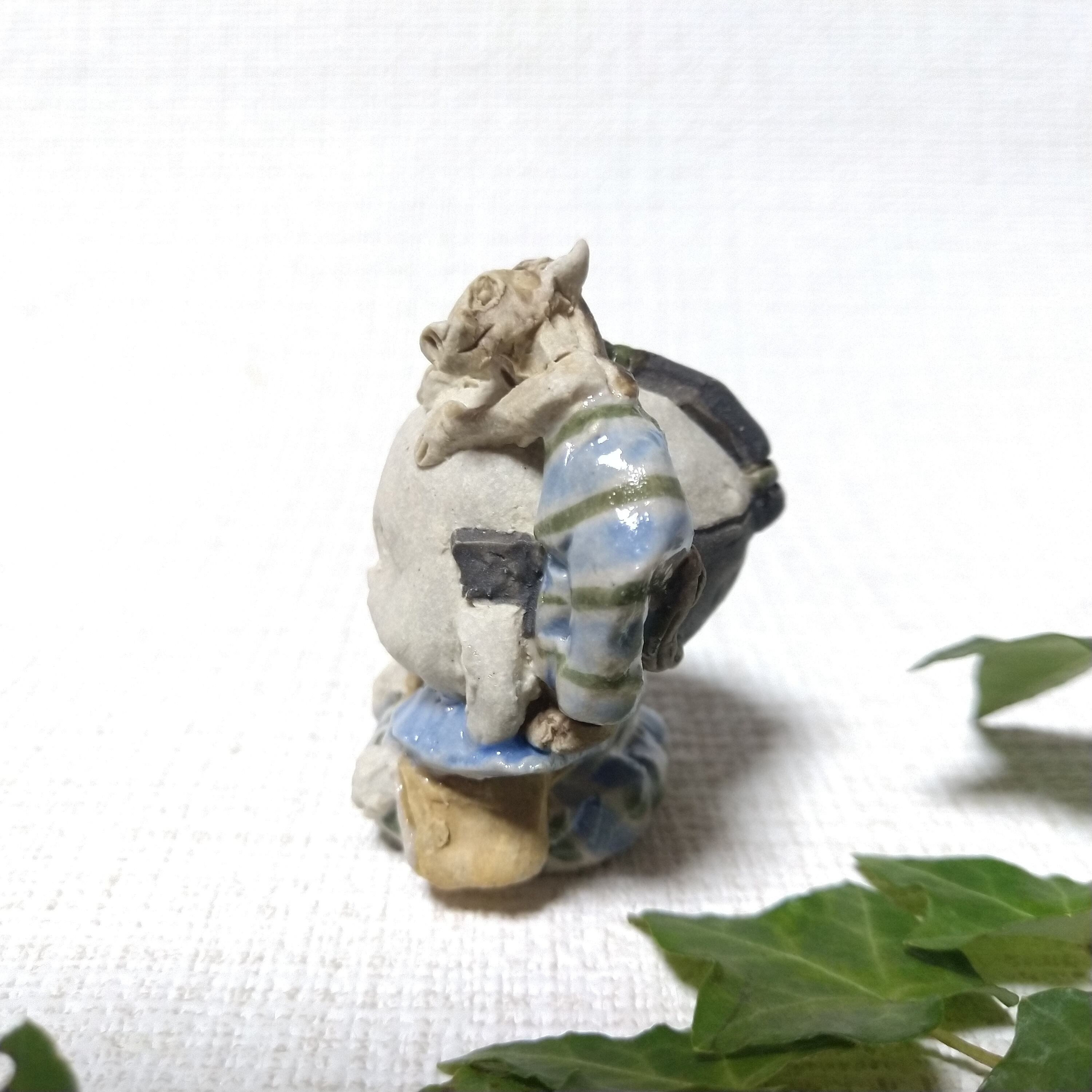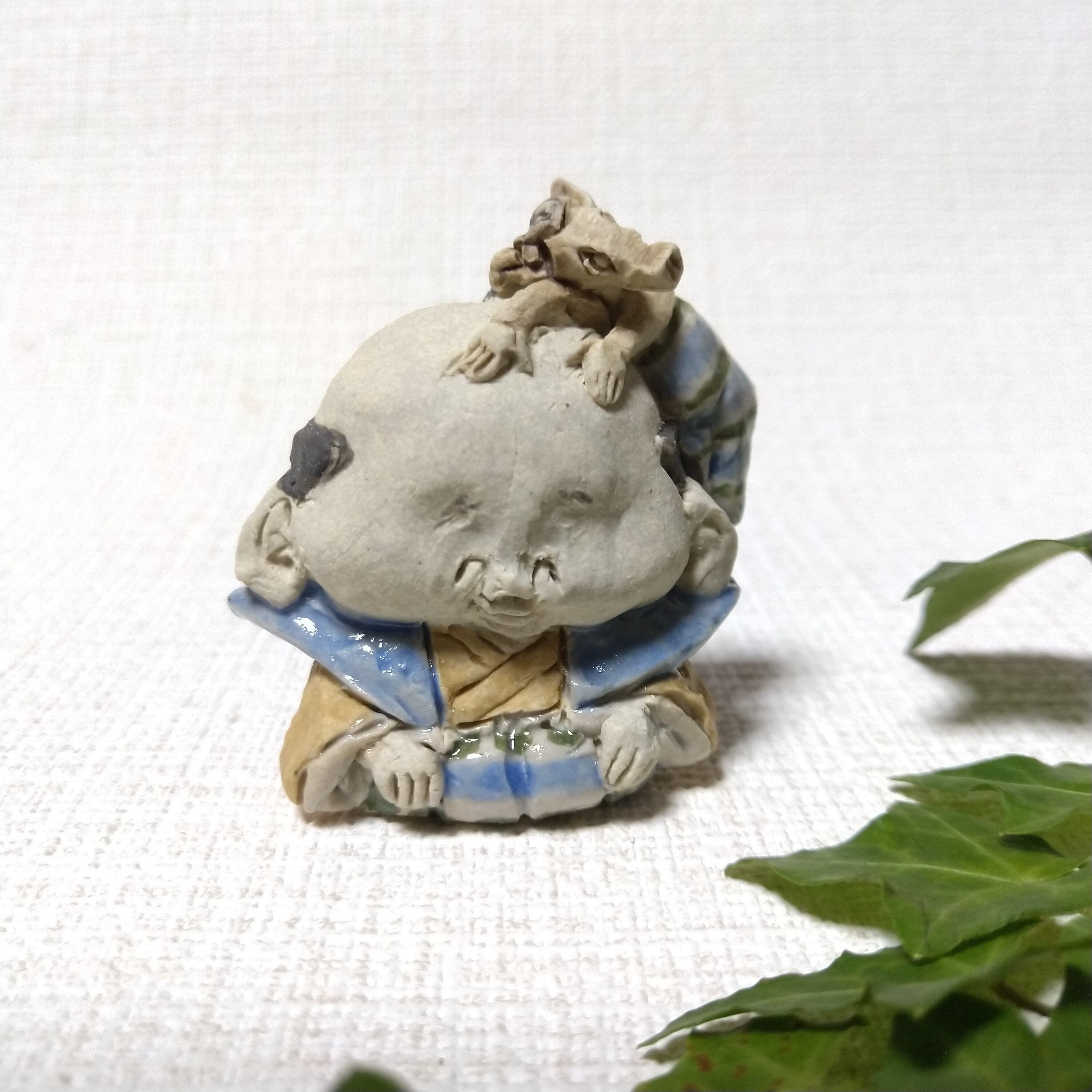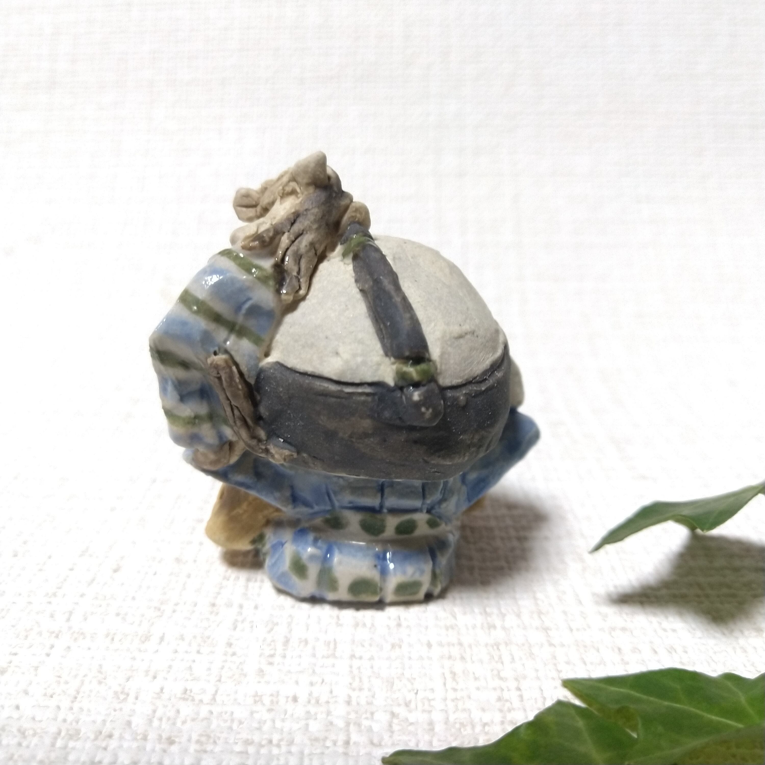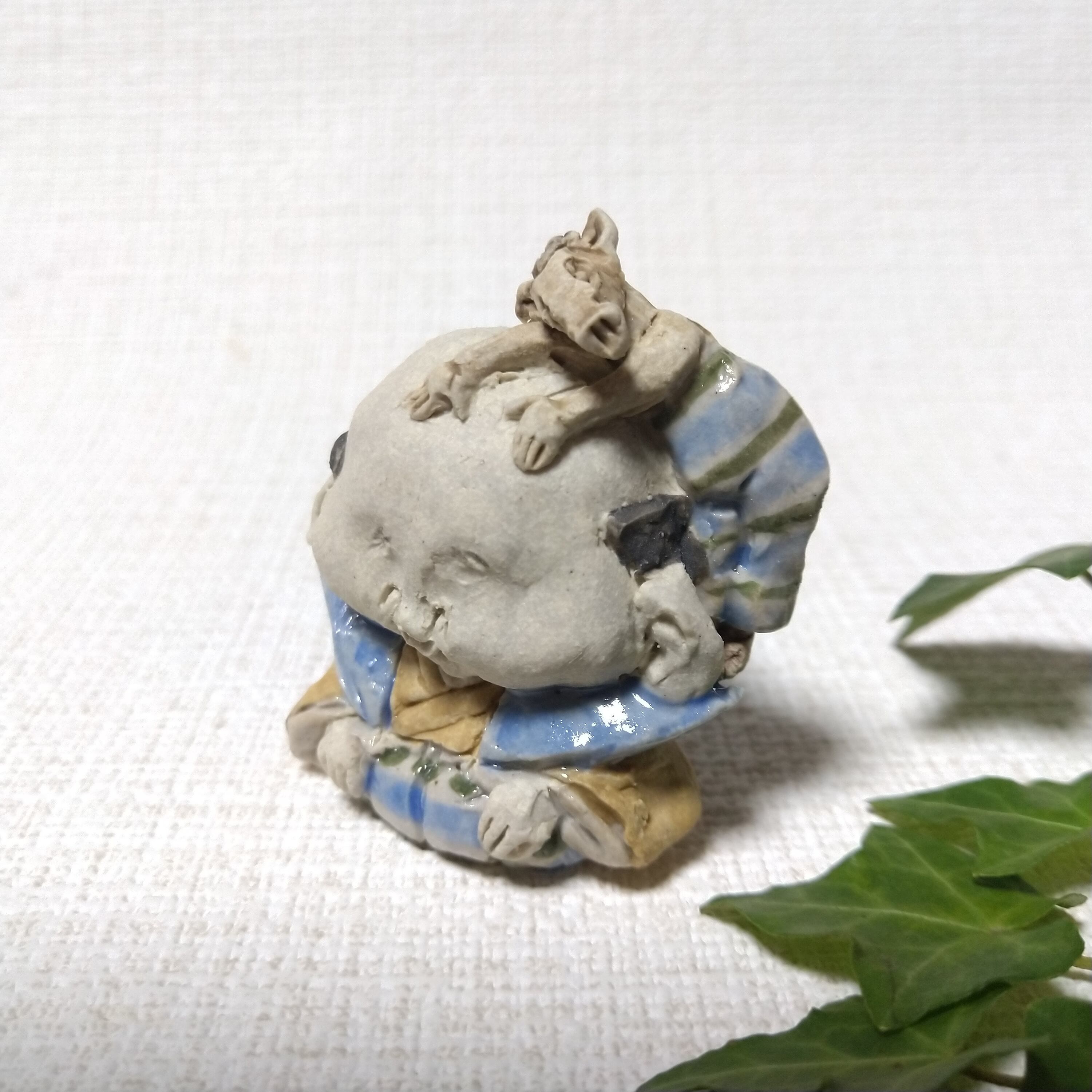 ※ 画像では大きく見えますが、実際は小さな作品です。ご検討の際には「サイズ」のご確認をお願いいたします。こちらのシリーズ作品はA→Eと少しずつ福助のサイズが大きくなっています。