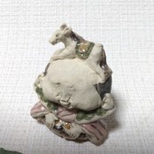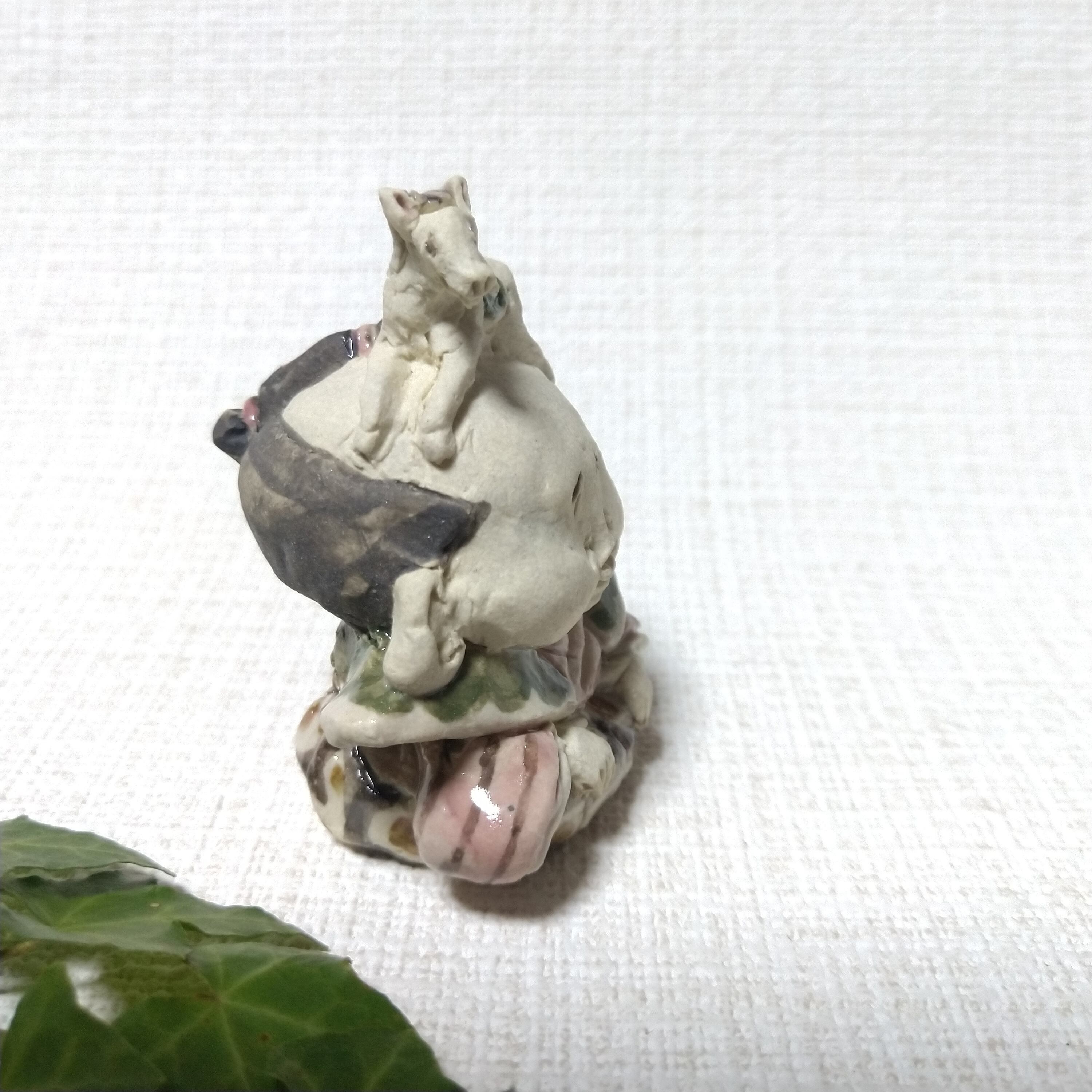 ※ 画像では大きく見えますが、実際は小さな作品です。ご検討の際には「サイズ」のご確認をお願いいたします。こちらのシリーズ作品はA→Eと少しずつ福助のサイズが大きくなっています。