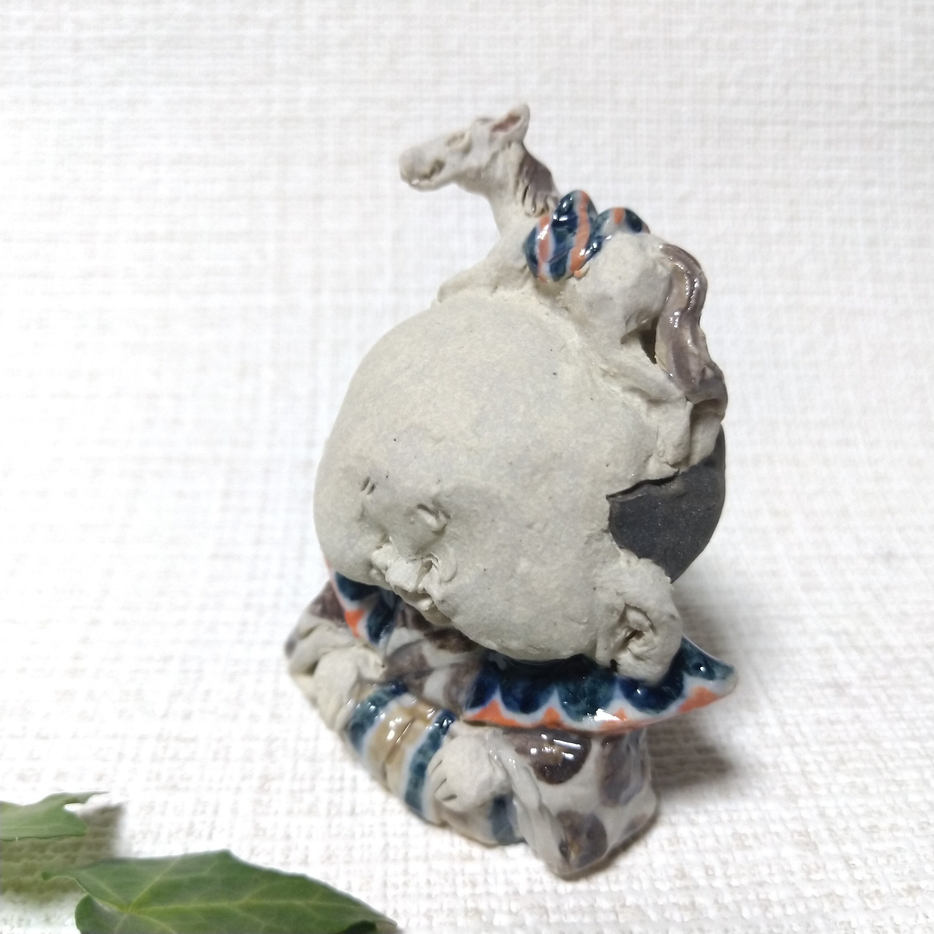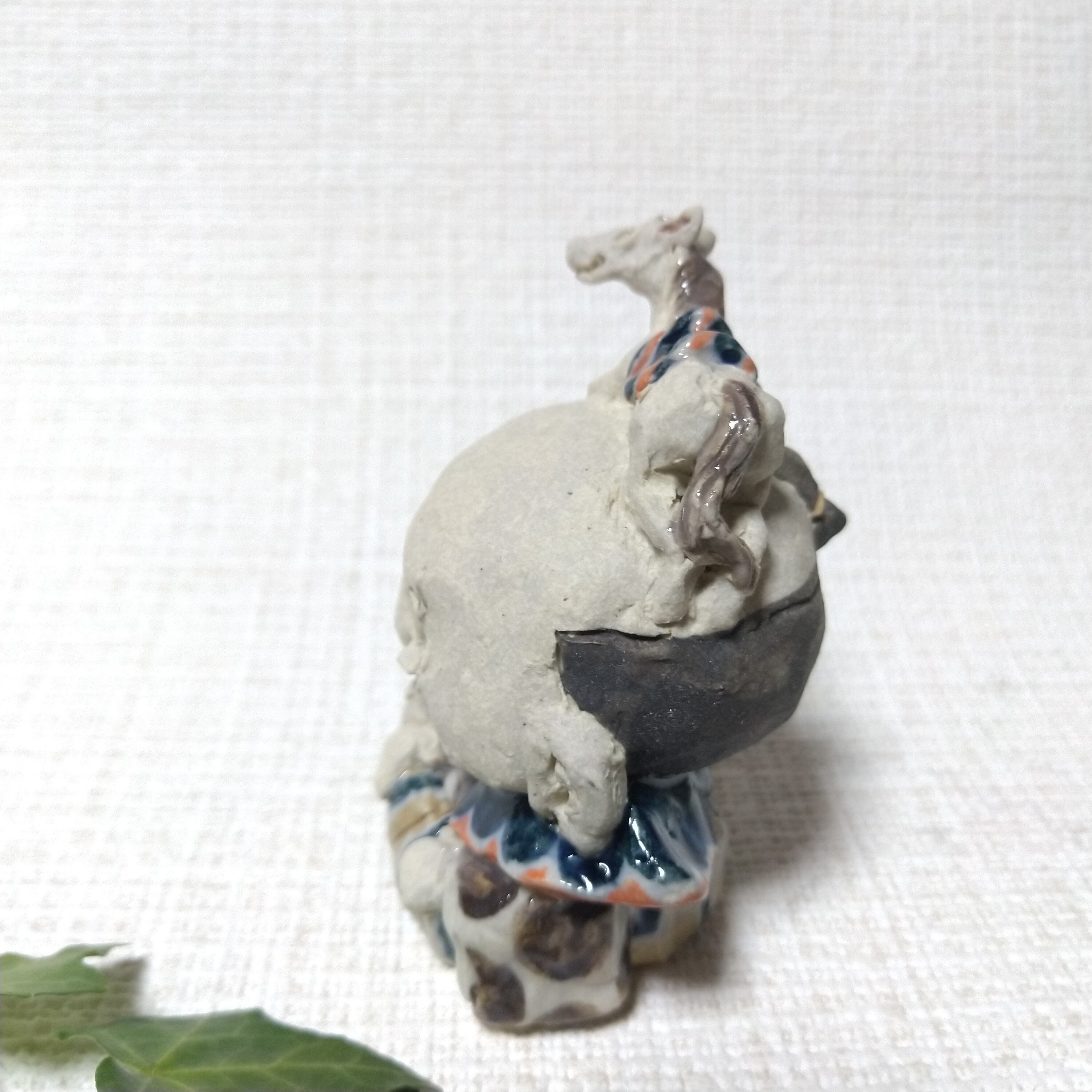 たてがみや尻尾、衣装の一部に薄く透明釉を施しているので、その部分は少し光沢があります。