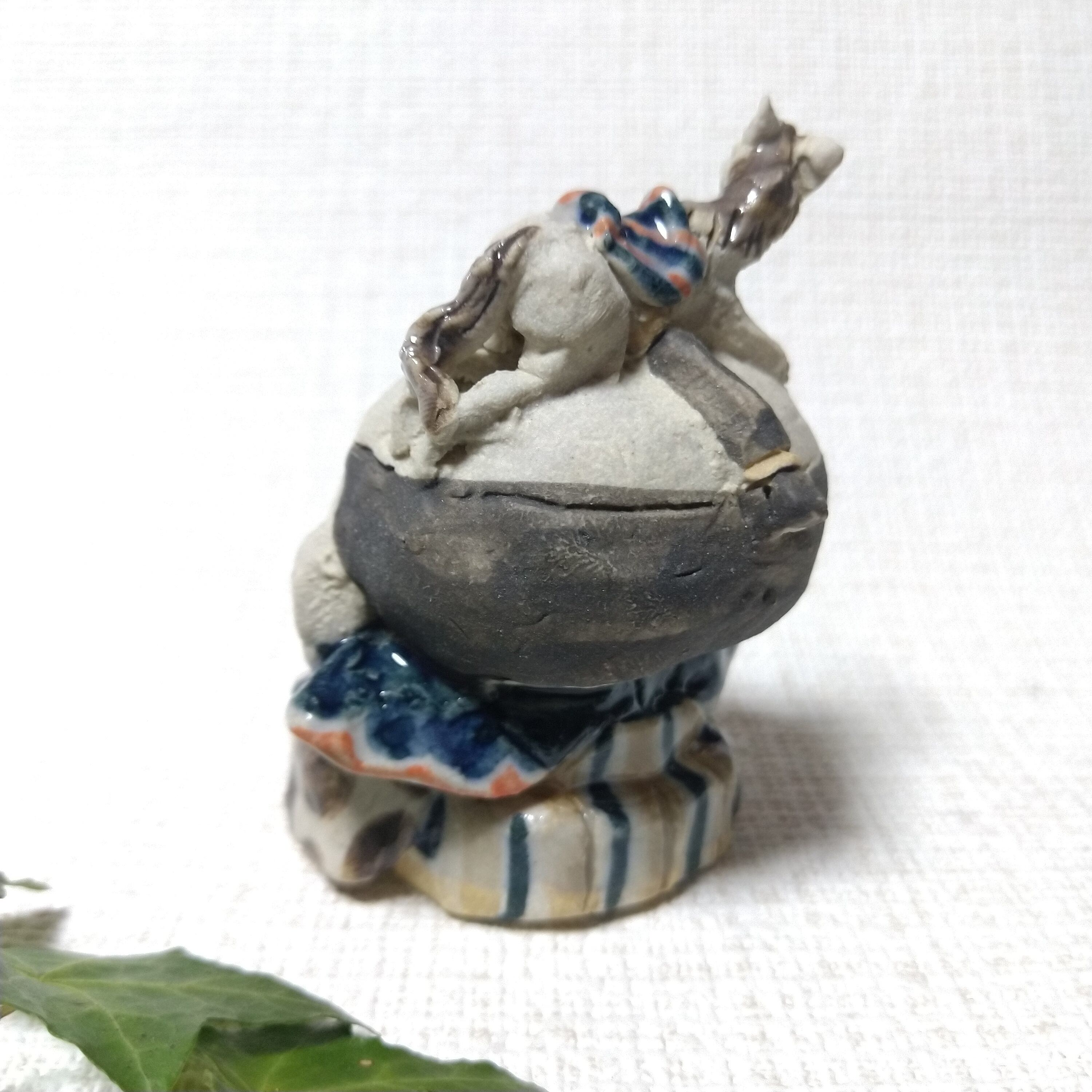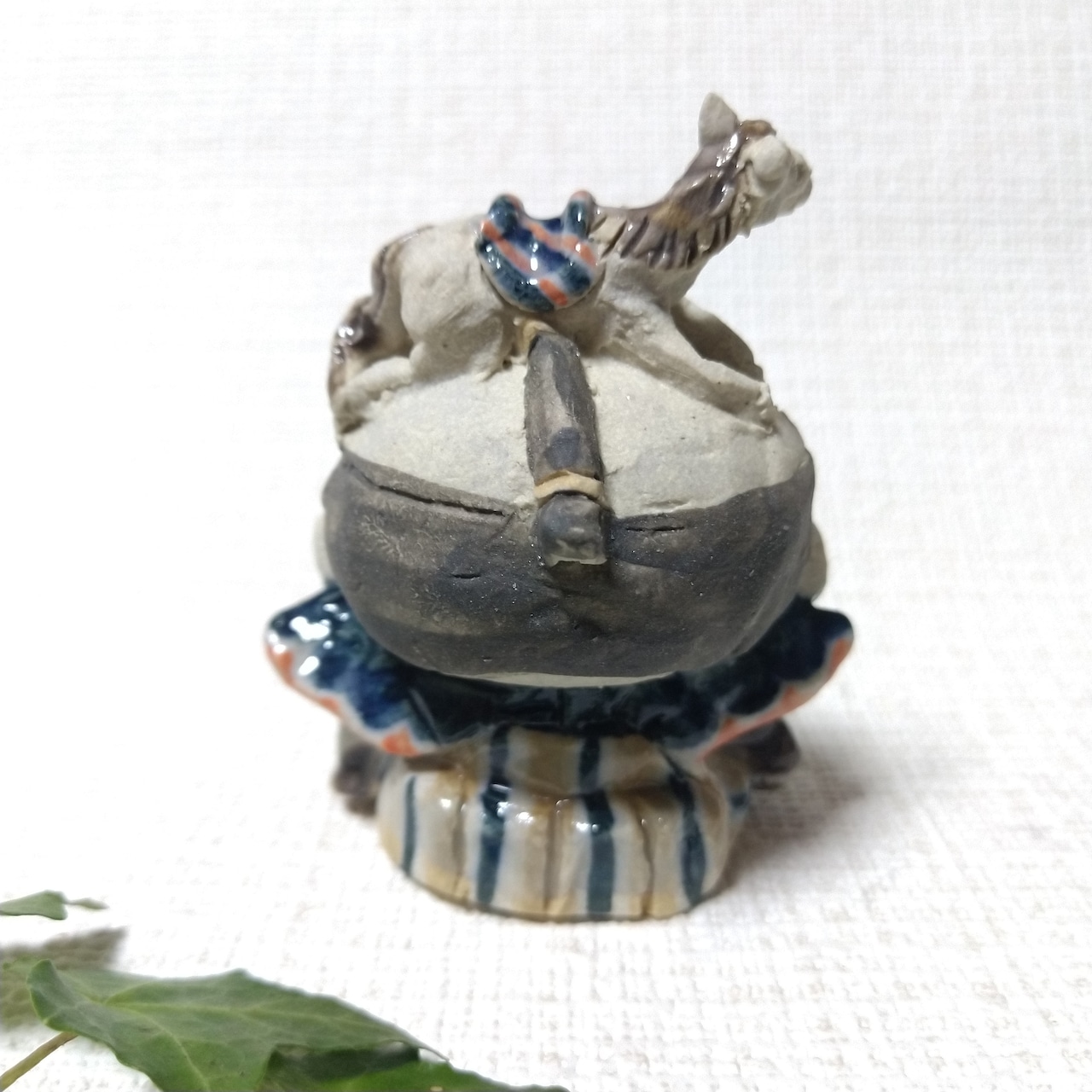 ※ 画像では大きく見えますが、実際は小さな作品です。ご検討の際には「サイズ」のご確認をお願いいたします。こちらのシリーズ作品はA→Eと少しずつ福助のサイズが大きくなっています。