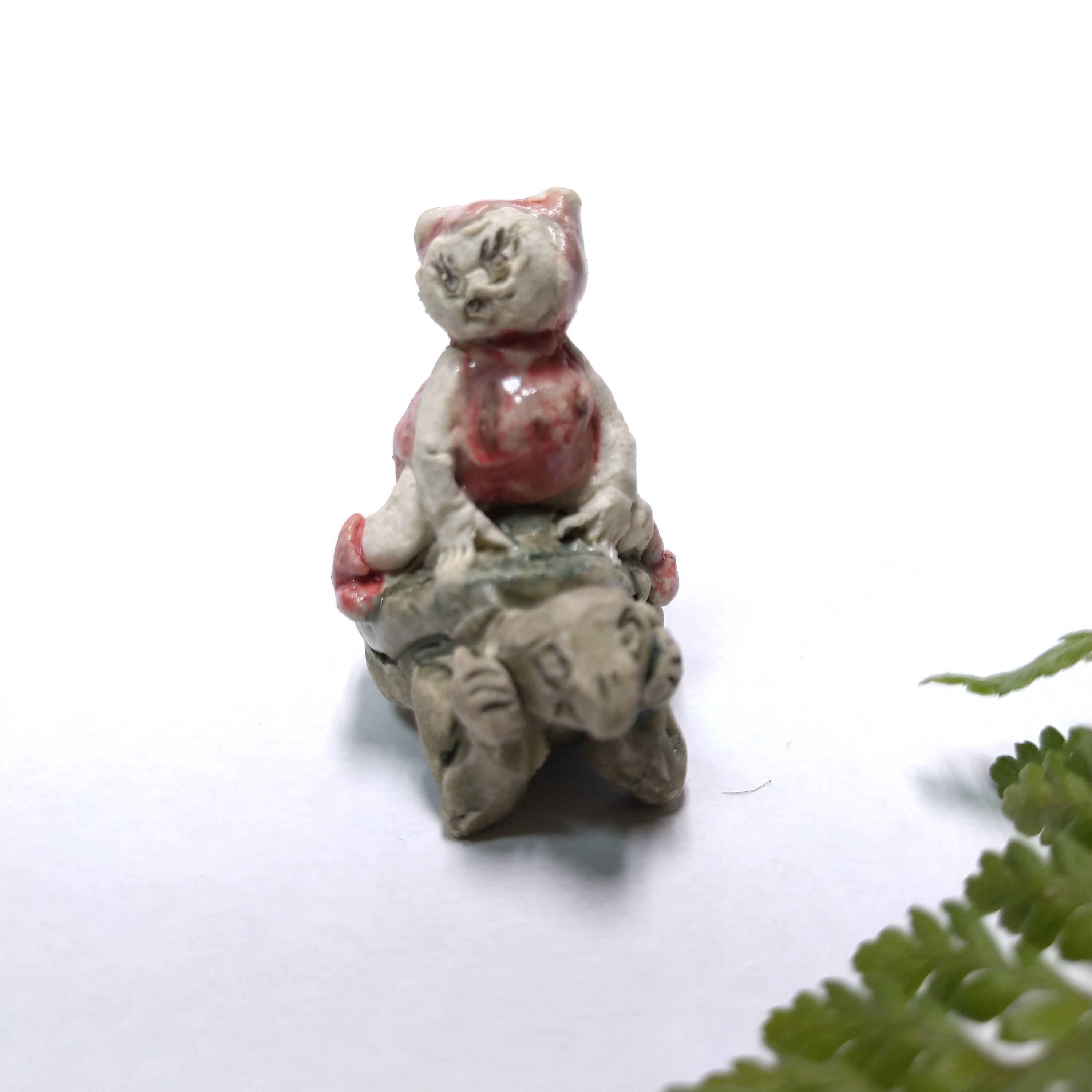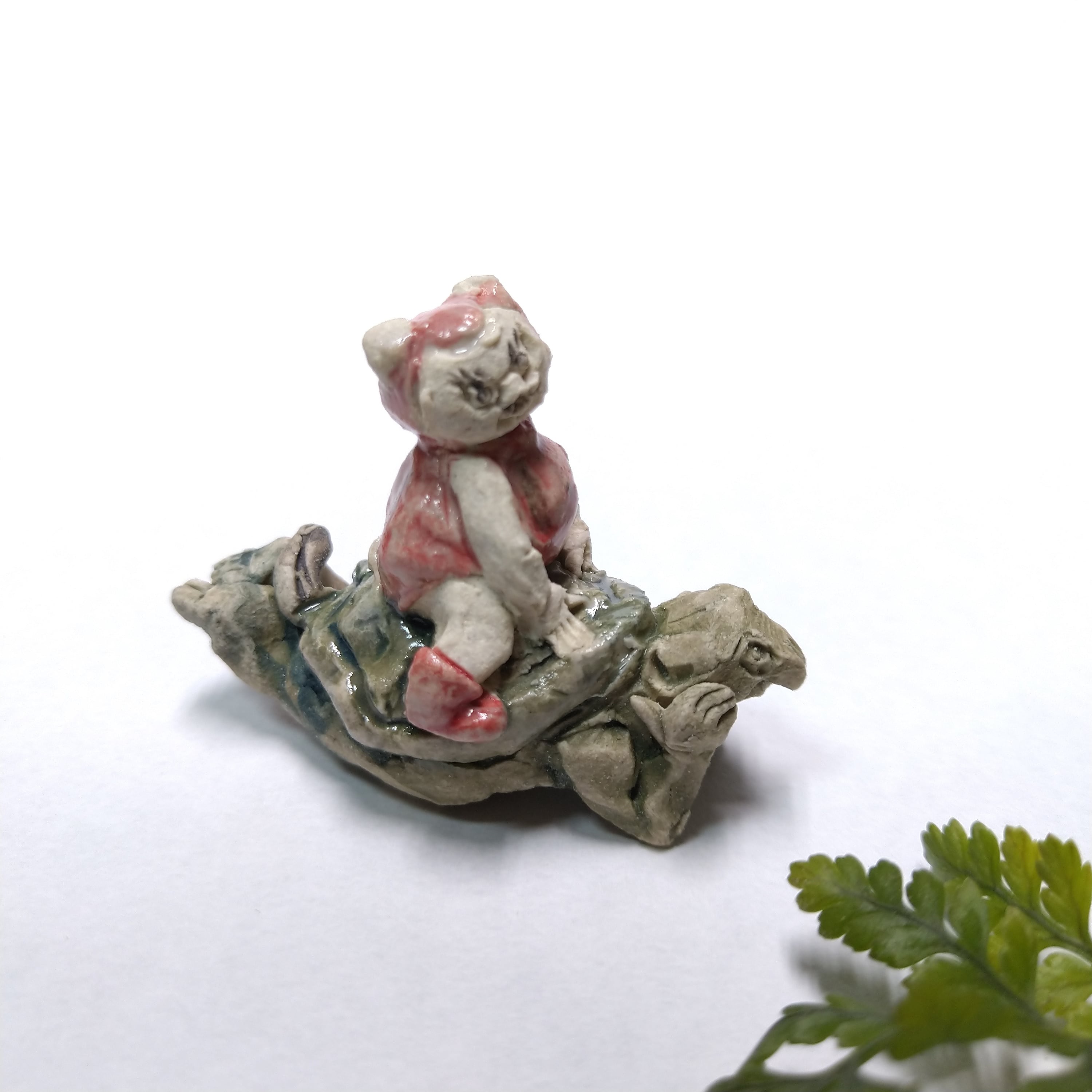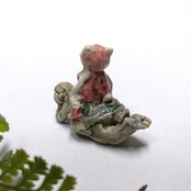 縁起物の亀に、これまた縁起物のコミカルな達磨(だるま)さんがのっかっています。