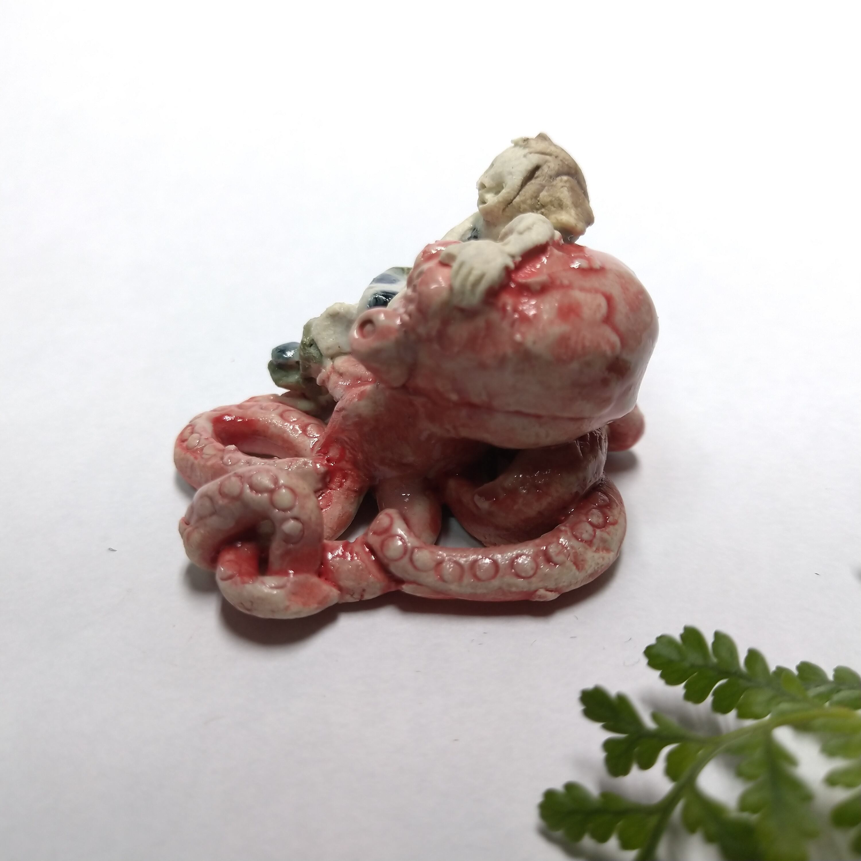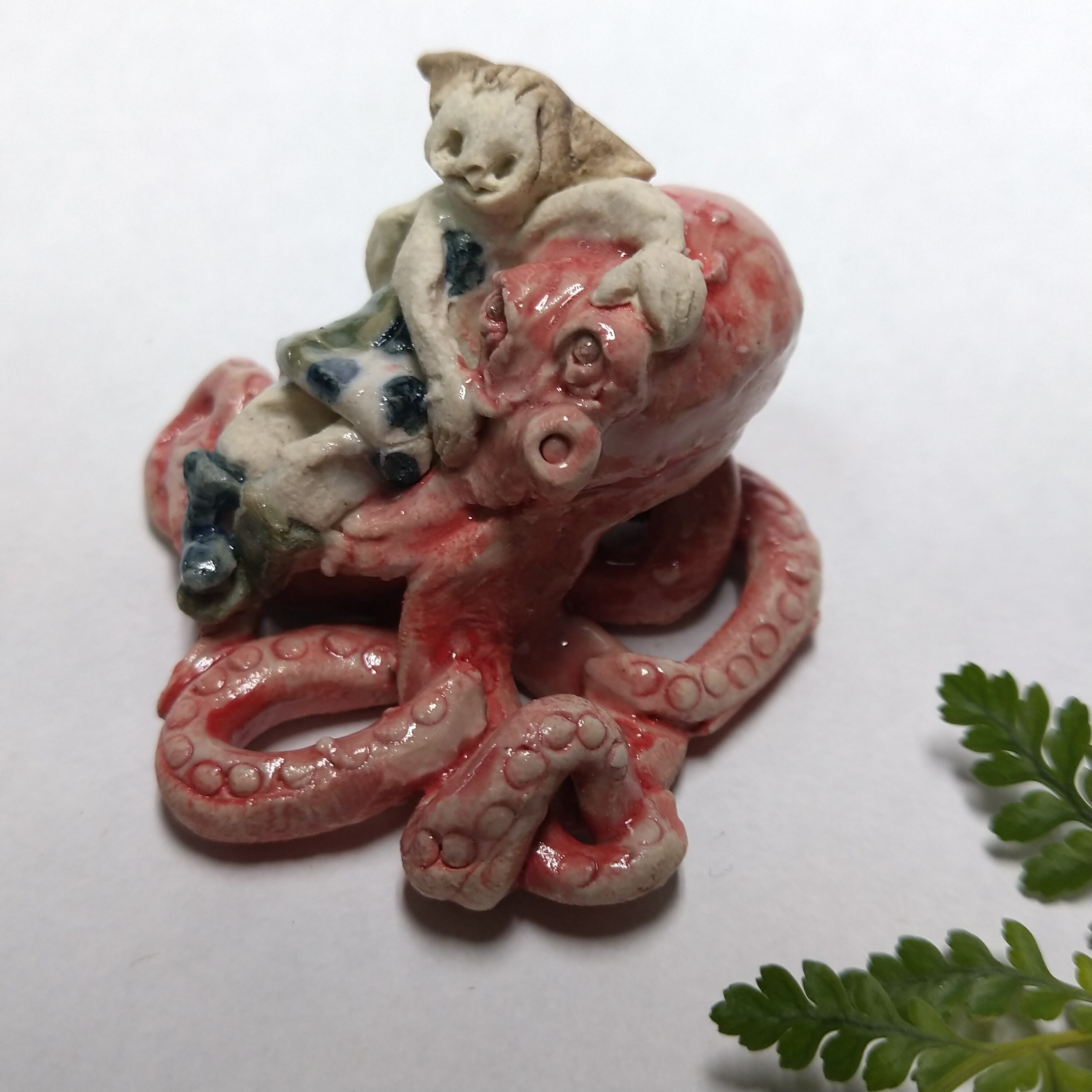 衣装やタコの身体の一部分に薄く透明釉を施しているので、その部分は少し光沢があります。