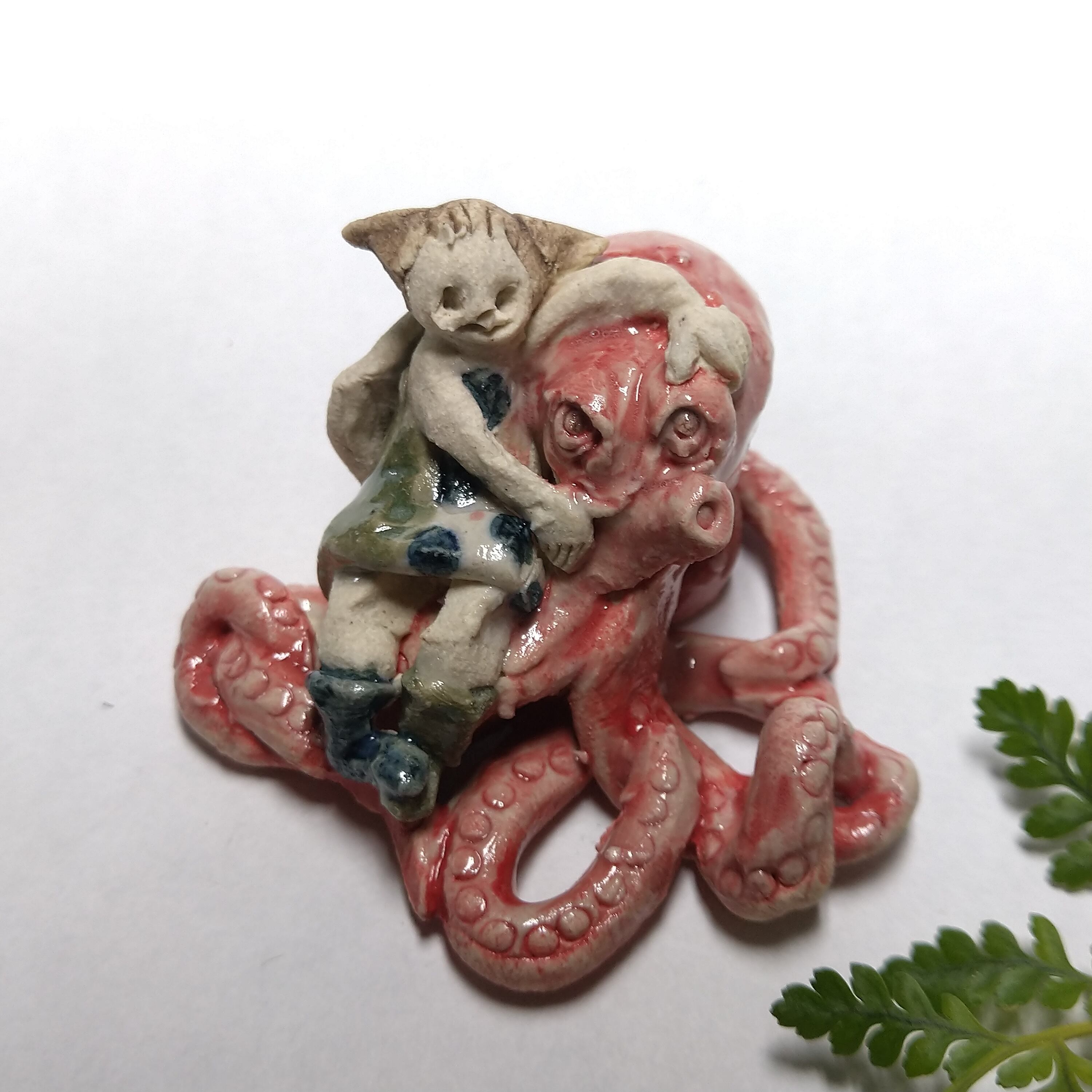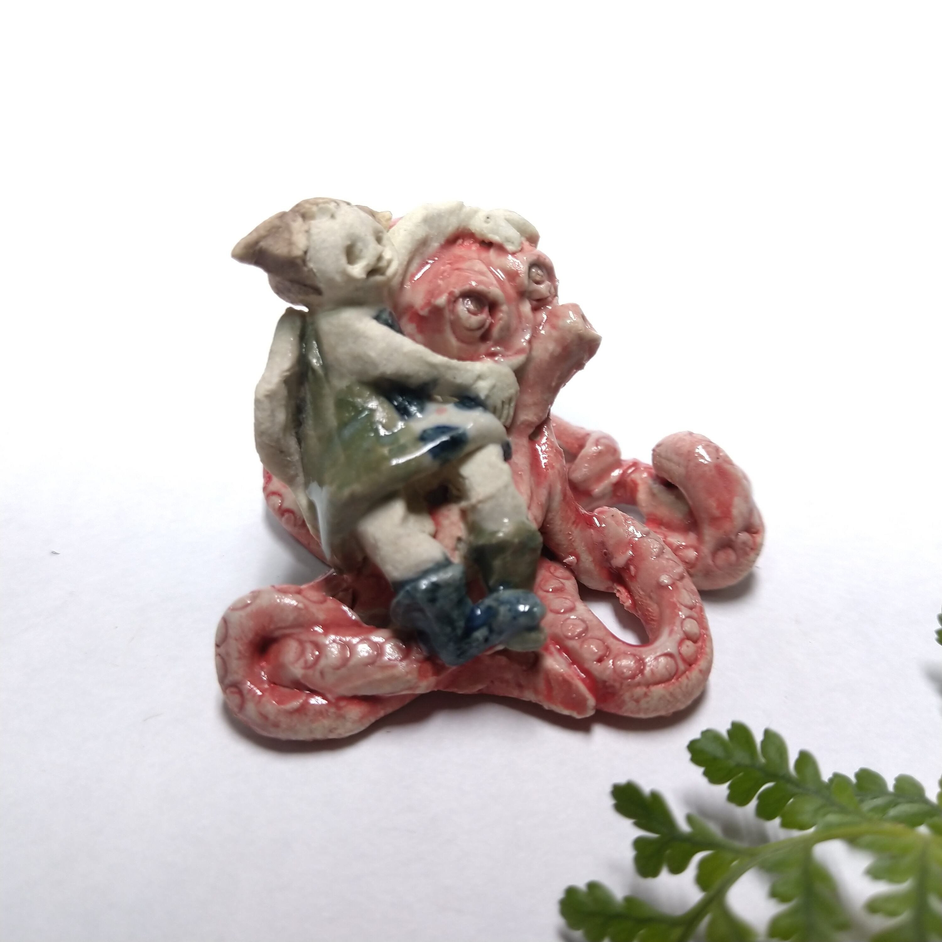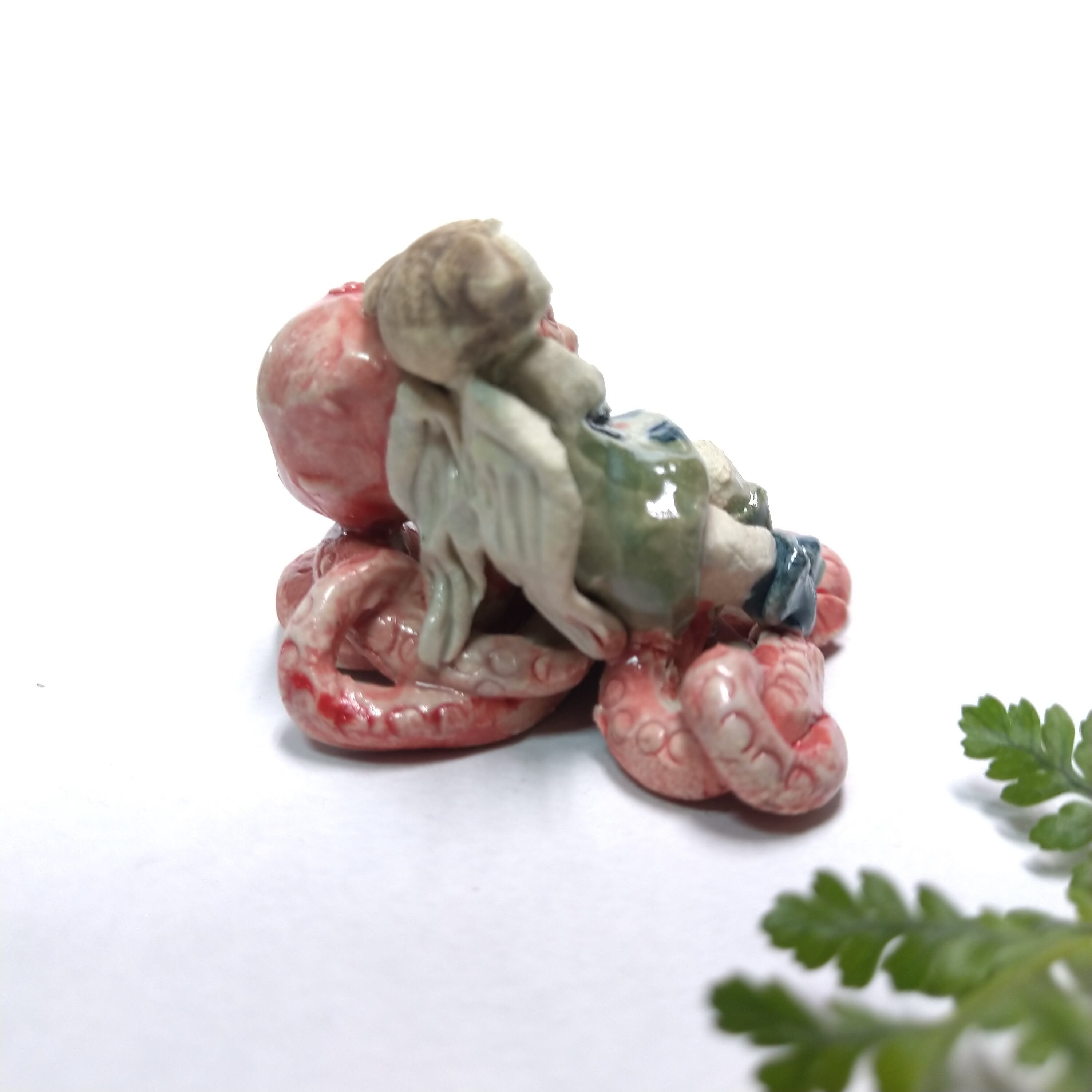 縁起物のタコに、ちびっこ天使が寄り添っています。