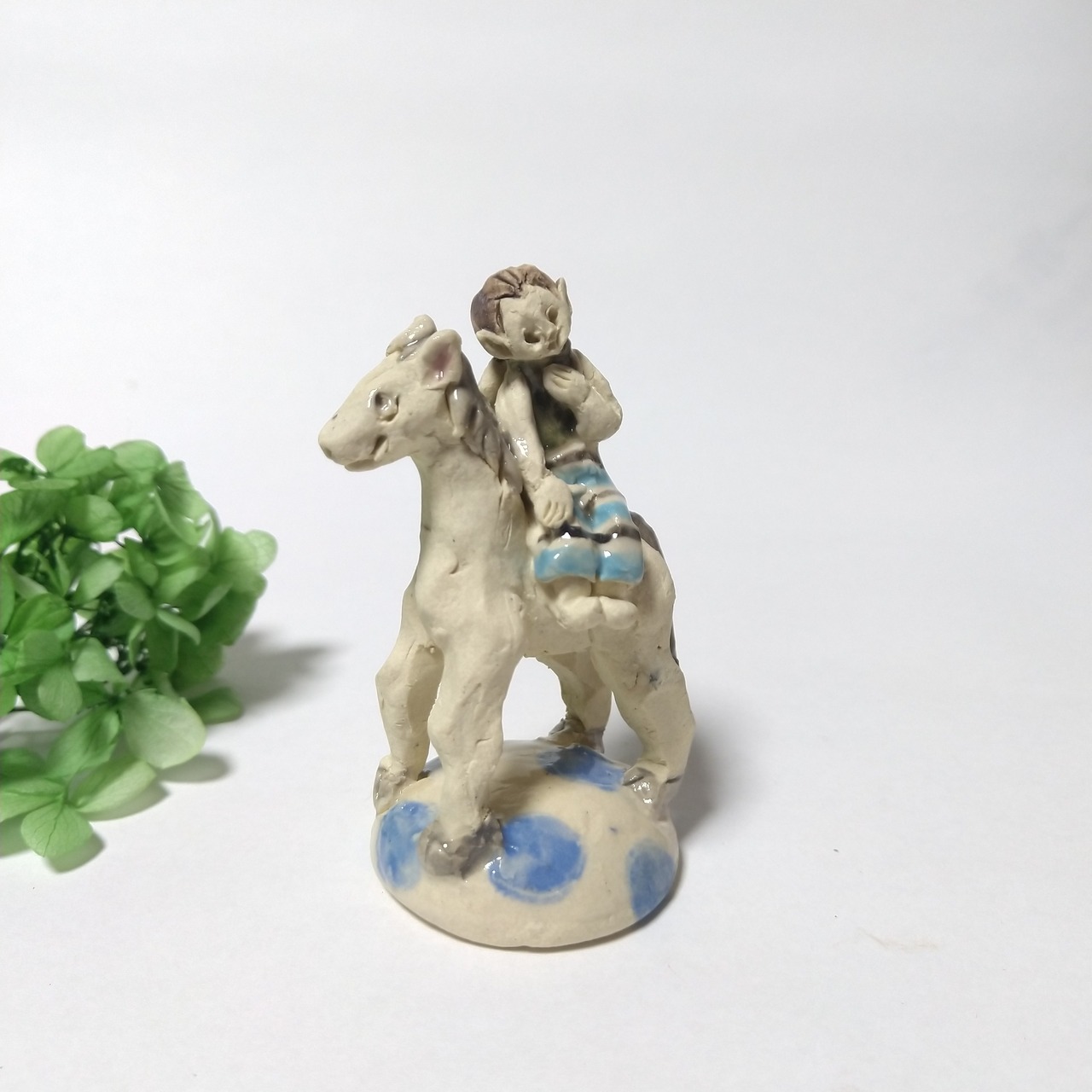 半円形の土台の上に、2026年の干支でもある午(馬)さんの背中にちび天使がちょこんと座っている作品です。