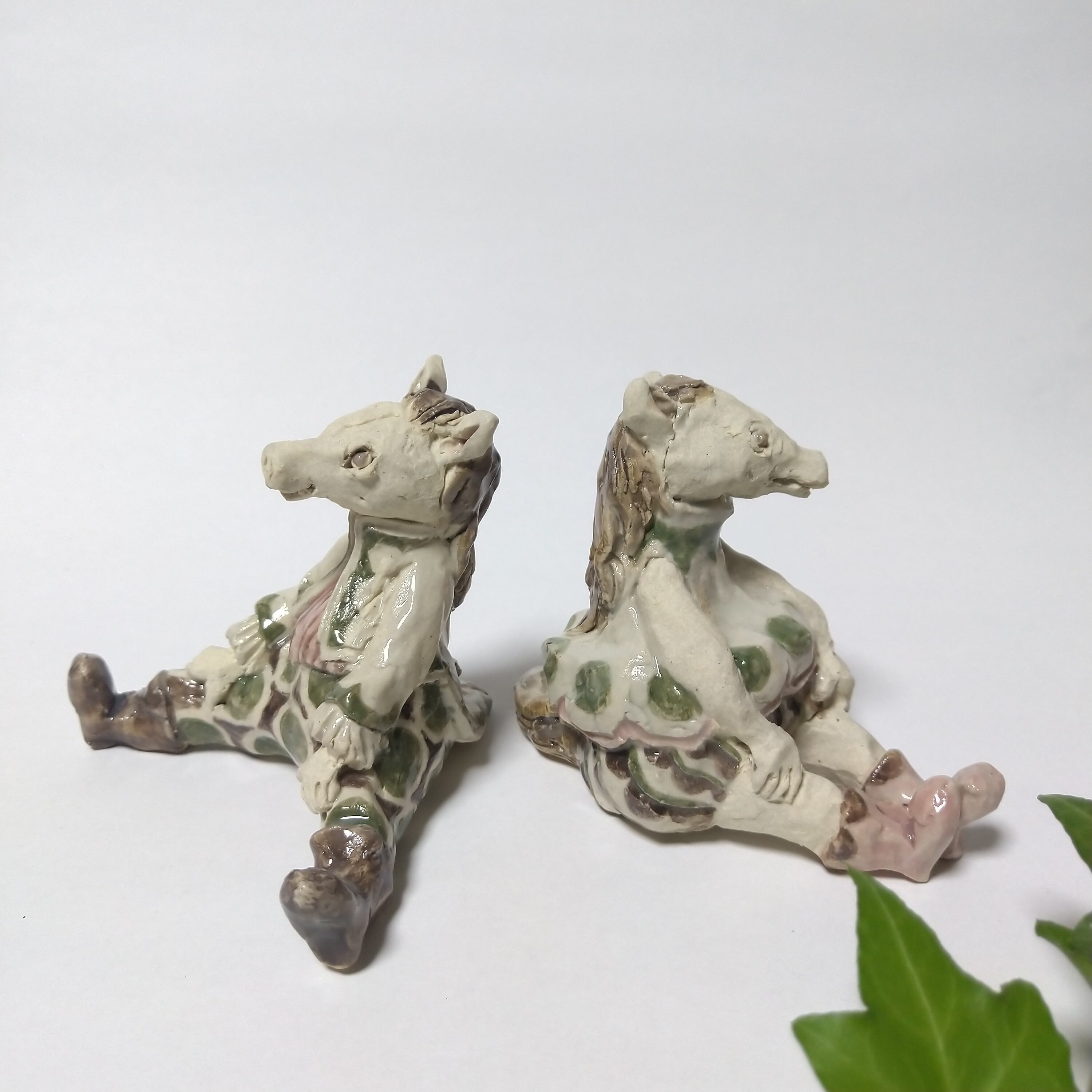 たてがみや尻尾、衣装や瞳の一部分にポイントで薄く透明釉をかけているので、その部分は少し光沢があります。