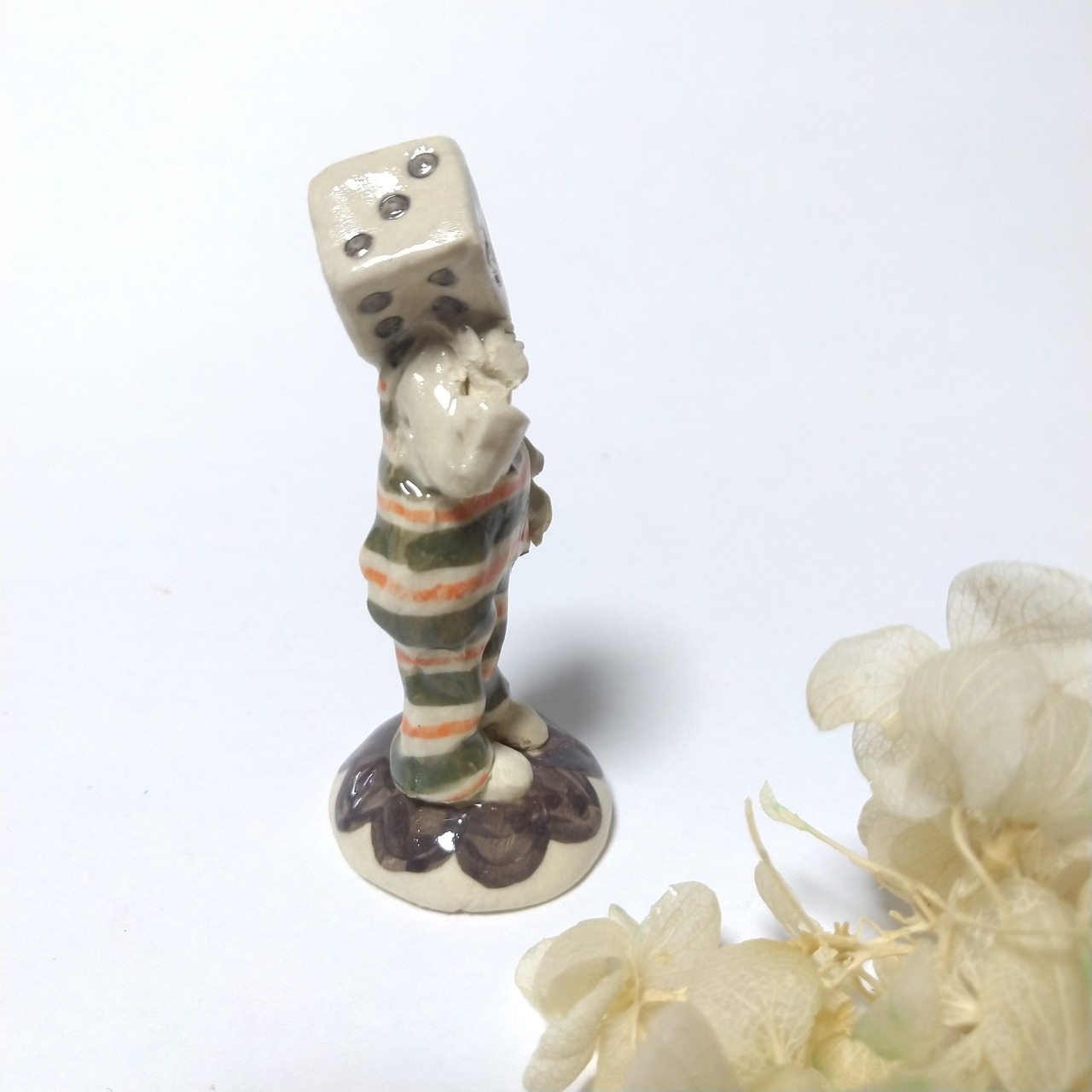 土台と衣装の一部分にポイントで薄く透明釉をかけているので、その部分は少し光沢があります。