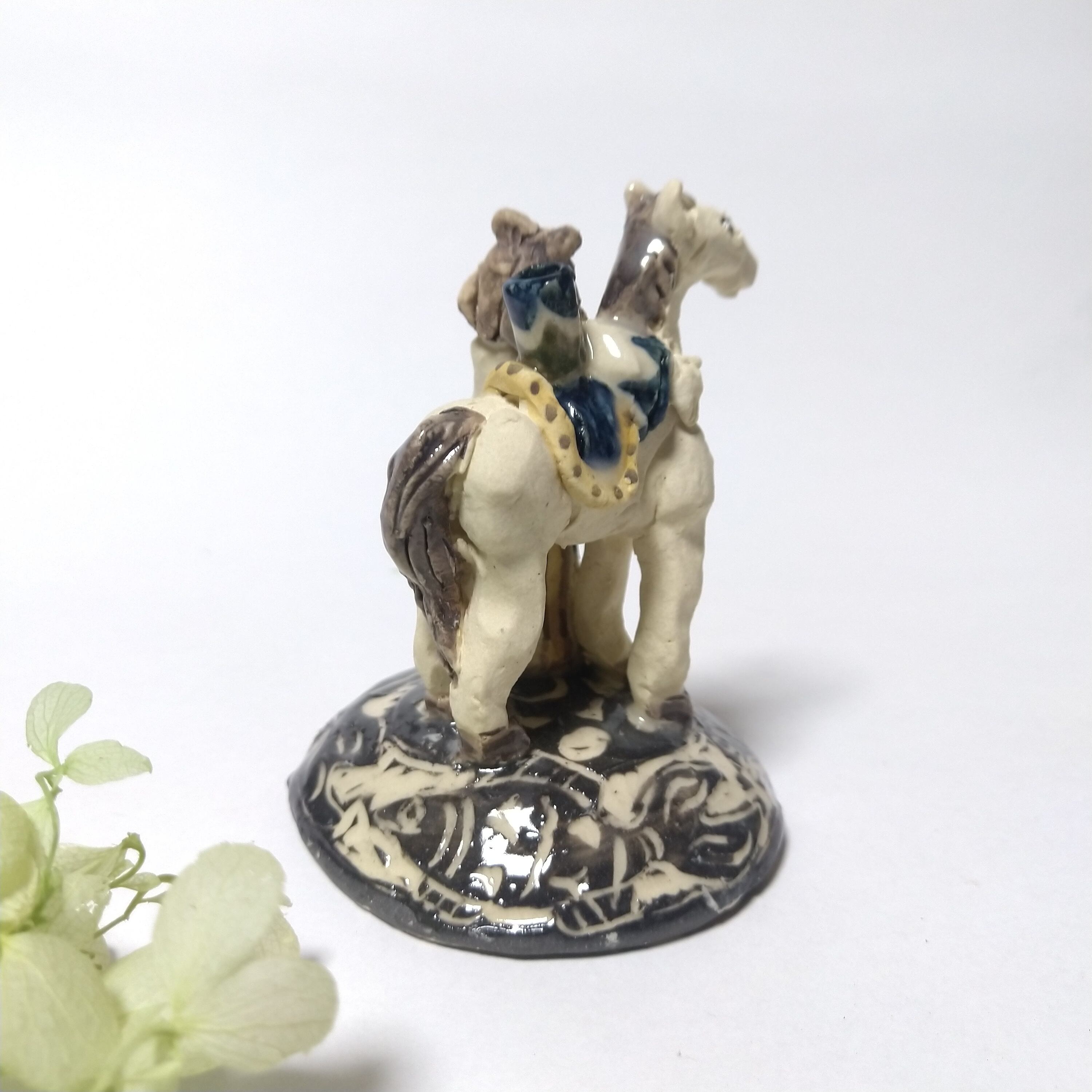たてがみや尻尾、衣装や土台の一部分にポイントで薄く透明釉をかけているので、その部分は少し光沢があります。