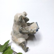 いろいろな擬人化した動物や架空の生き物たちが、本を読んでいたり、頭にのせていたりしている【本よみ】シリーズです。