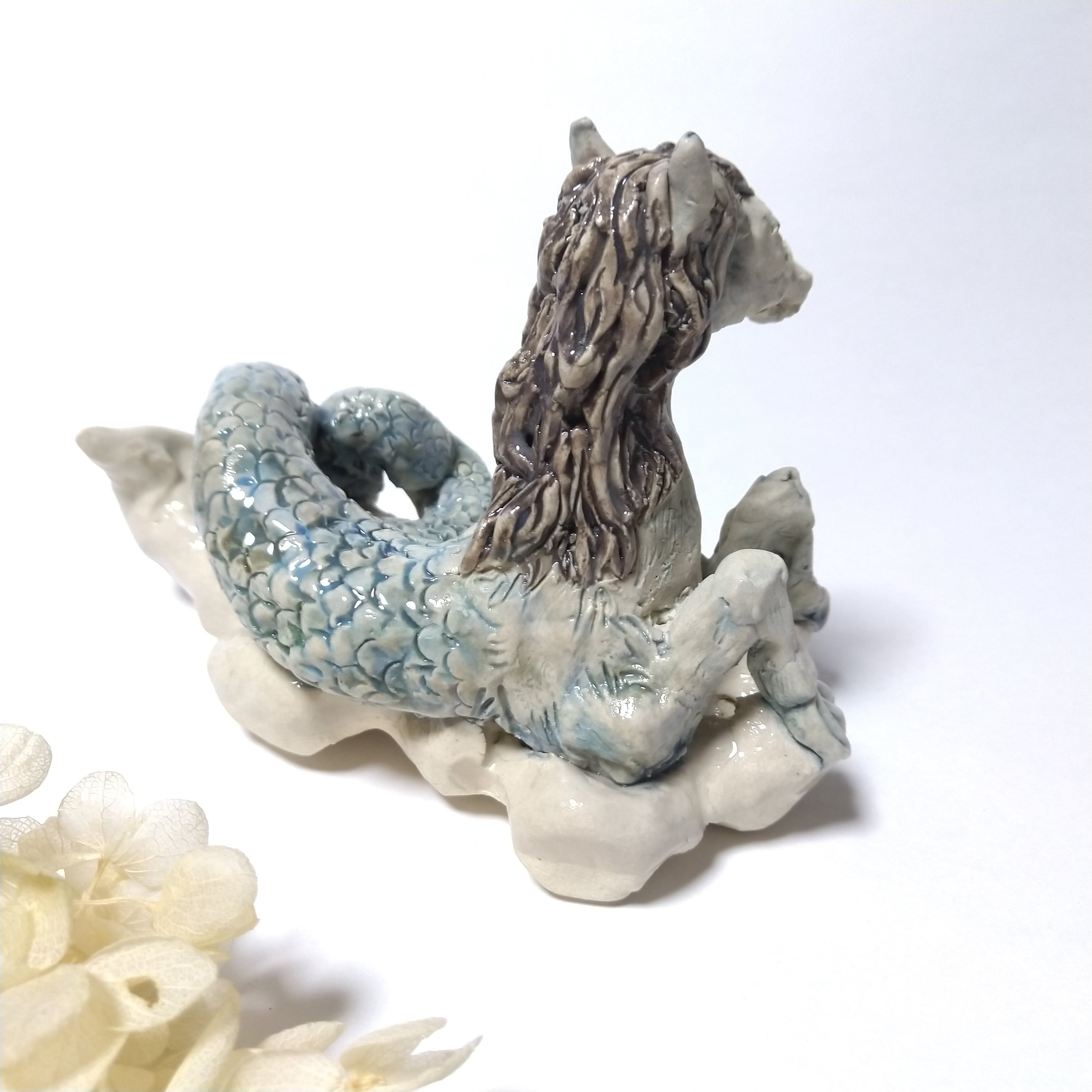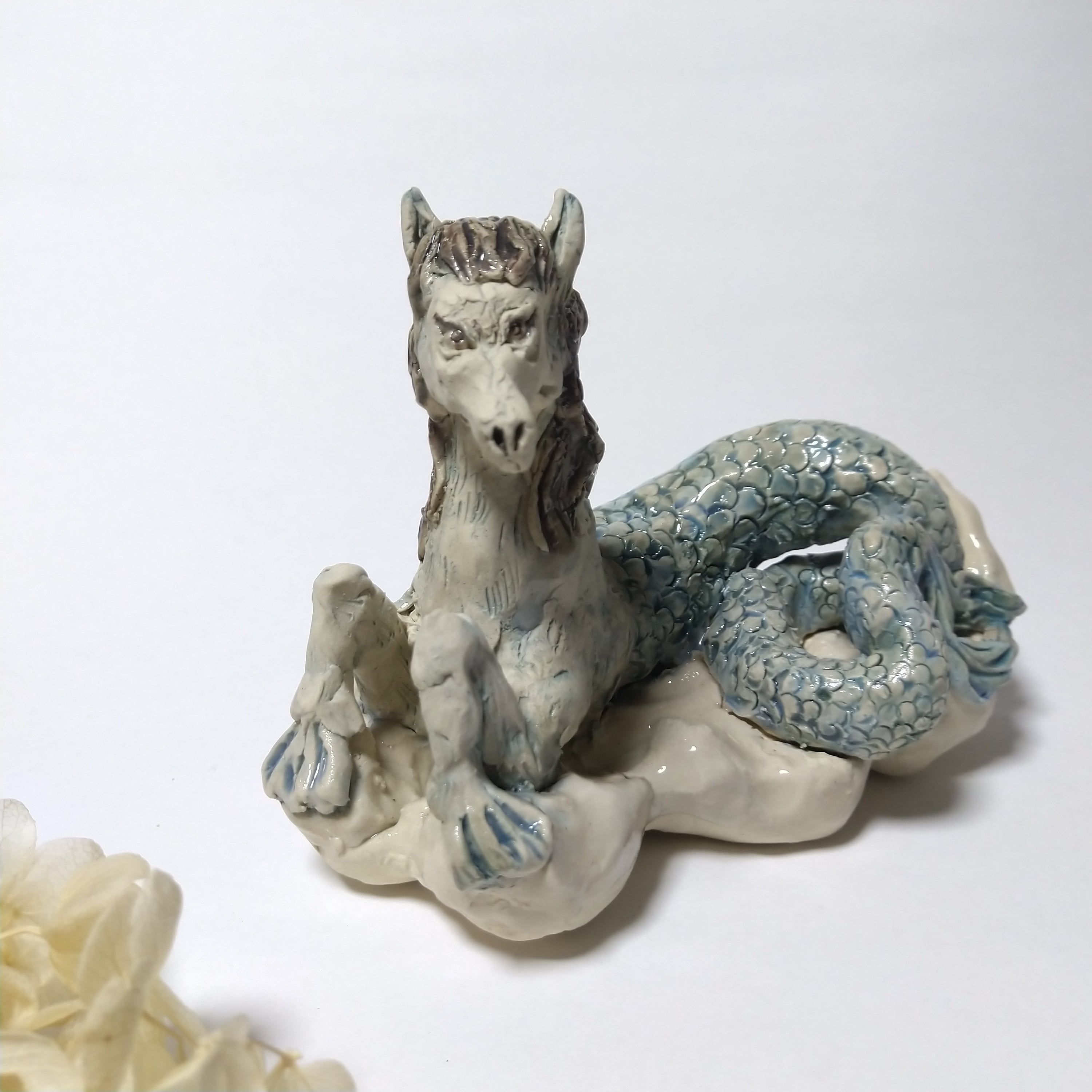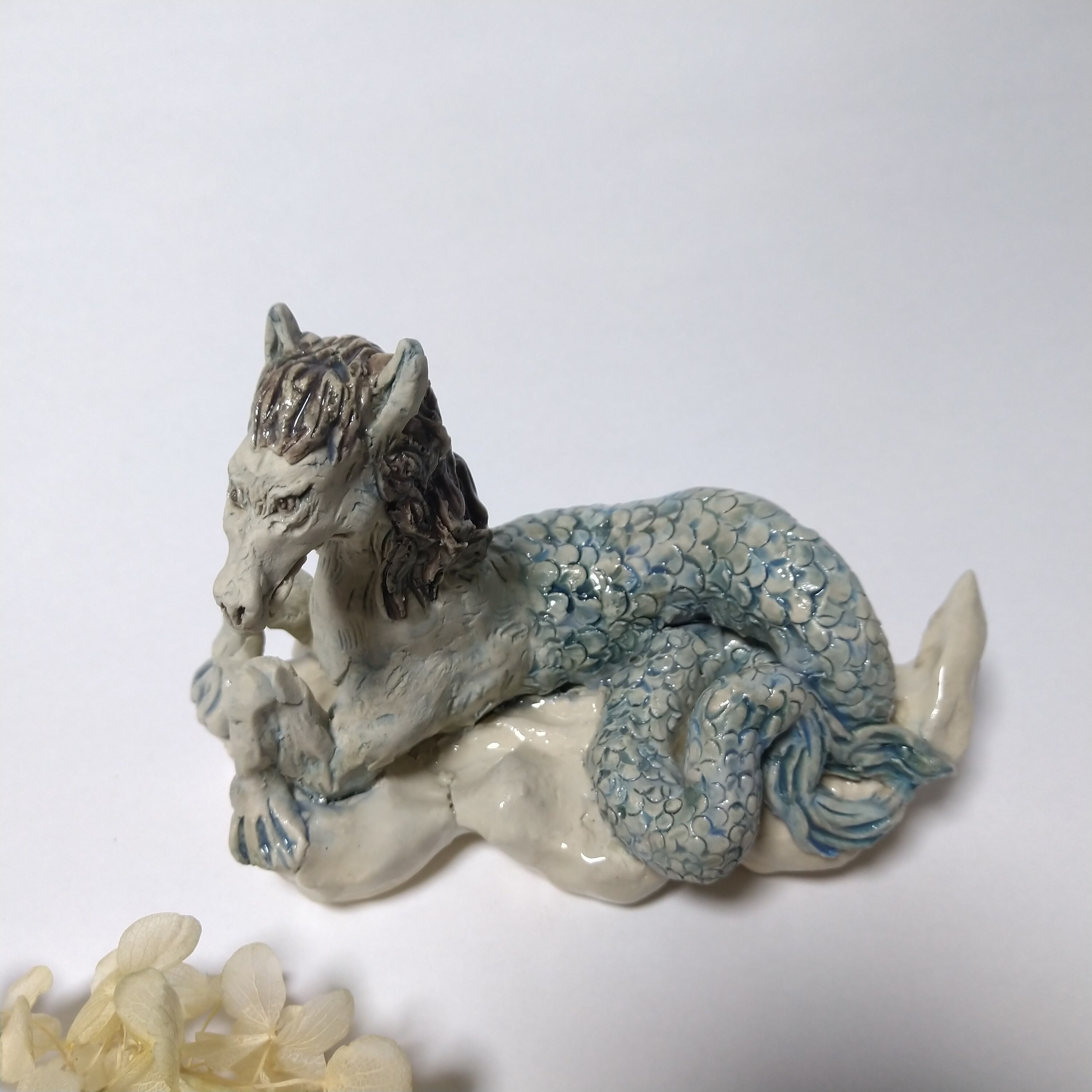 ギリシャ神話に登場する「ヒッポカムポス」は、馬の頭と前脚、魚の尾を持つ伝説の海獣です。