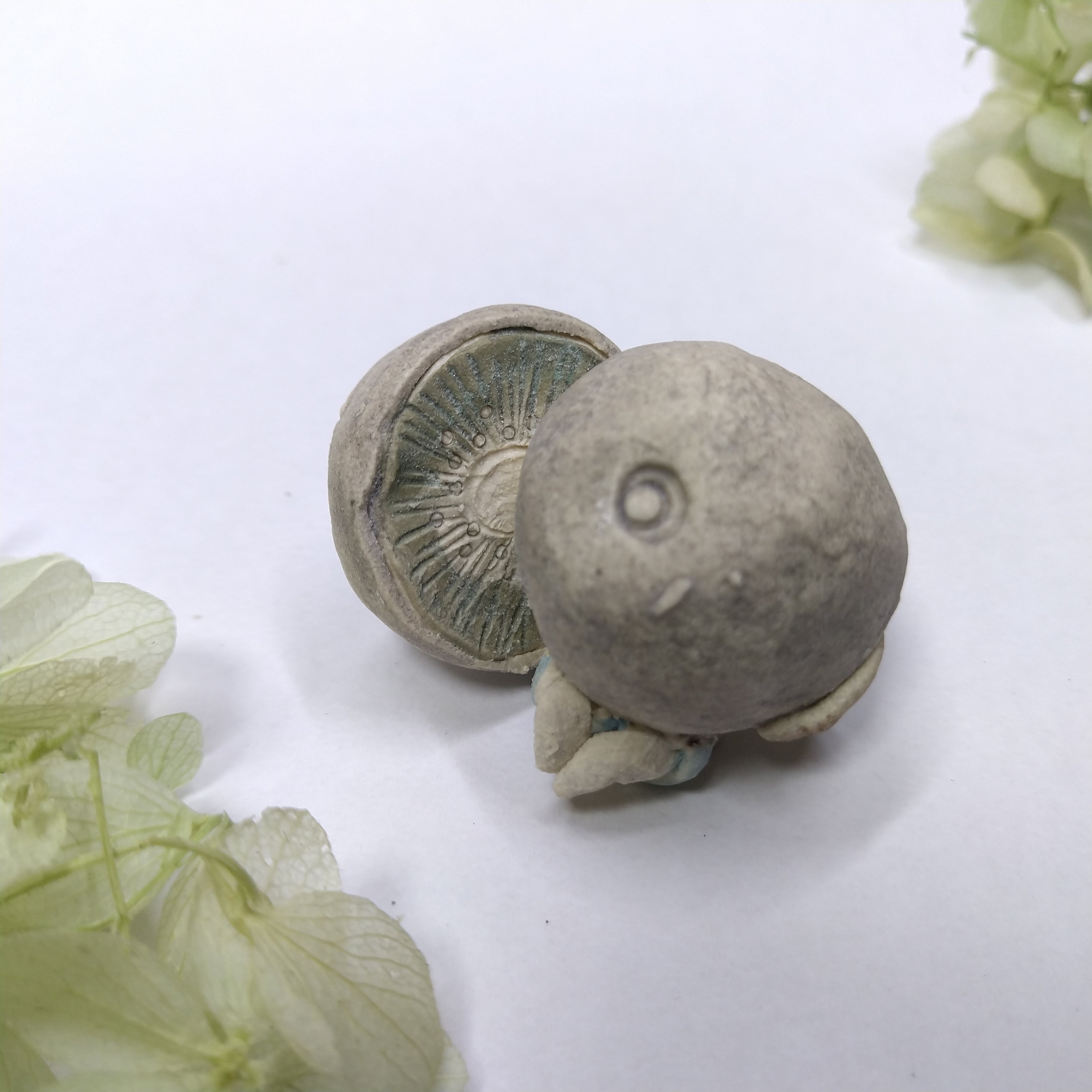 キウイ、衣装の一部分に薄く透明釉を施しているので、その部分は少し光沢があります。