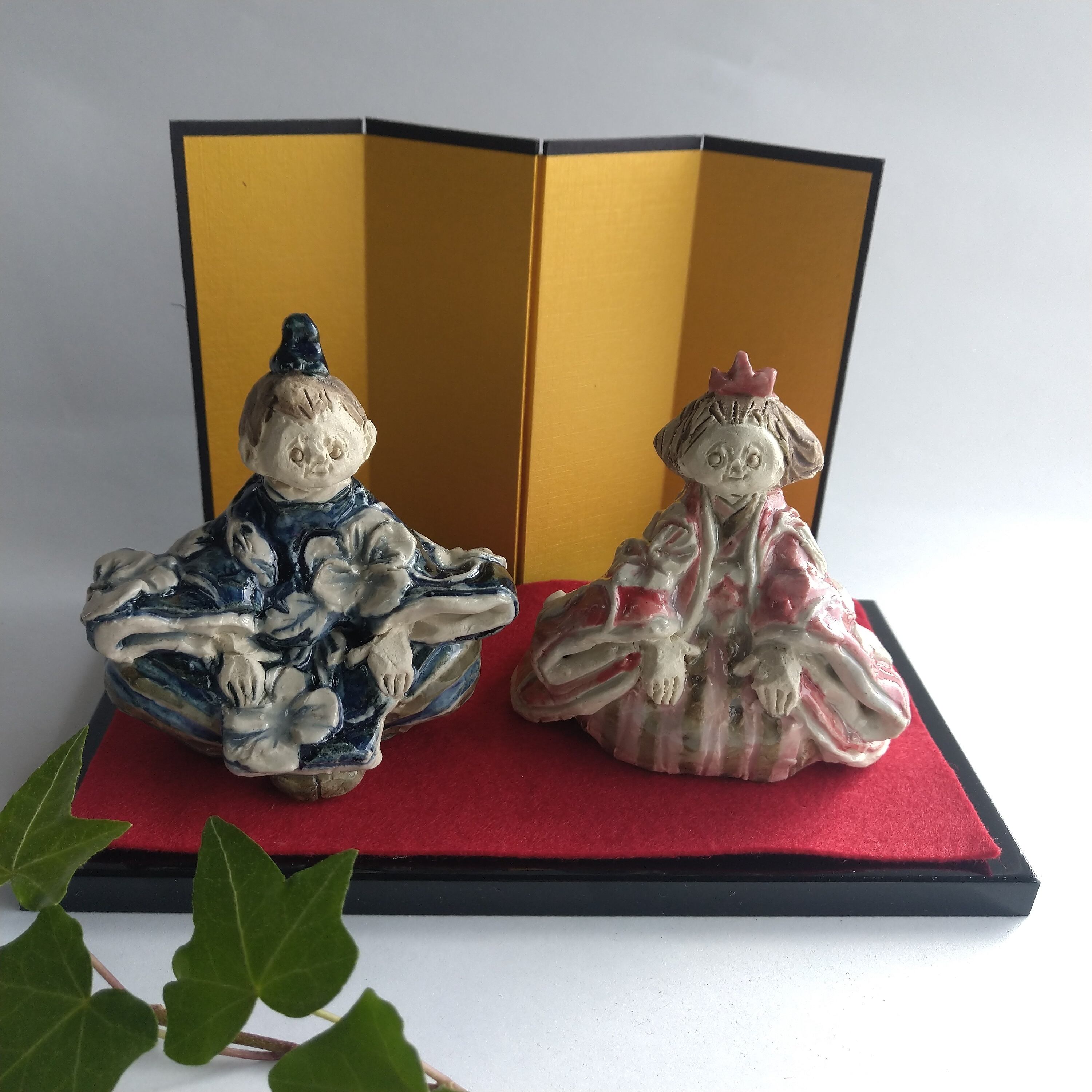 衣装や瞳の一部分にポイントで薄く透明釉をかけているので、その部分は少し光沢があります。