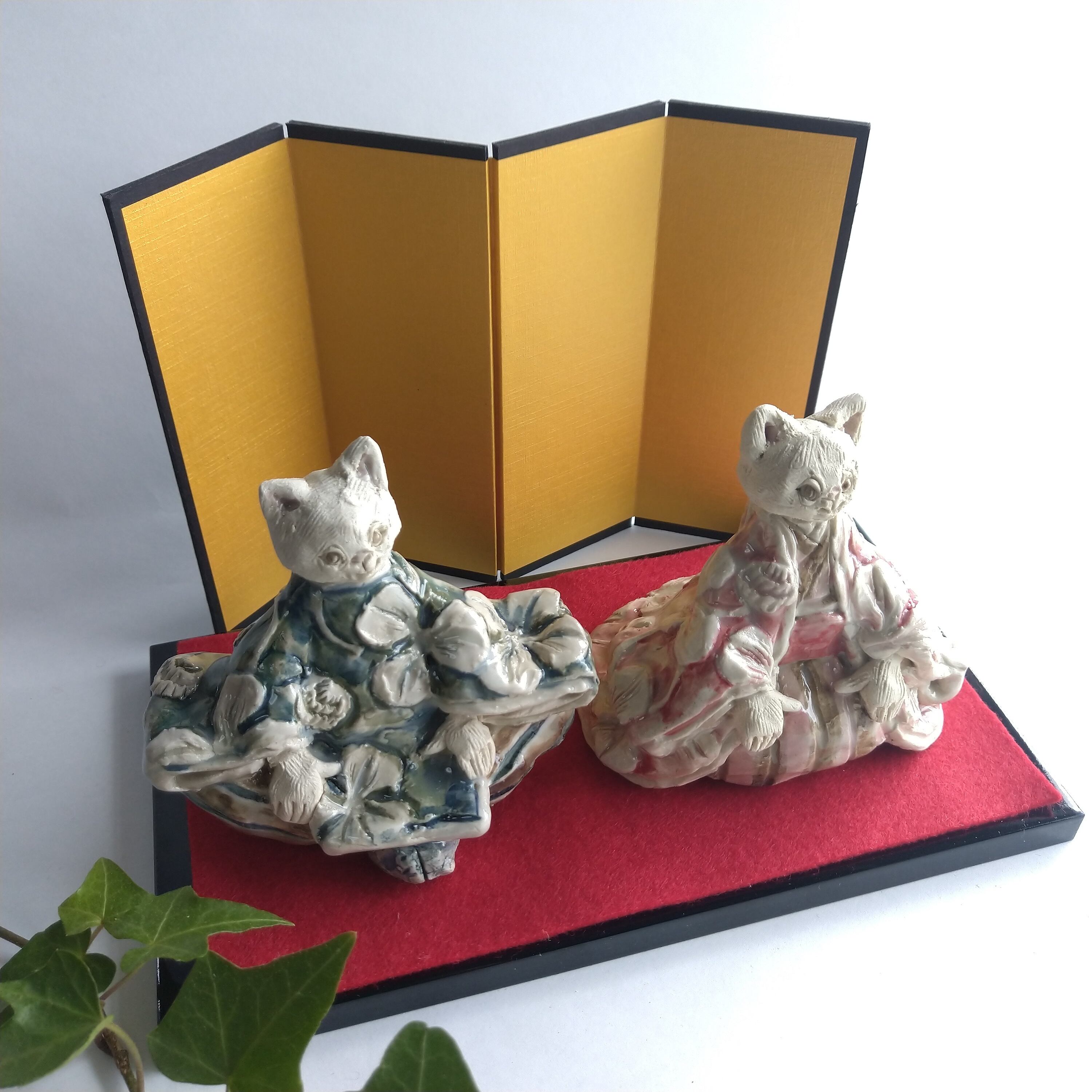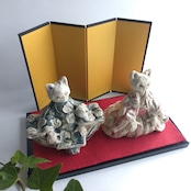 衣装にクローバーをデザインした、ねこ雛人形です。