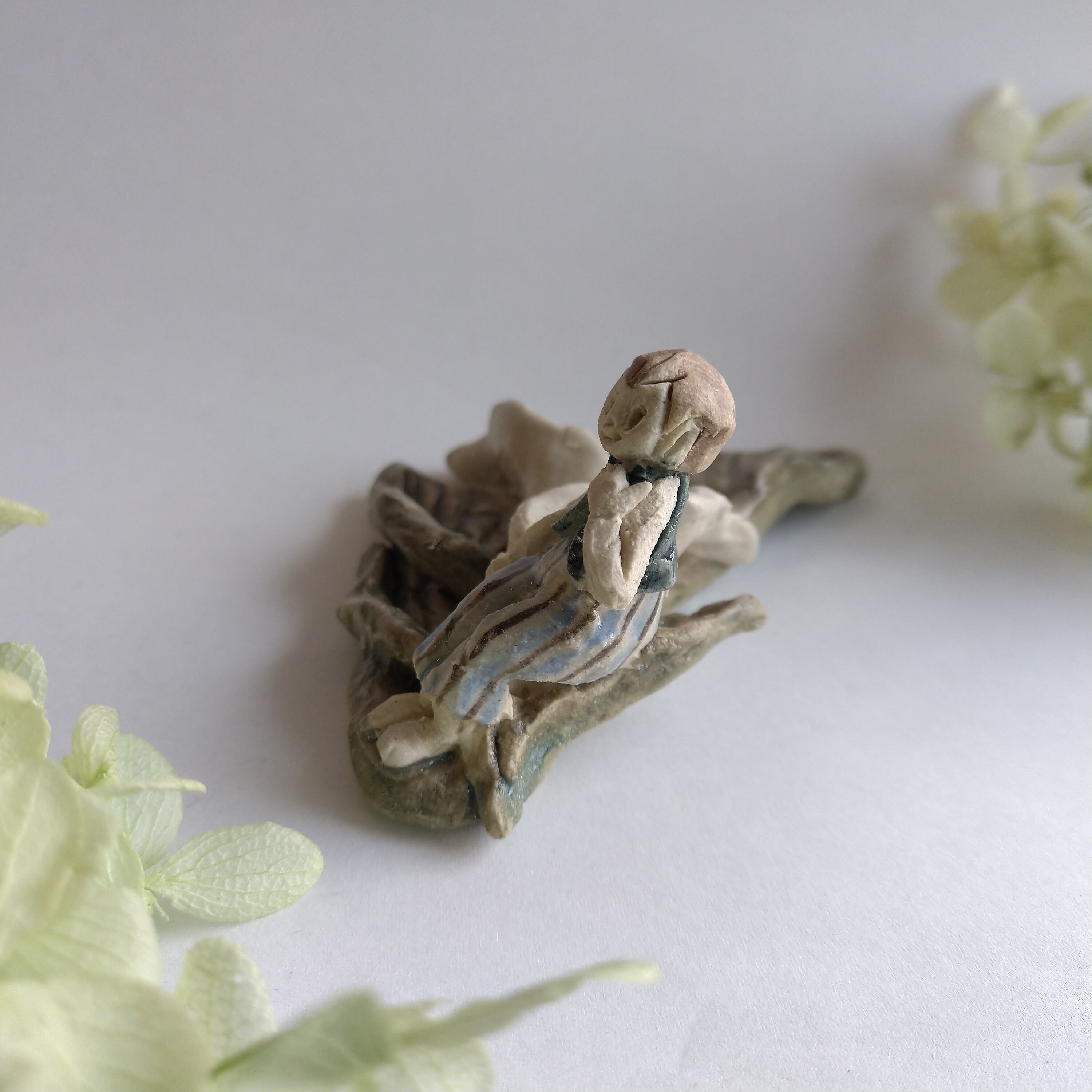 好きな花や、その花言葉をイメージしたりしながら、自分の身体が小さくなったら、こんな風に花の妖精のように寄り添ってみたいなぁと思いながら制作してみました。