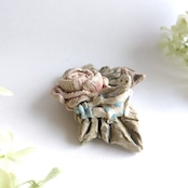 花や葉、衣装の一部分にポイントで薄く透明釉をかけているので、その部分は少し光沢があります。
