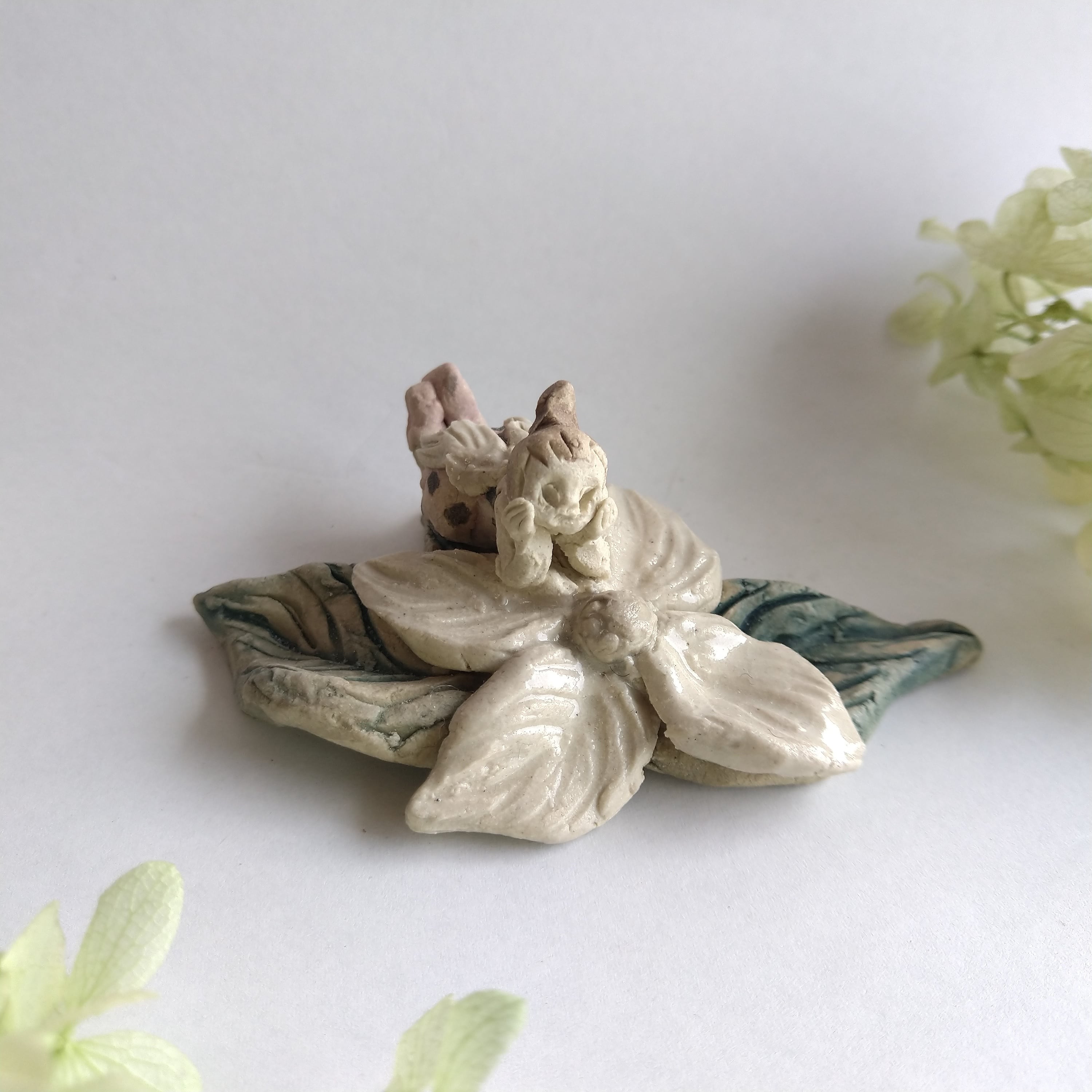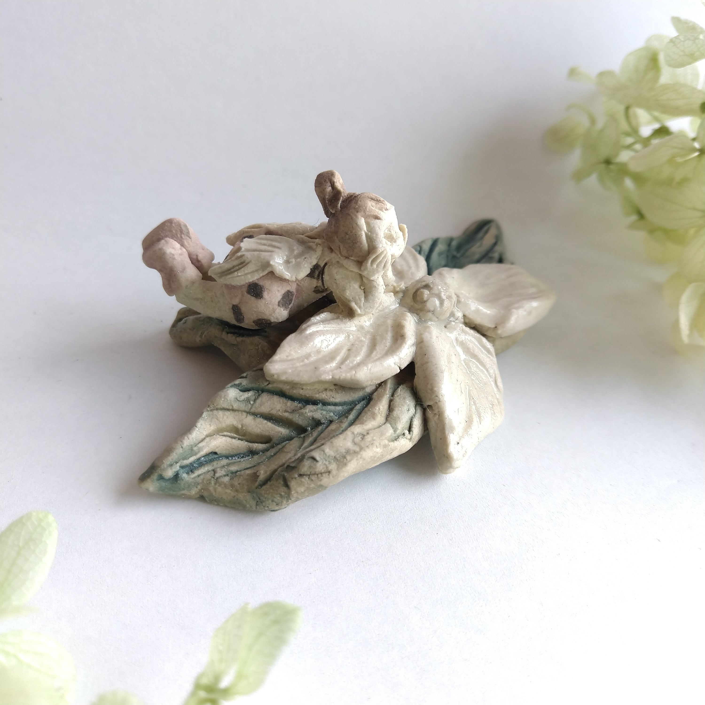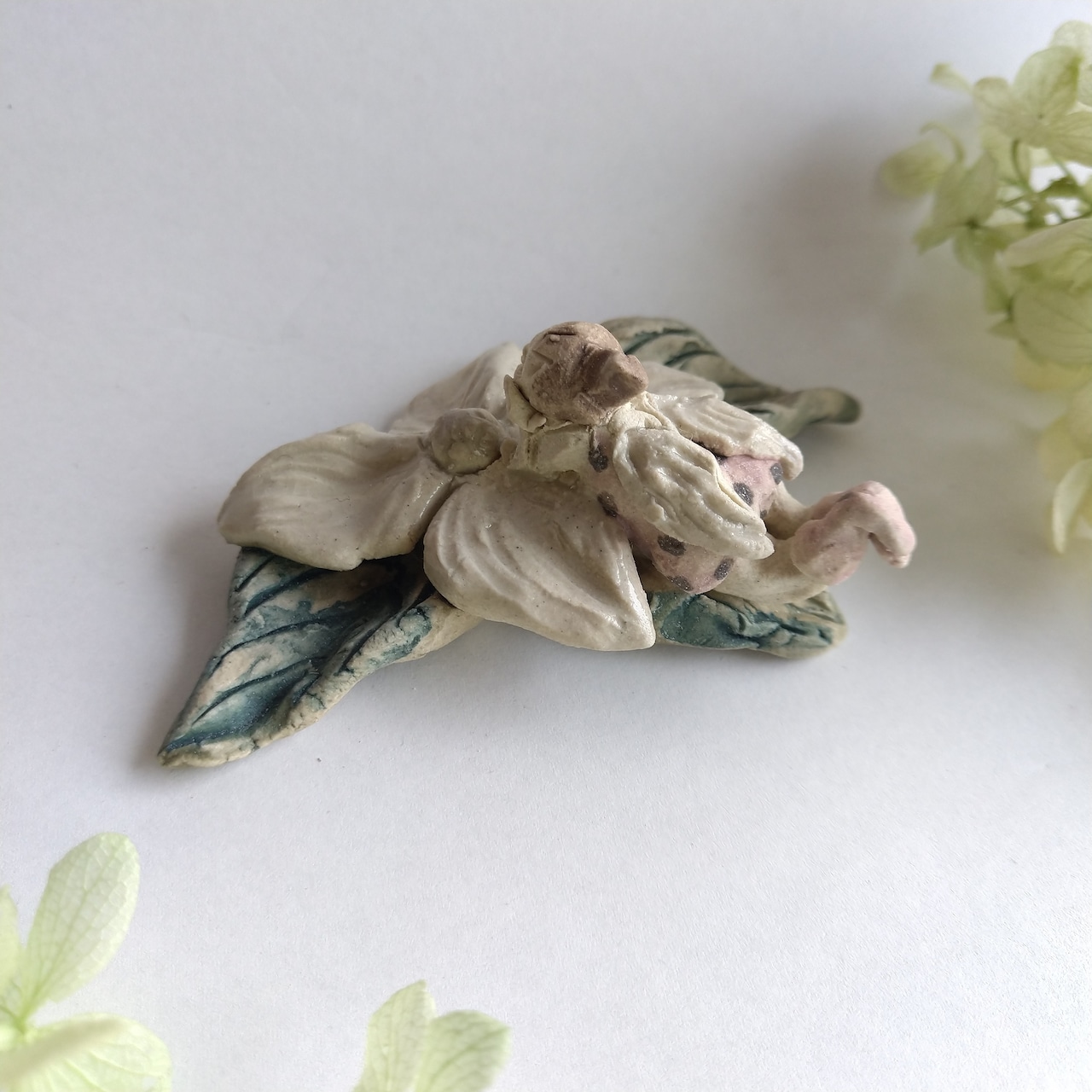 好きな花や、その花言葉をイメージしたりしながら、自分の身体が小さくなったら、こんな風に花の妖精のように寄り添ってみたいなぁと思いながら制作してみました。