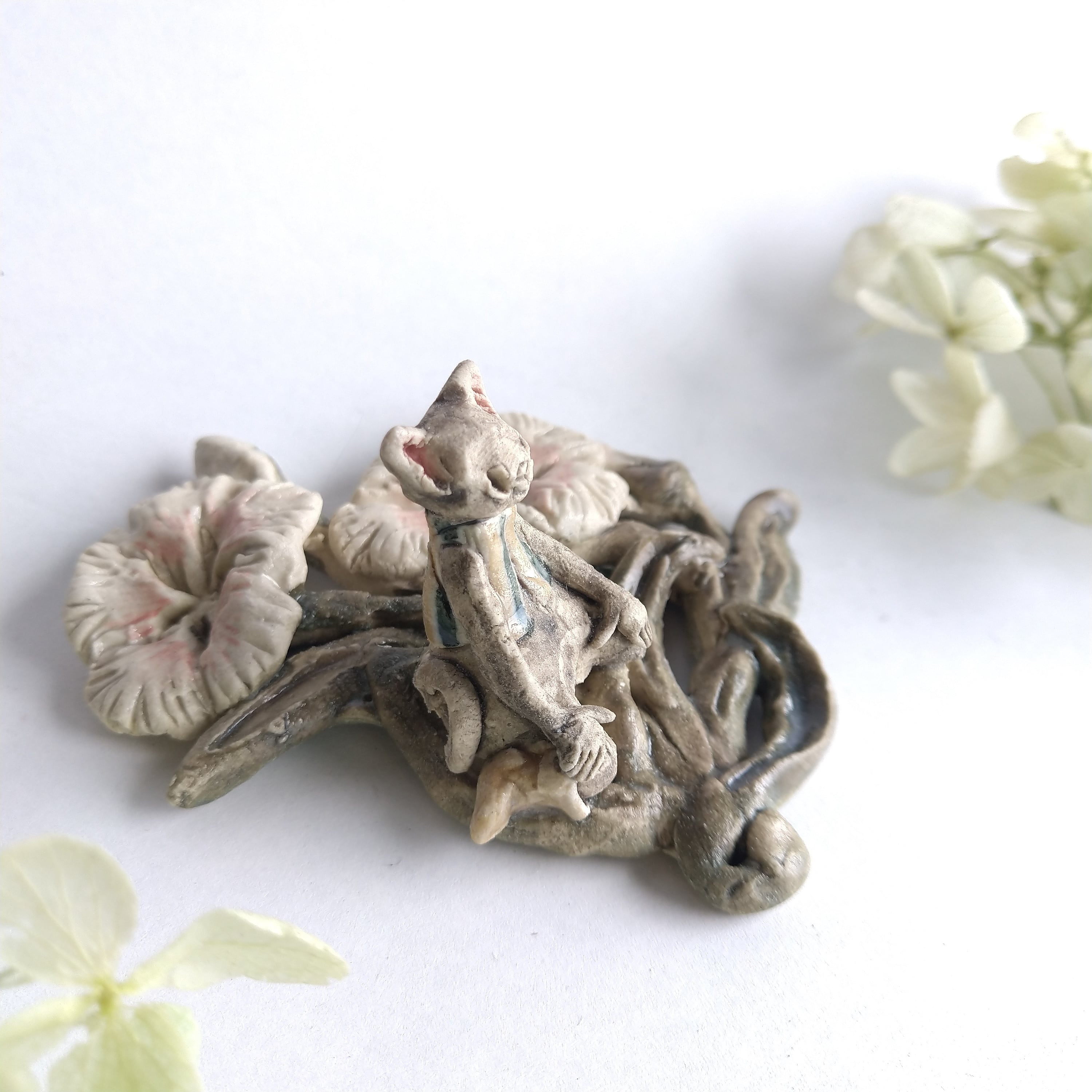 好きな花や、その花言葉をイメージしたりしながら、自分の身体が小さくなったら、こんな風に花の妖精のように寄り添ってみたいなぁと思いながら制作してみました。