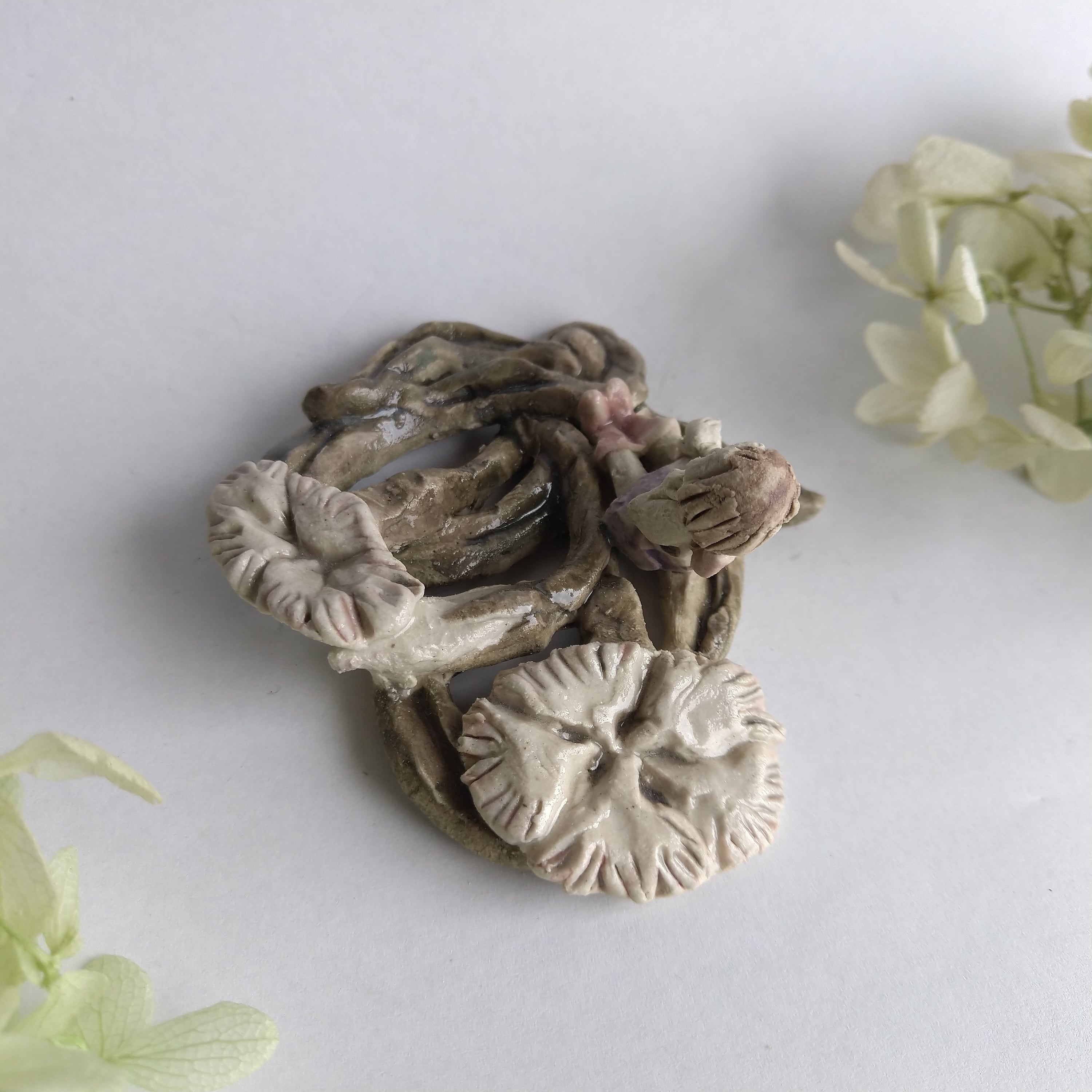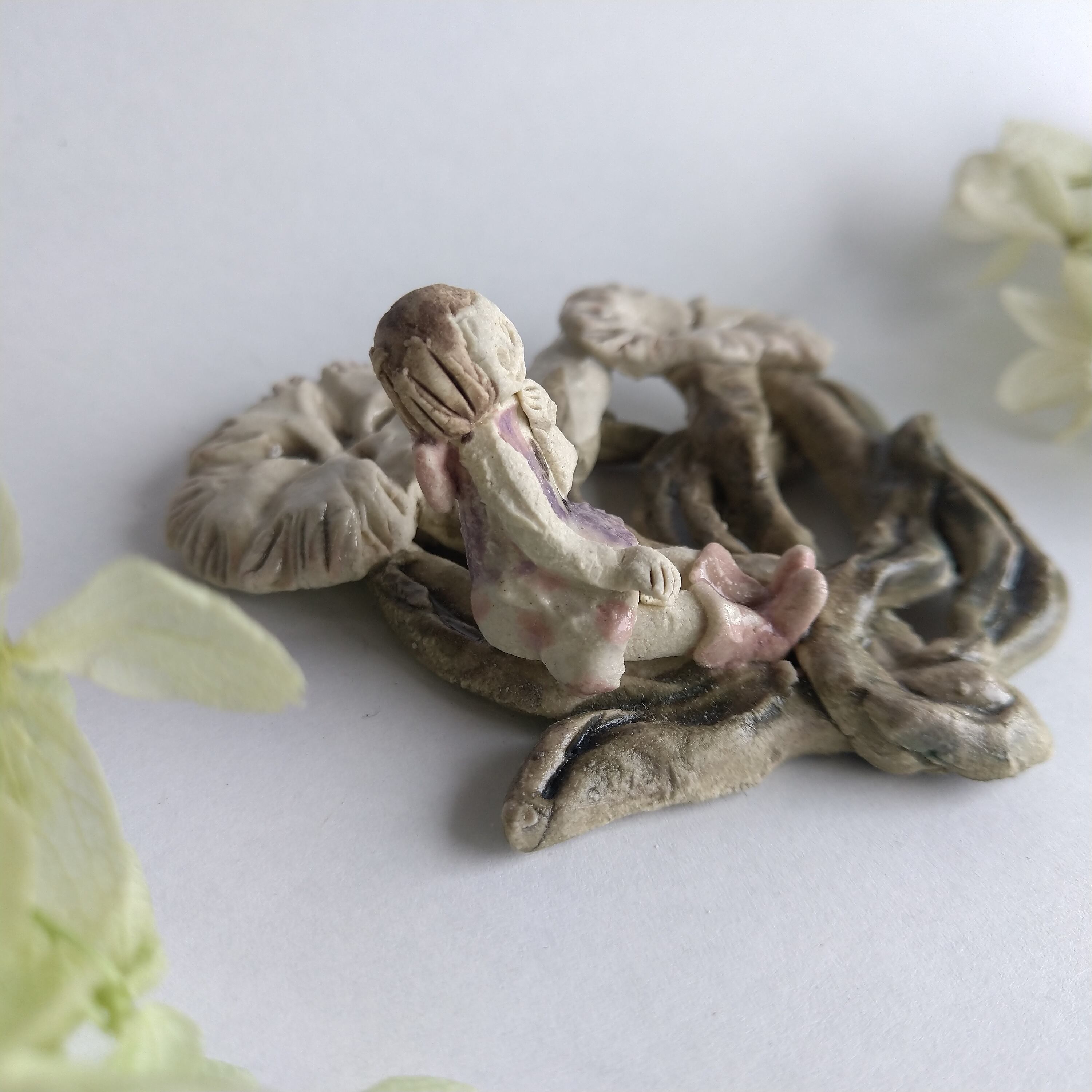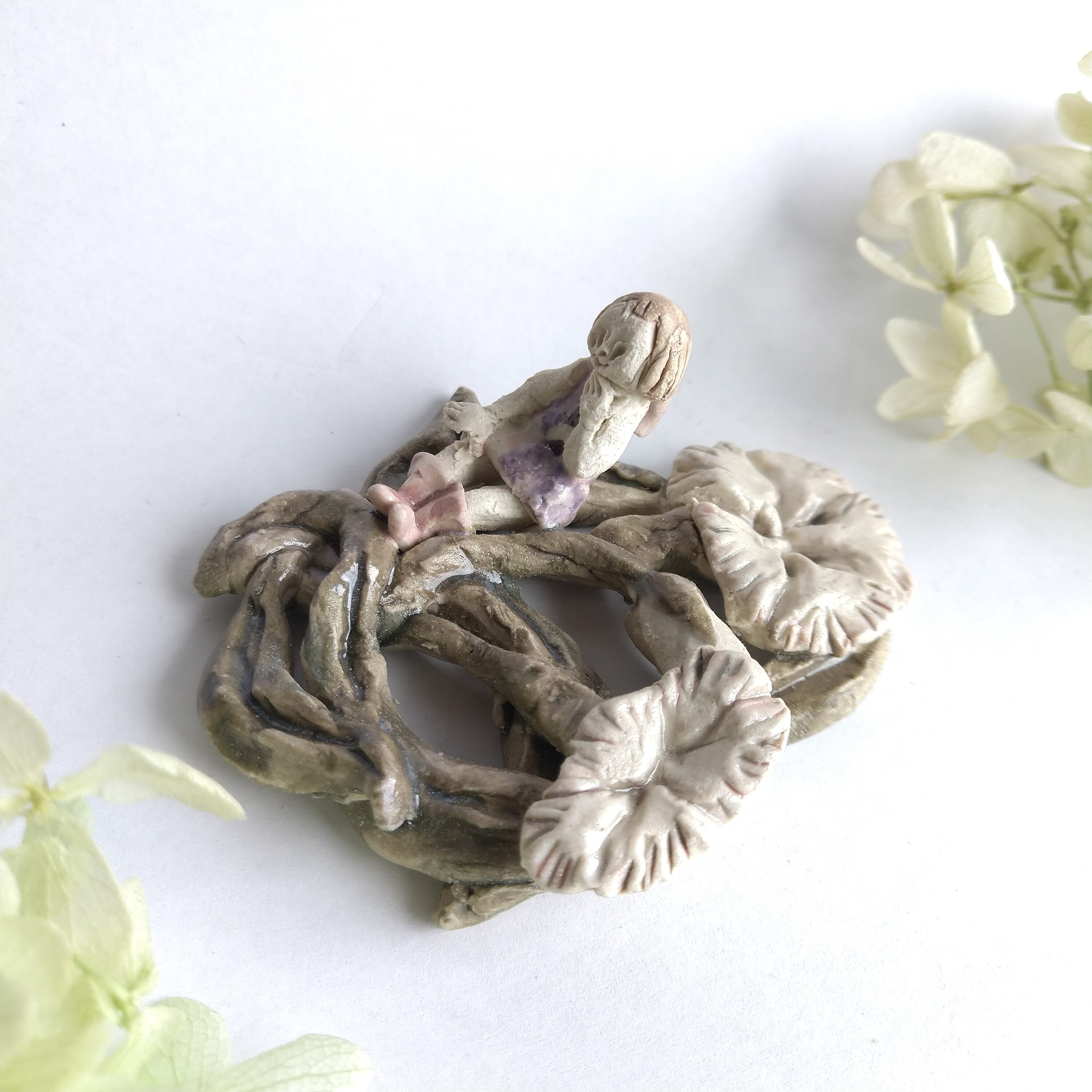 好きな花や、その花言葉をイメージしたりしながら、自分の身体が小さくなったら、こんな風に花の妖精のように寄り添ってみたいなぁと思いながら制作してみました。
