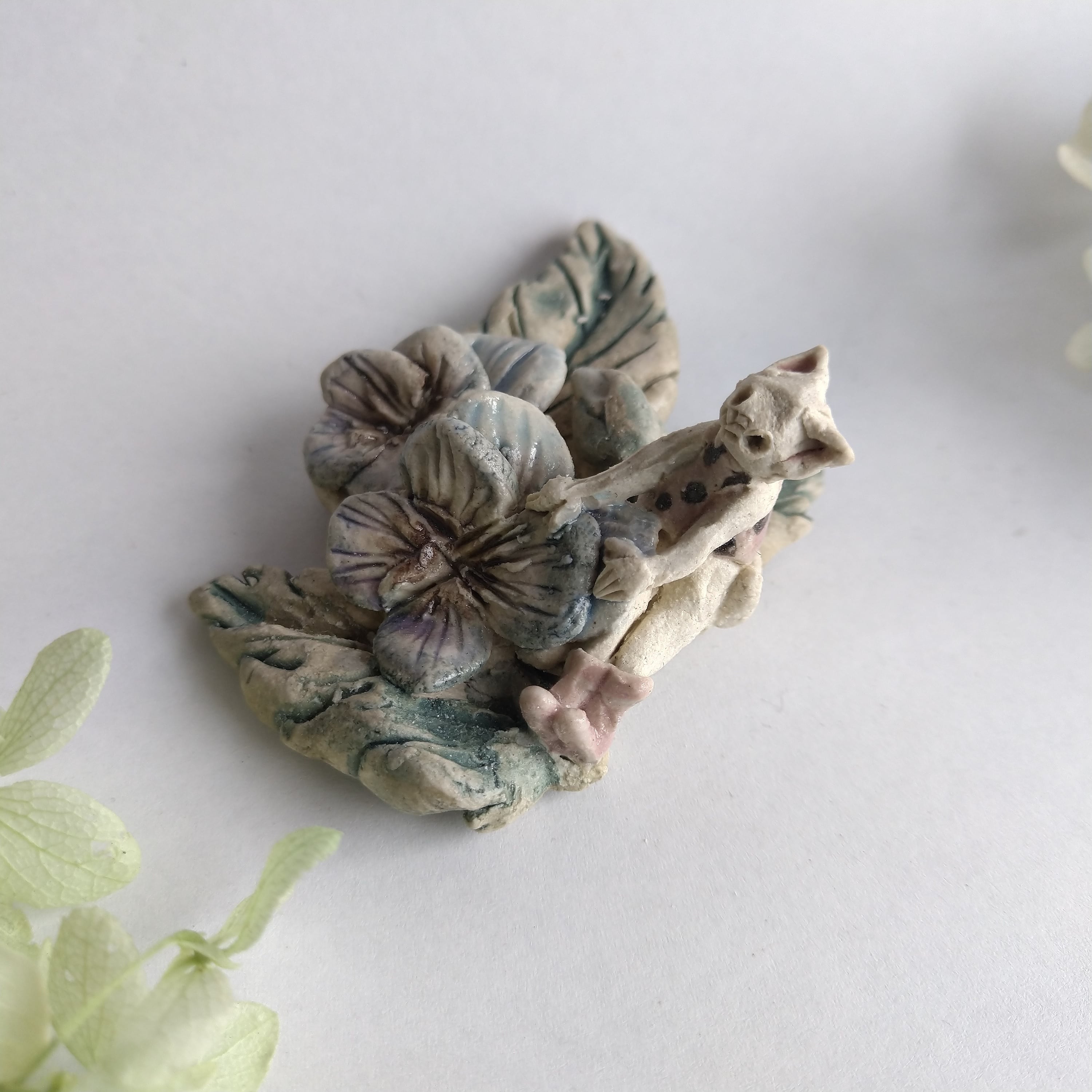 好きな花や、その花言葉をイメージしたりしながら、自分の身体が小さくなったら、こんな風に花の妖精のように寄り添ってみたいなぁと思いながら制作してみました。