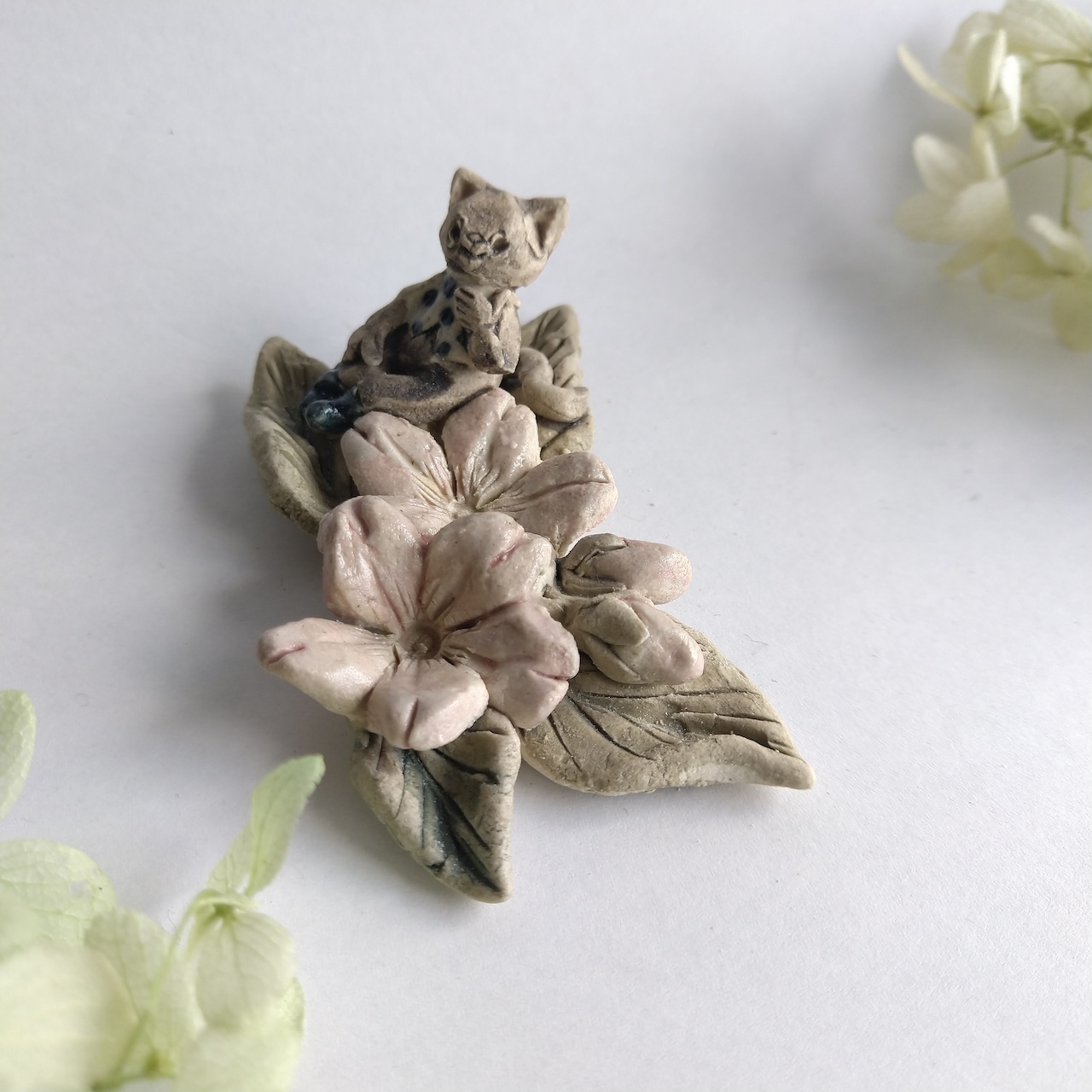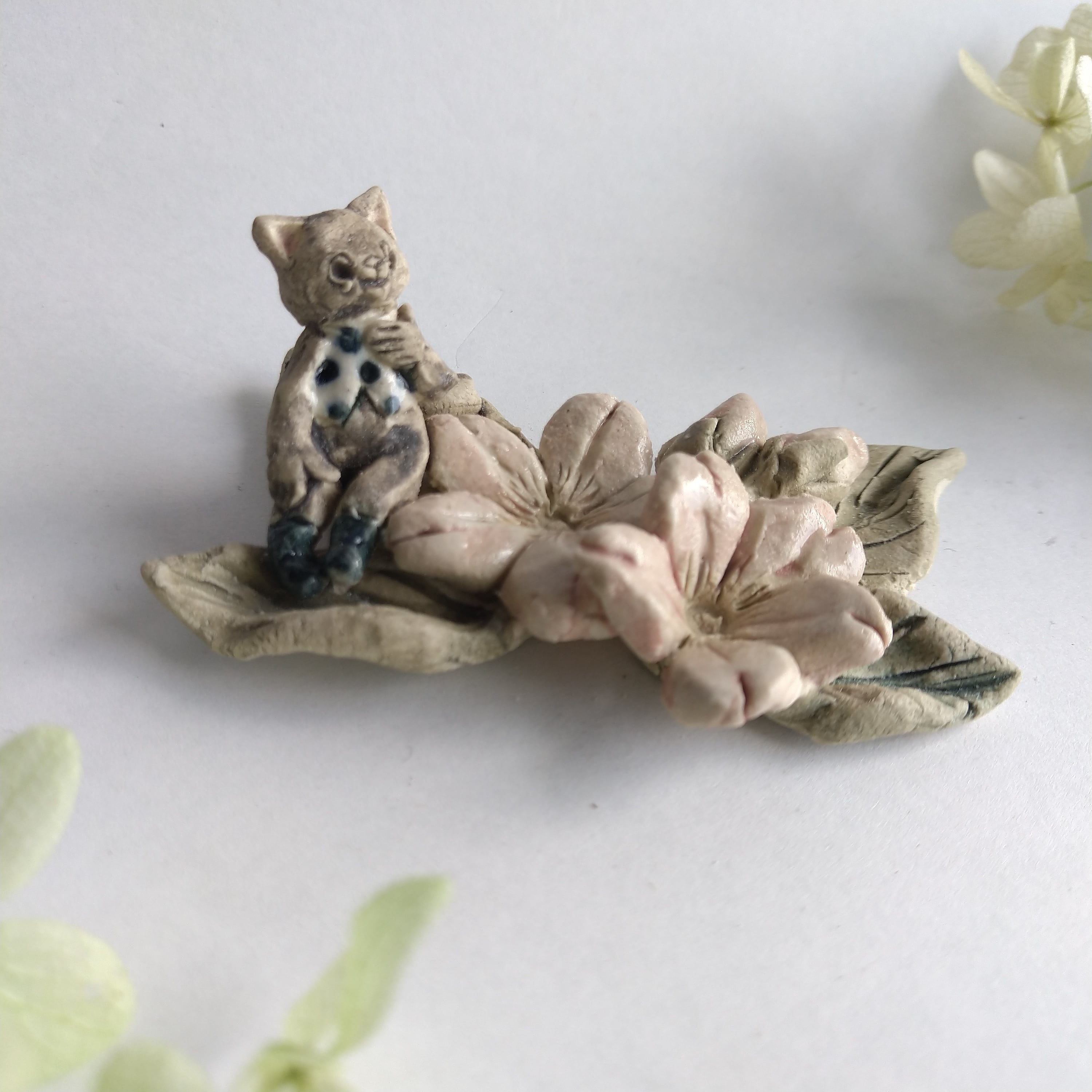 好きな花や、その花言葉をイメージしたりしながら、自分の身体が小さくなったら、こんな風に花の妖精のように寄り添ってみたいなぁと思いながら制作してみました。