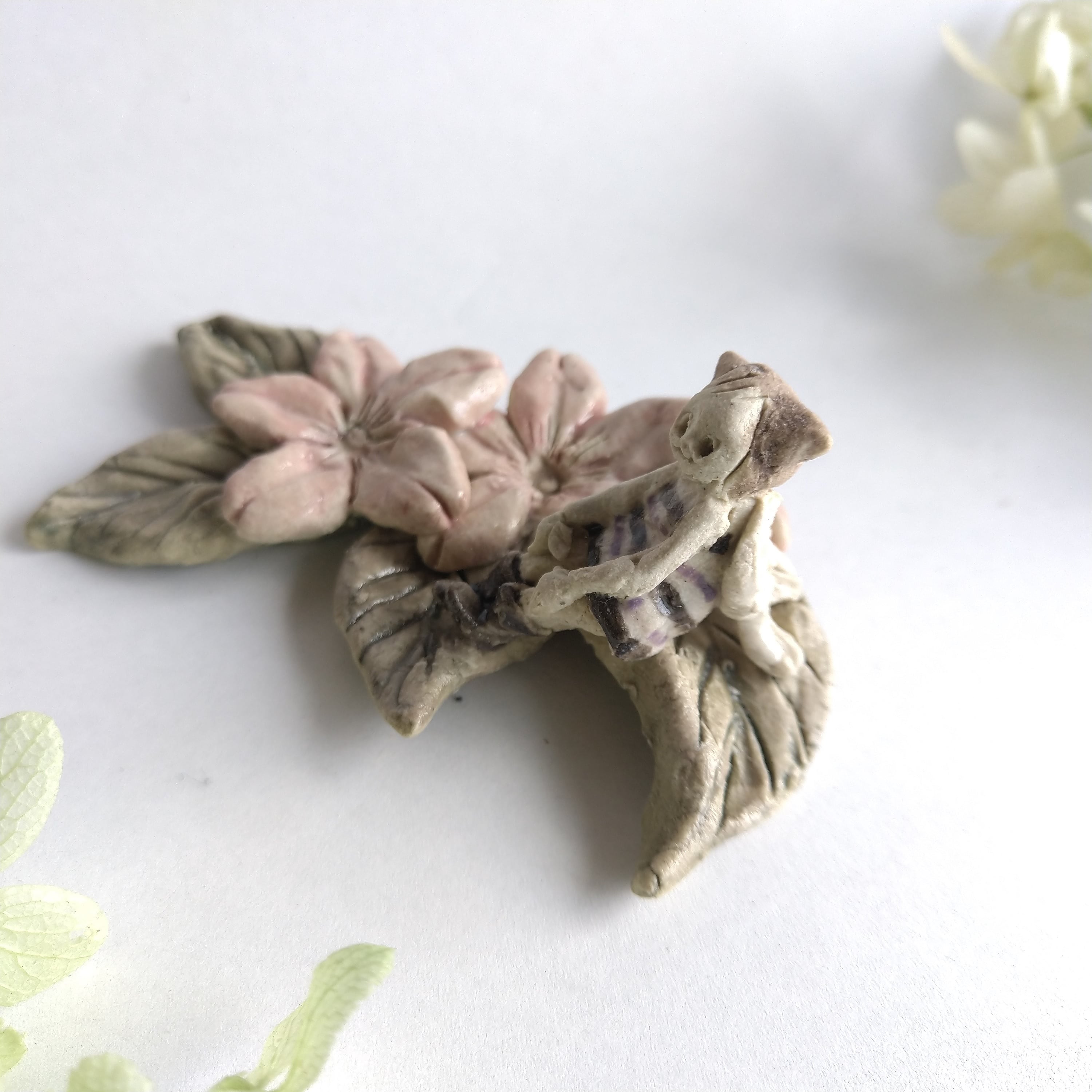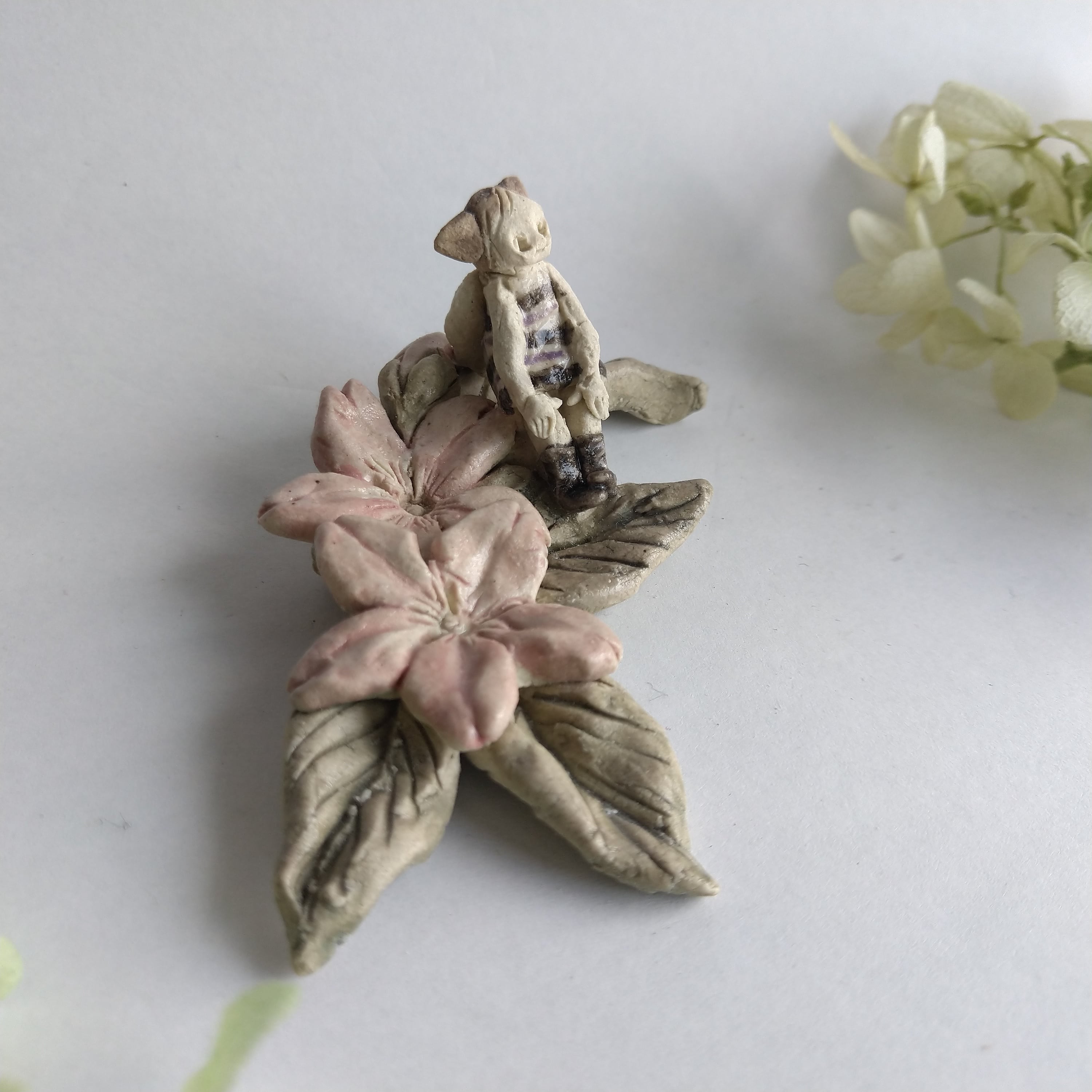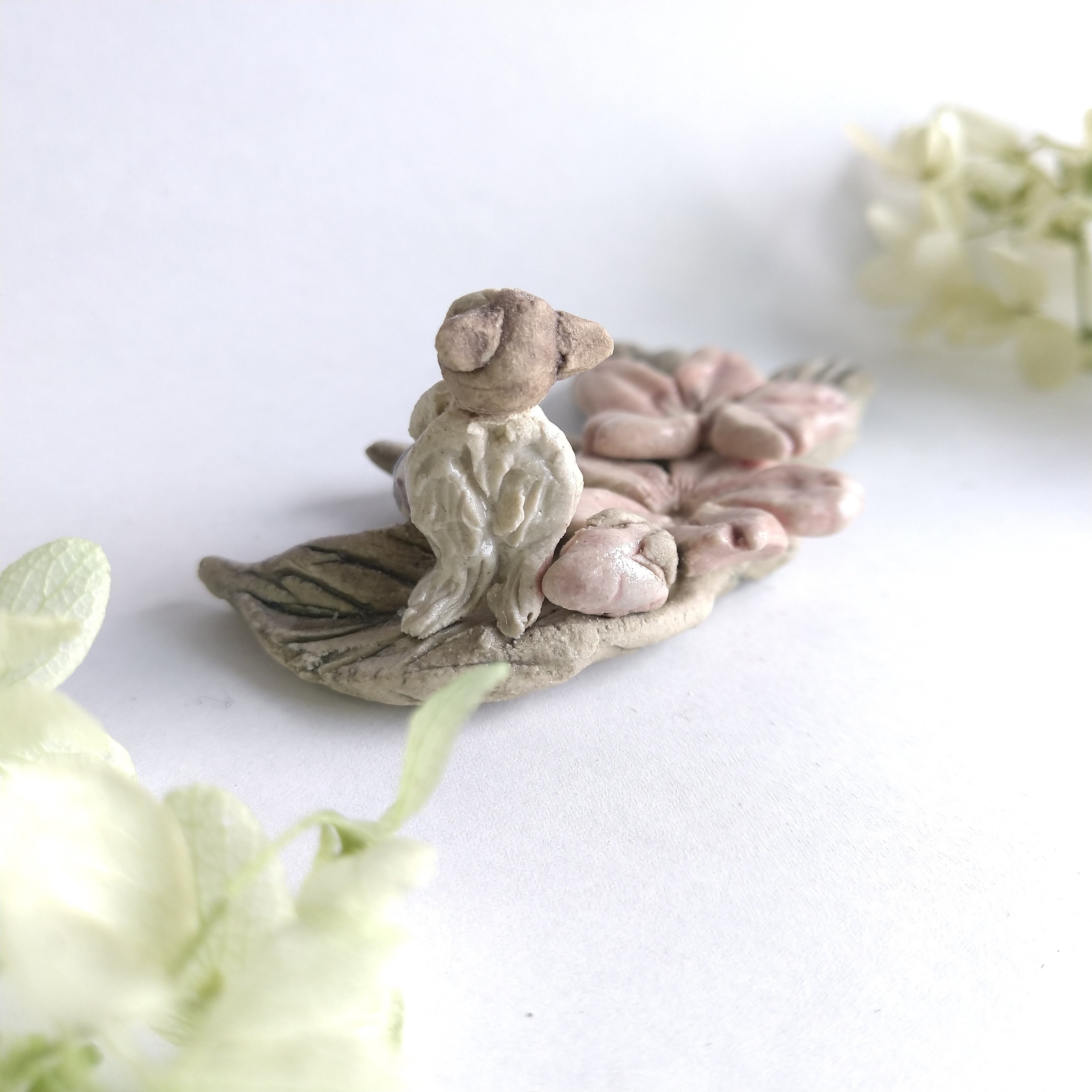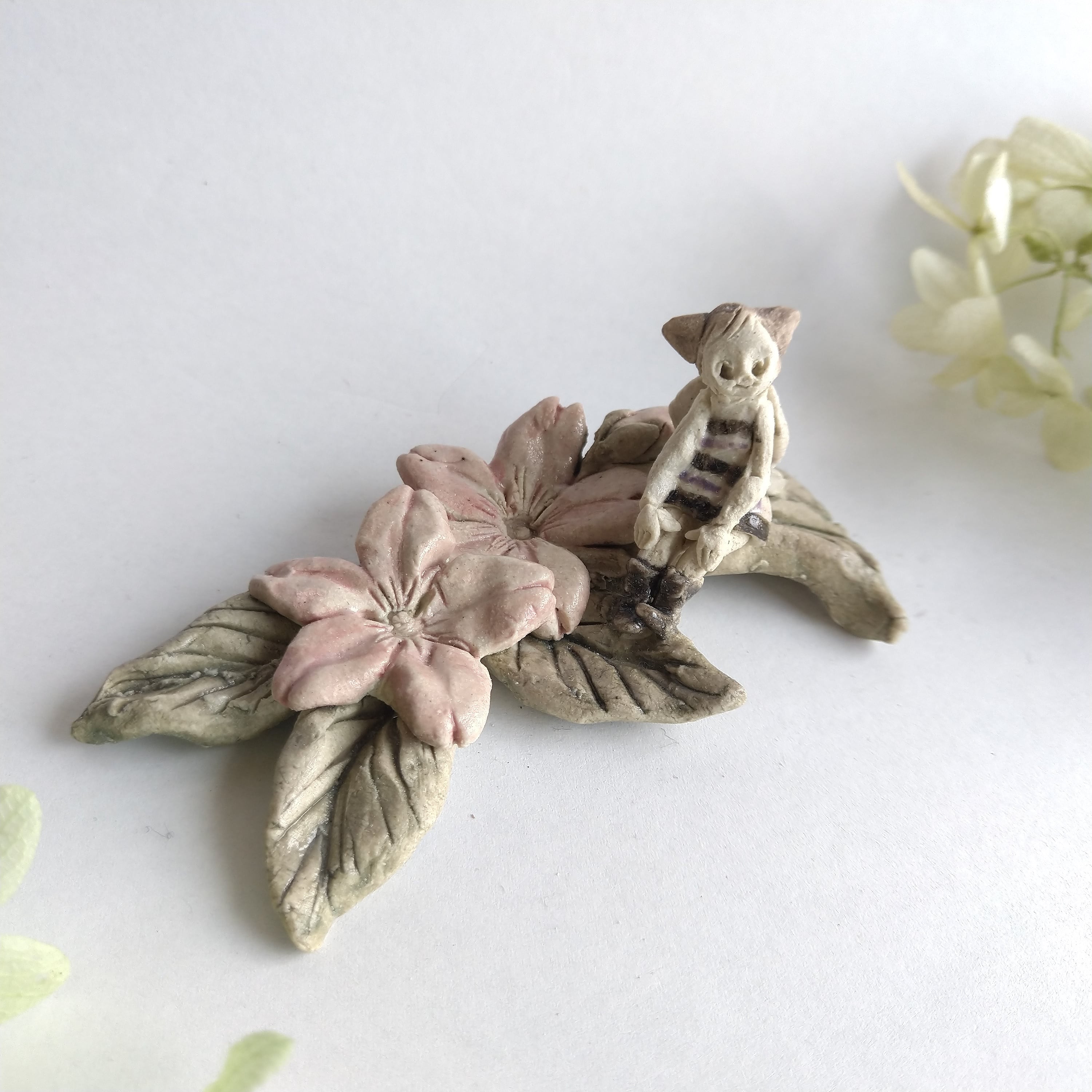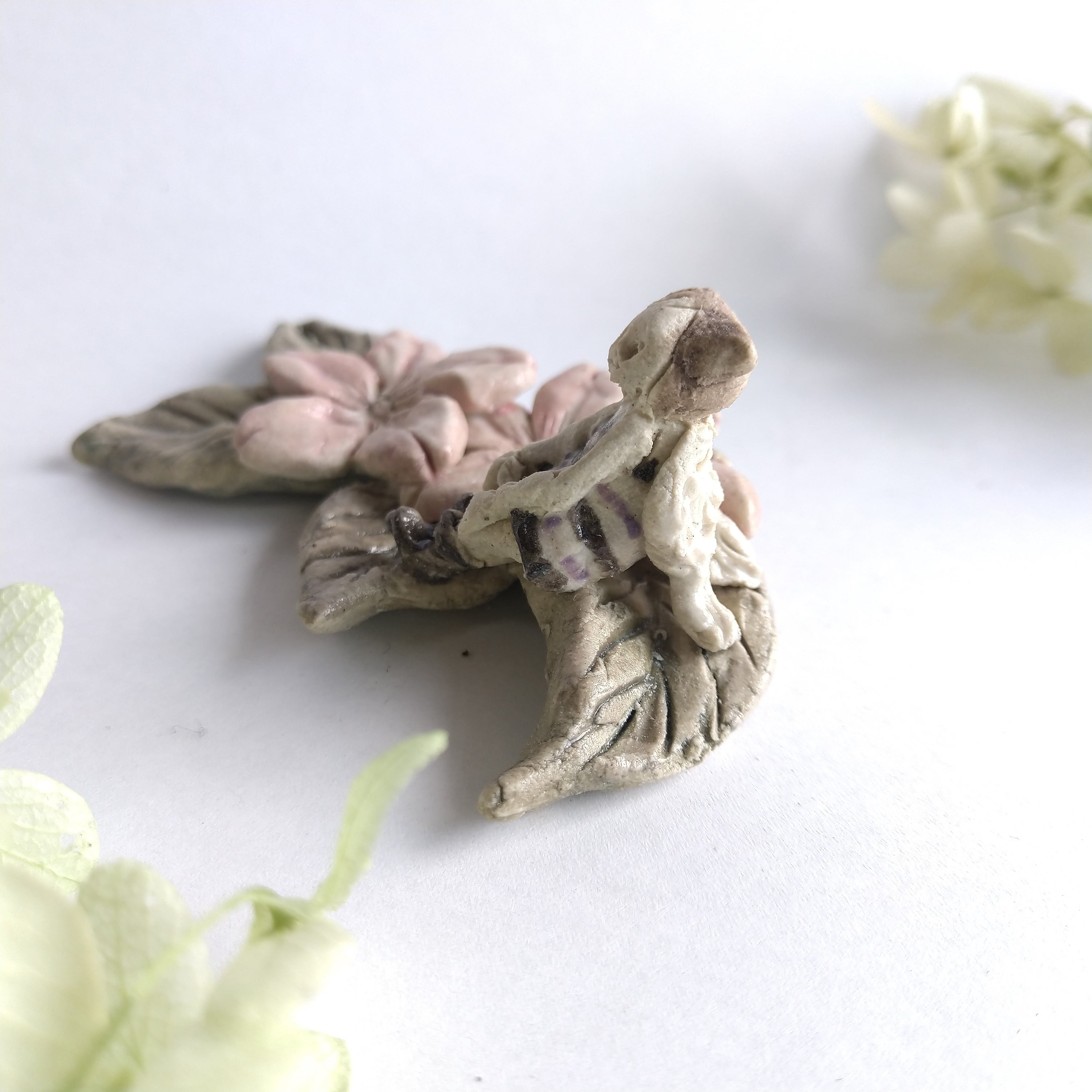 好きな花や、その花言葉をイメージしたりしながら、自分の身体が小さくなったら、こんな風に花の妖精のように寄り添ってみたいなぁと思いながら制作してみました。