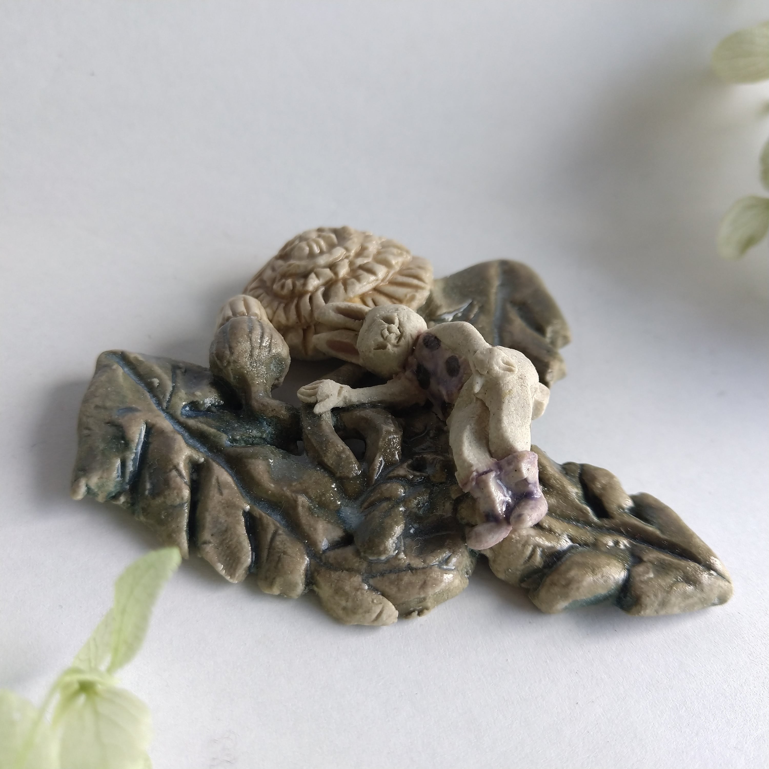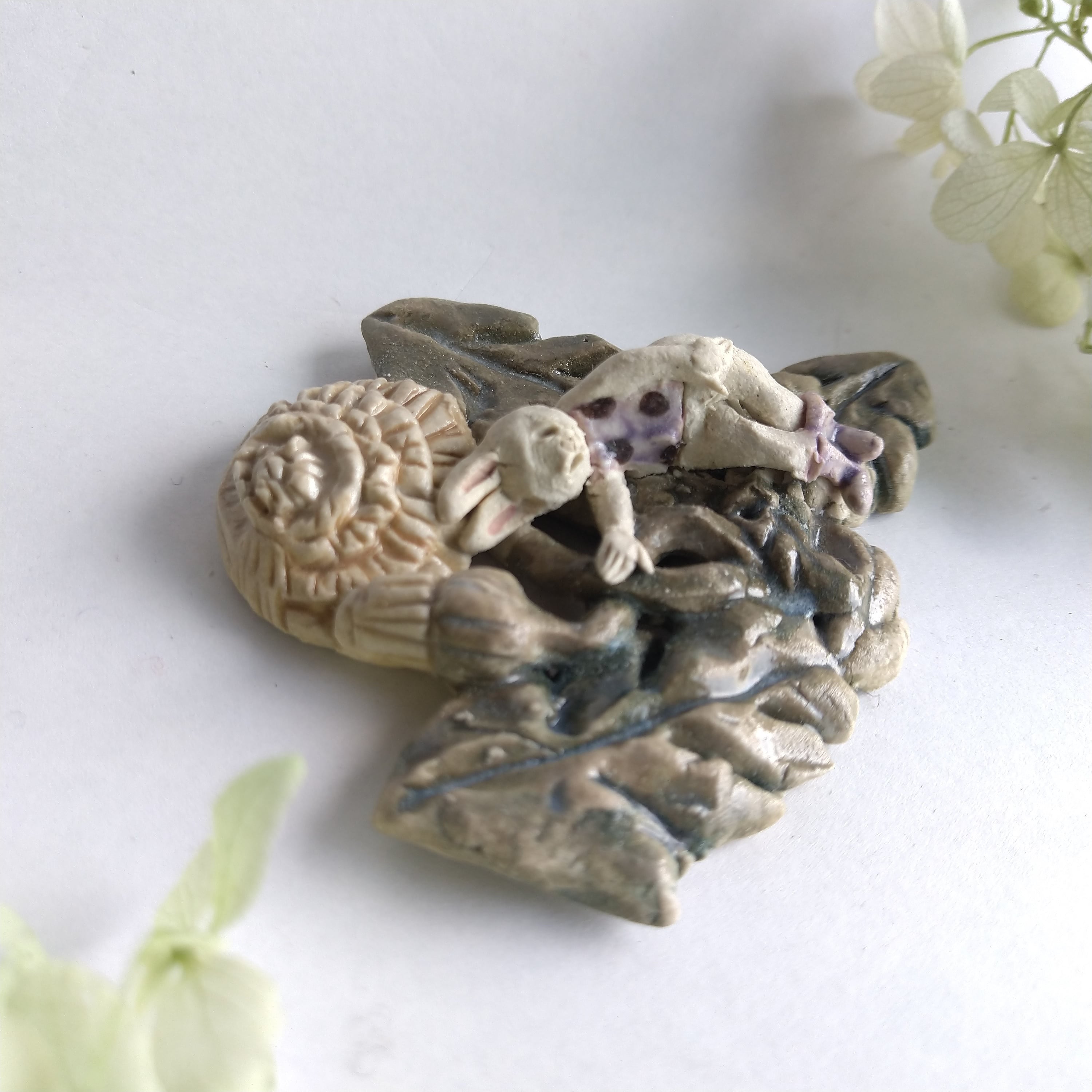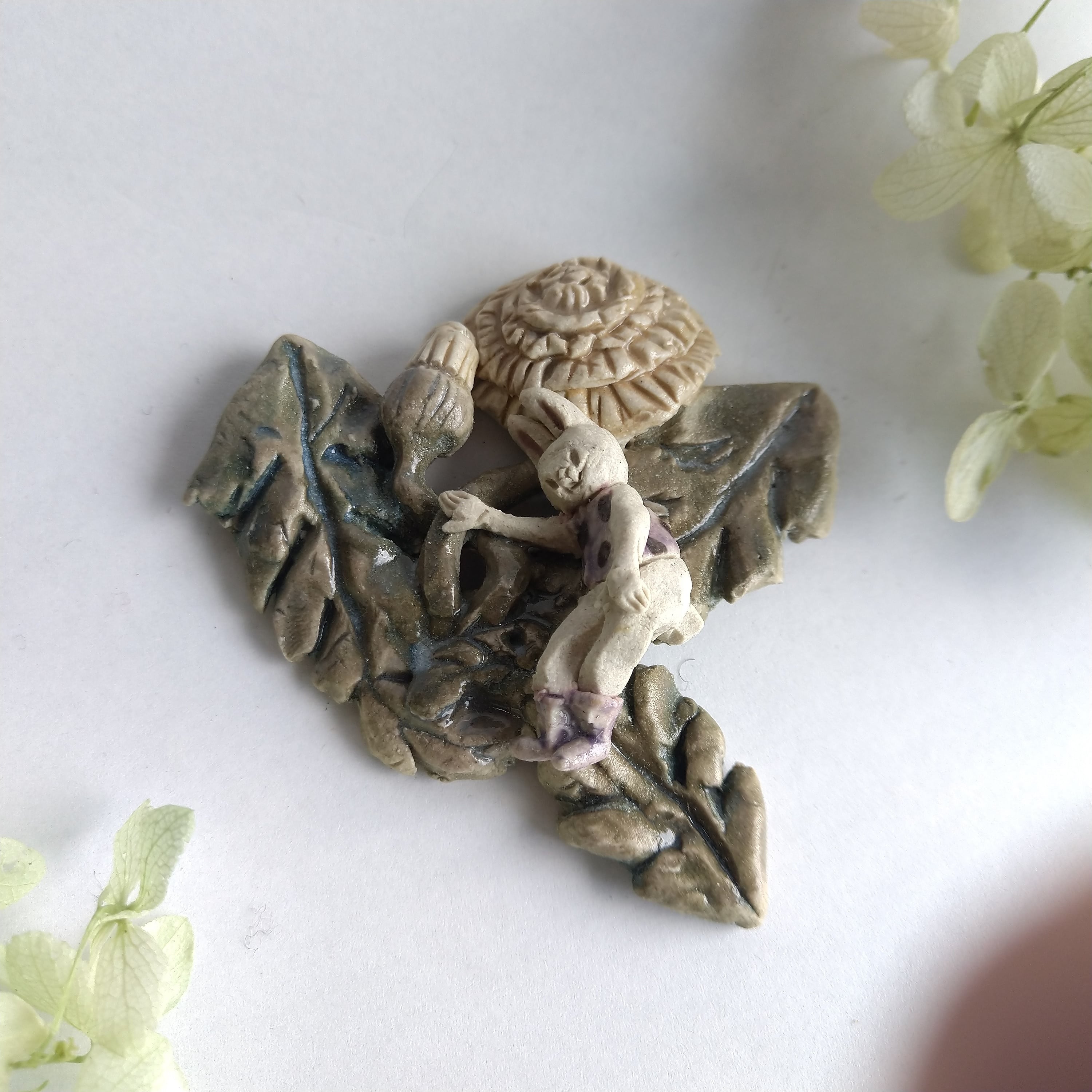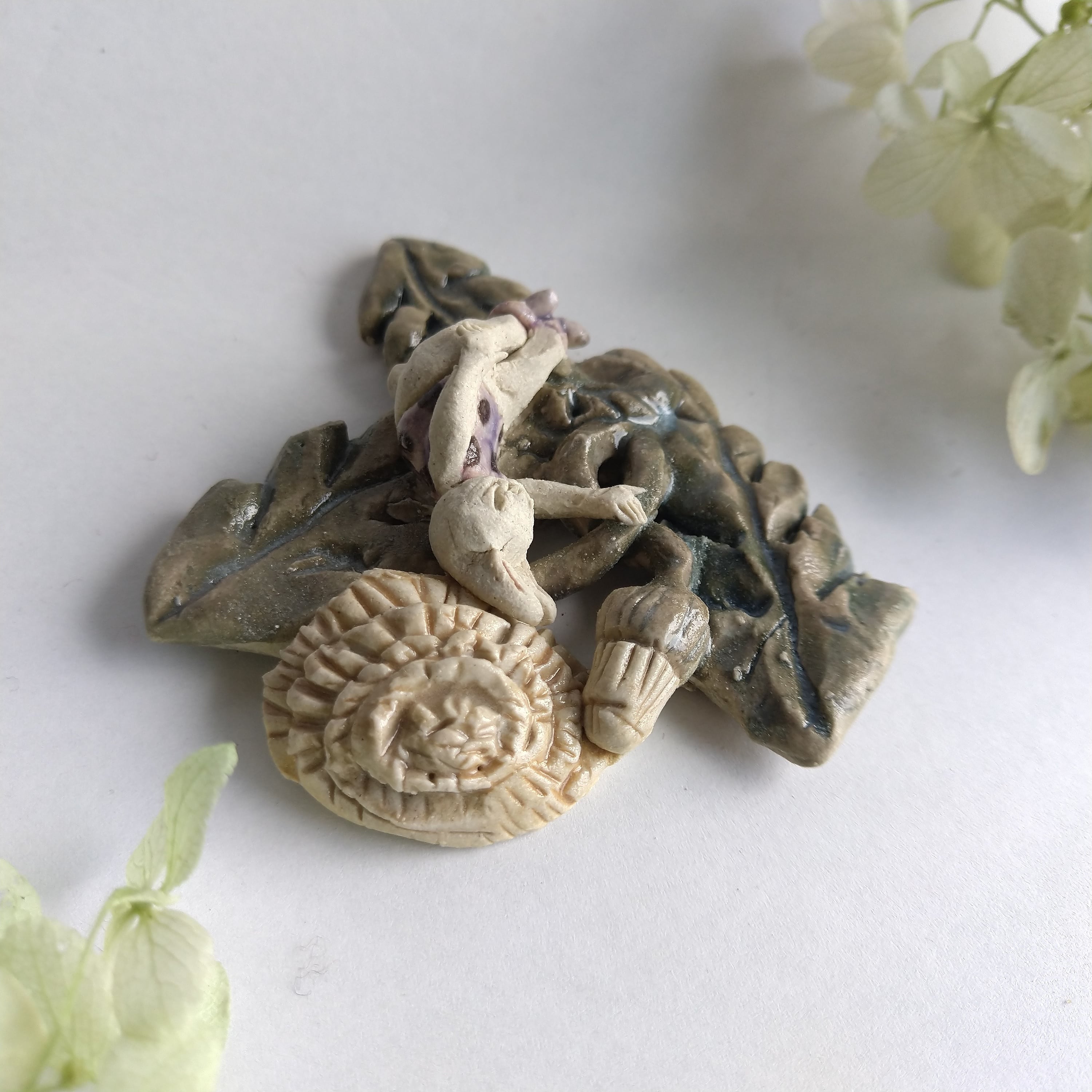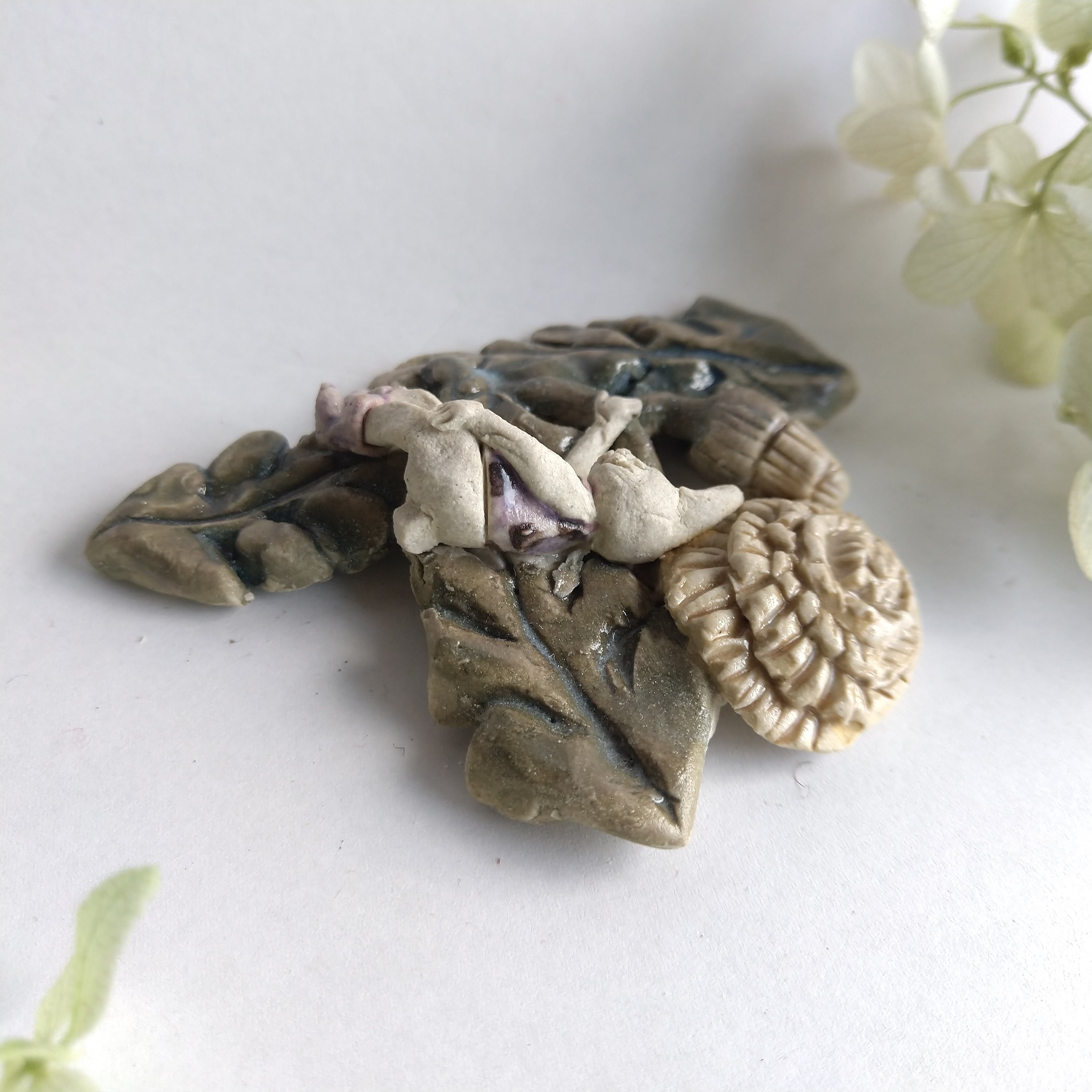 好きな花や、その花言葉をイメージしたりしながら、自分の身体が小さくなったら、こんな風に花の妖精のように寄り添ってみたいなぁと思いながら制作してみました。