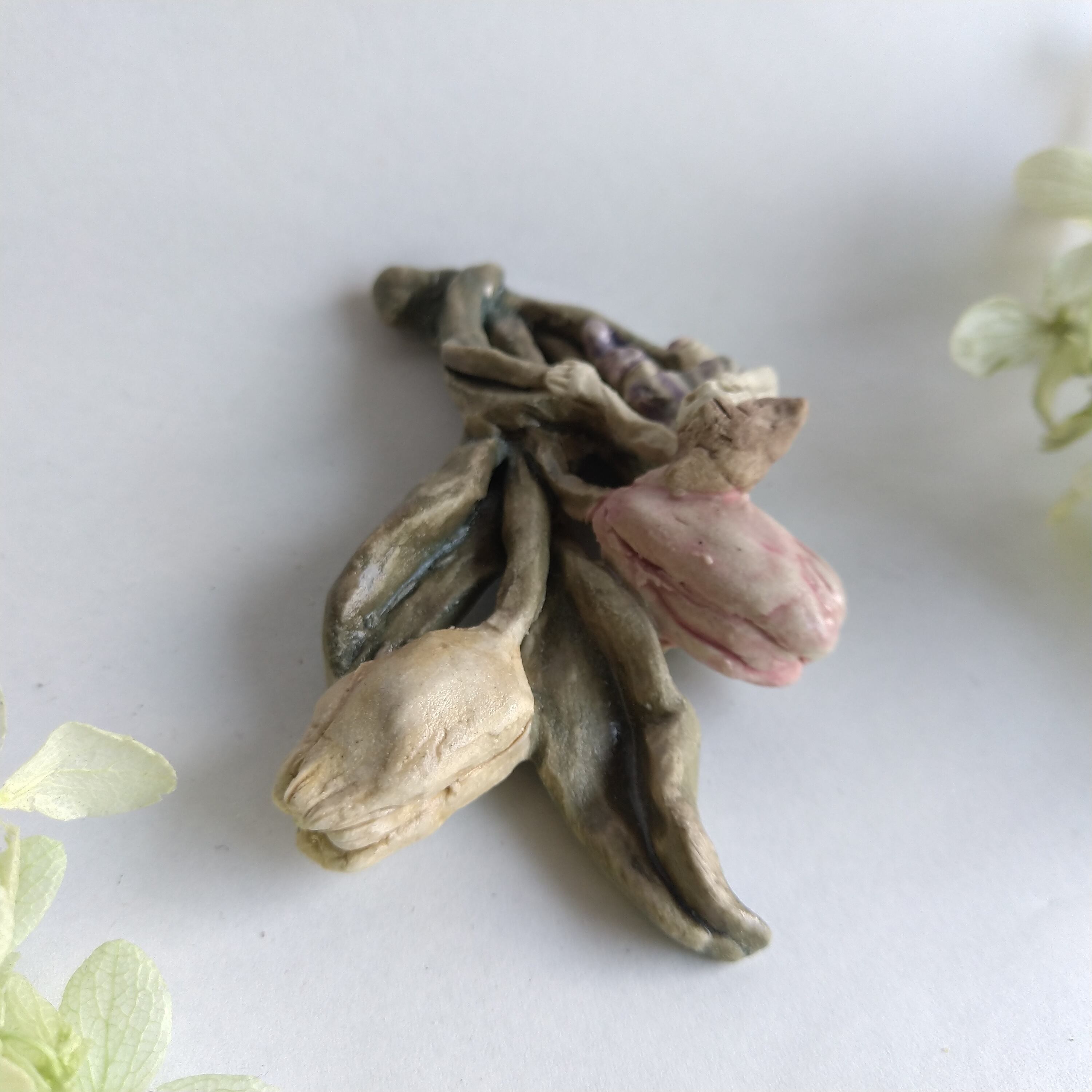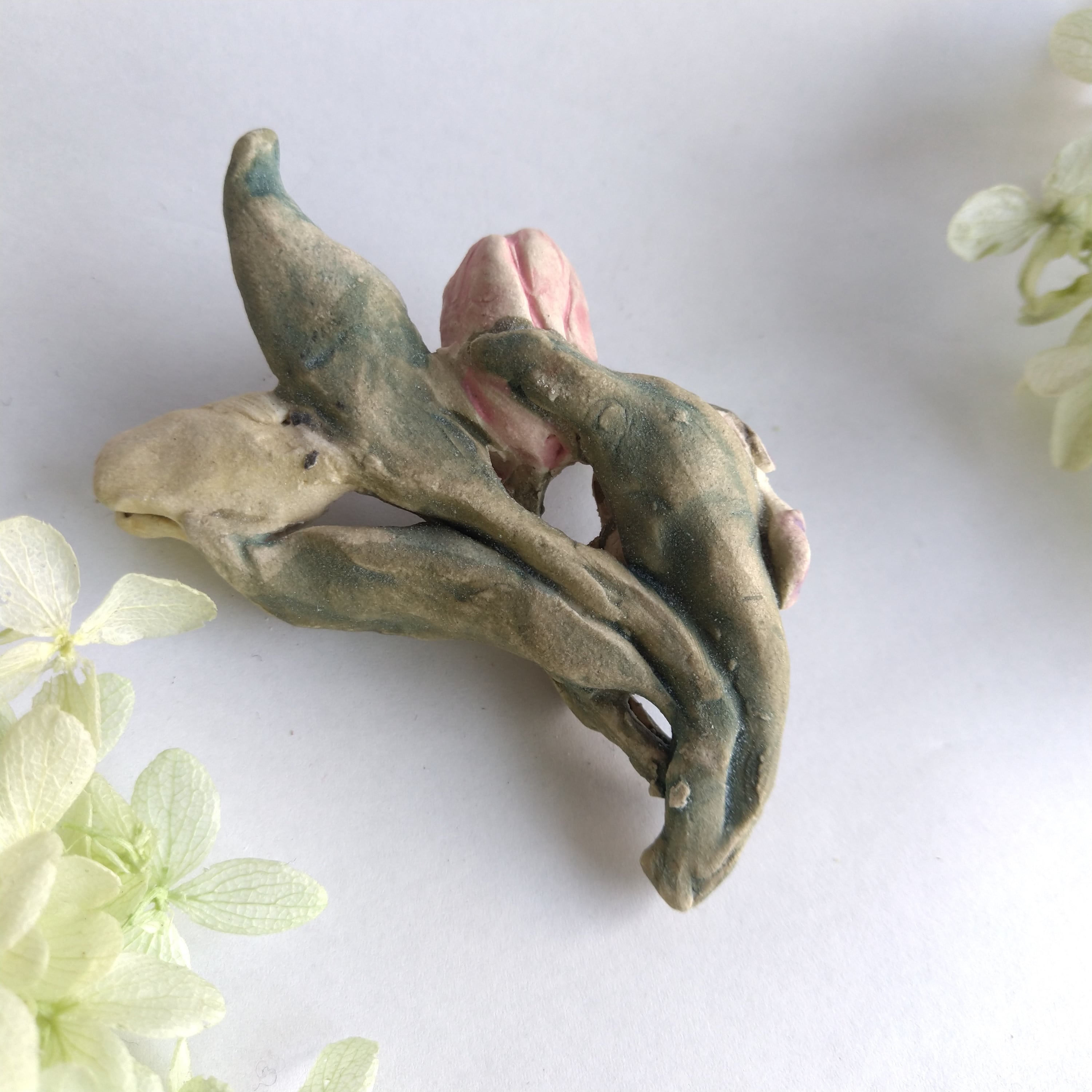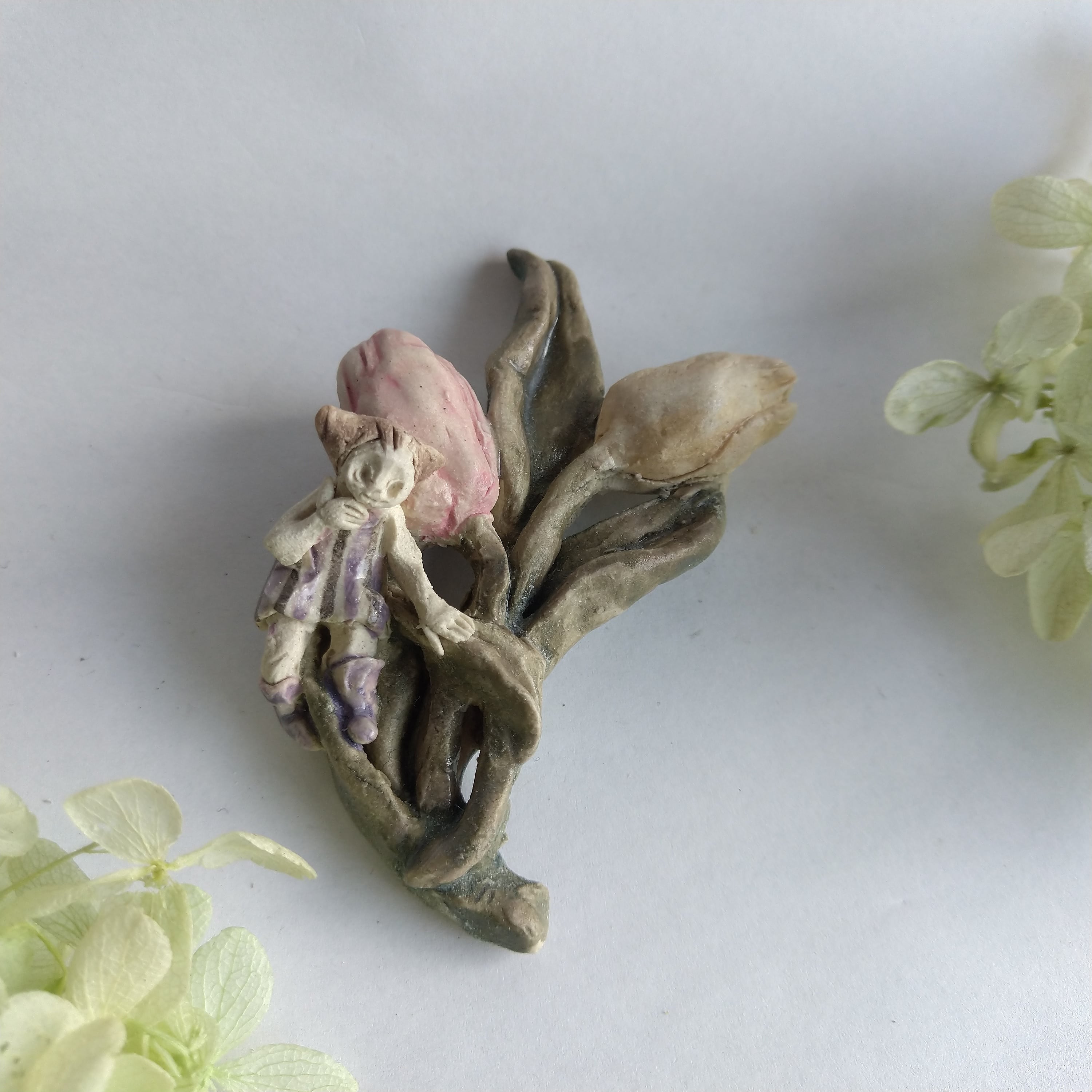 好きな花や、その花言葉をイメージしたりしながら、自分の身体が小さくなったら、こんな風に花の妖精のように寄り添ってみたいなぁと思いながら制作してみました。