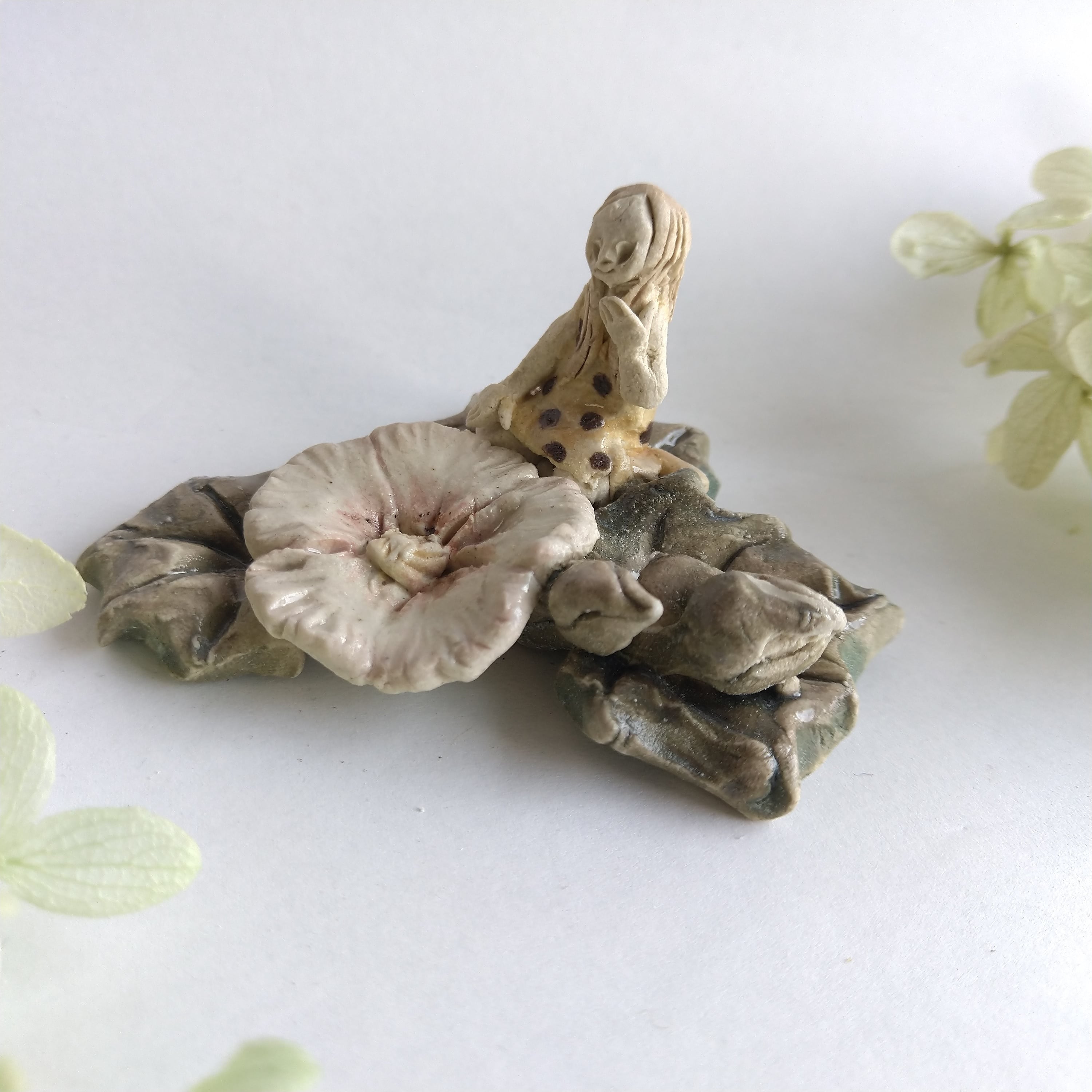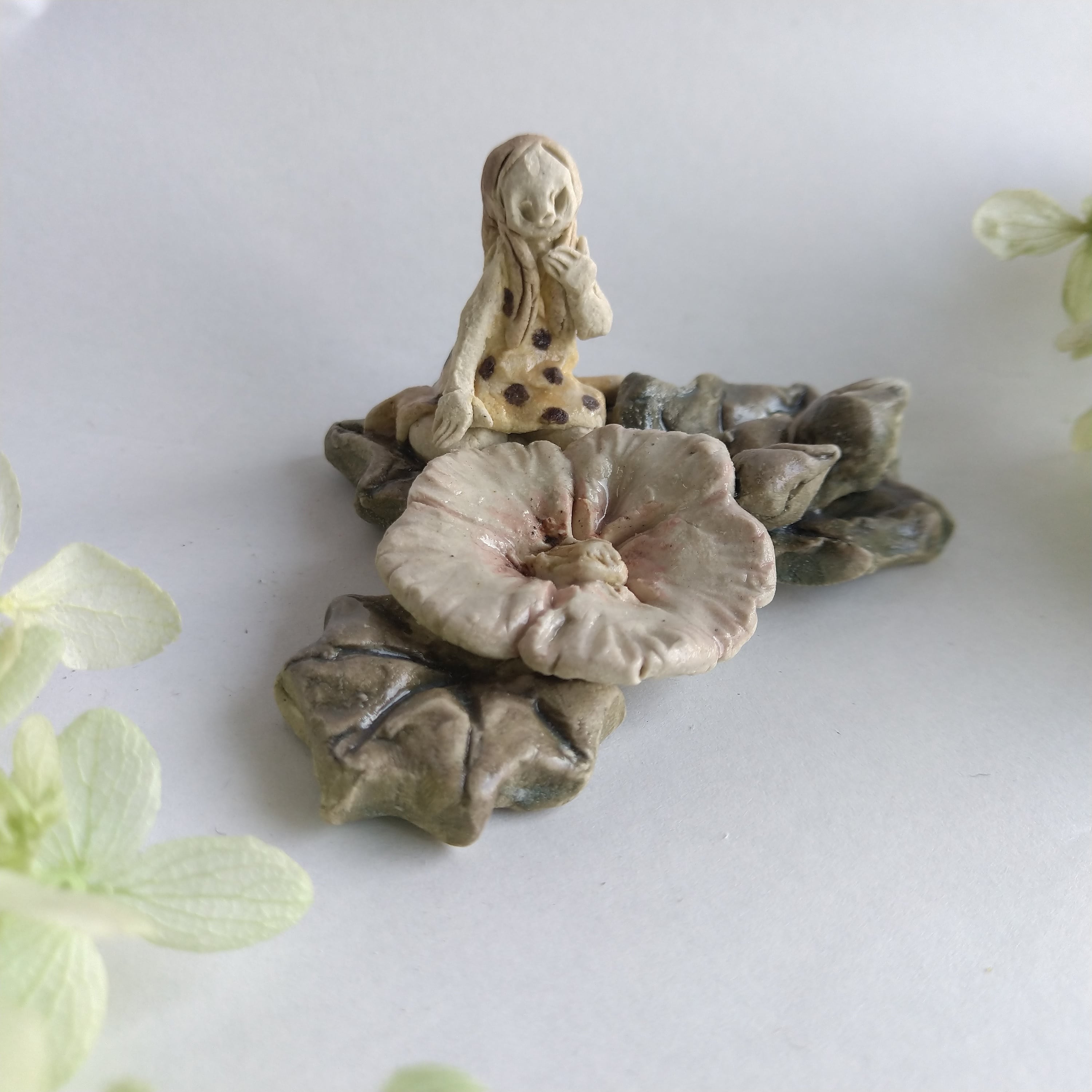好きな花や、その花言葉をイメージしたりしながら、自分の身体が小さくなったら、こんな風に花の妖精のように寄り添ってみたいなぁと思いながら制作してみました。