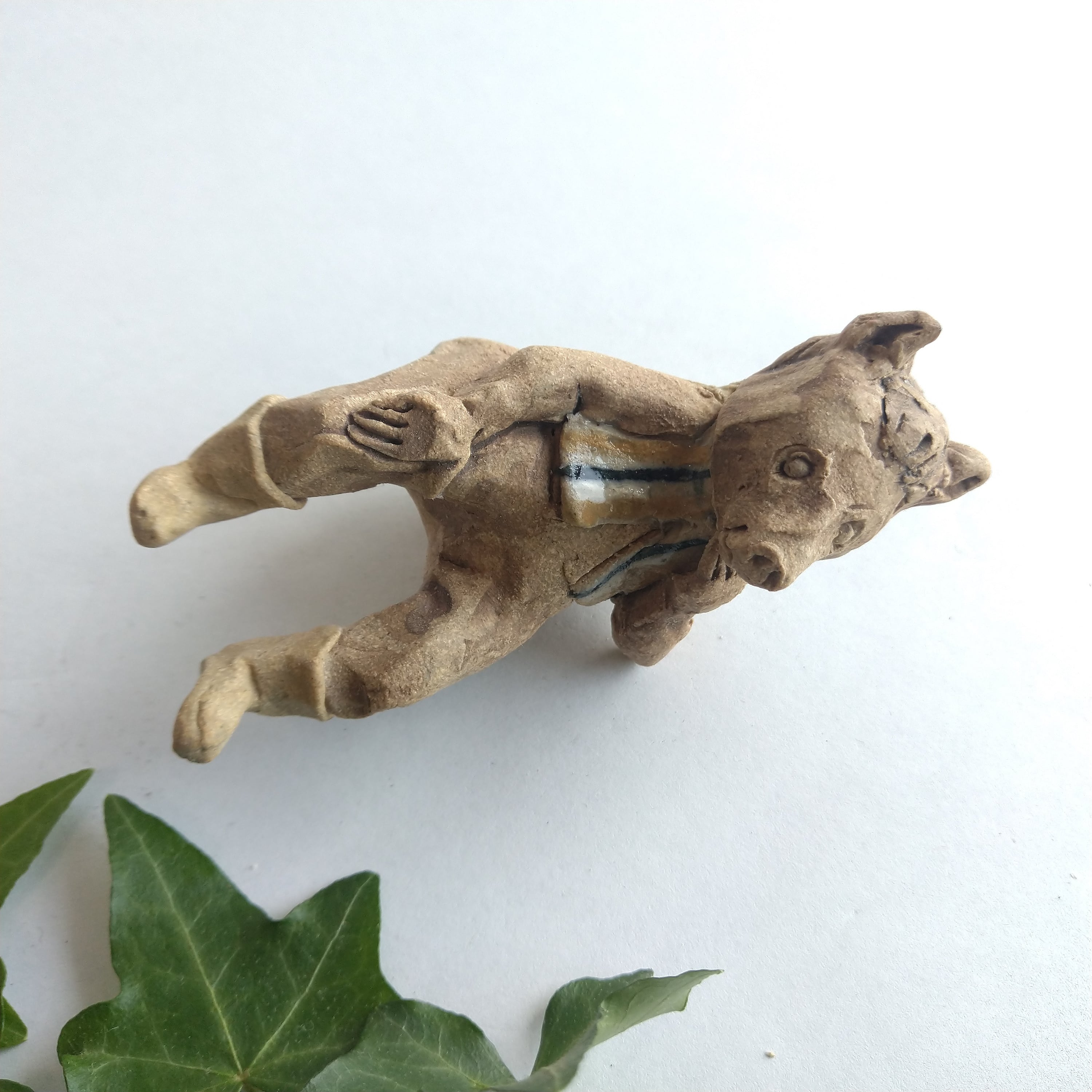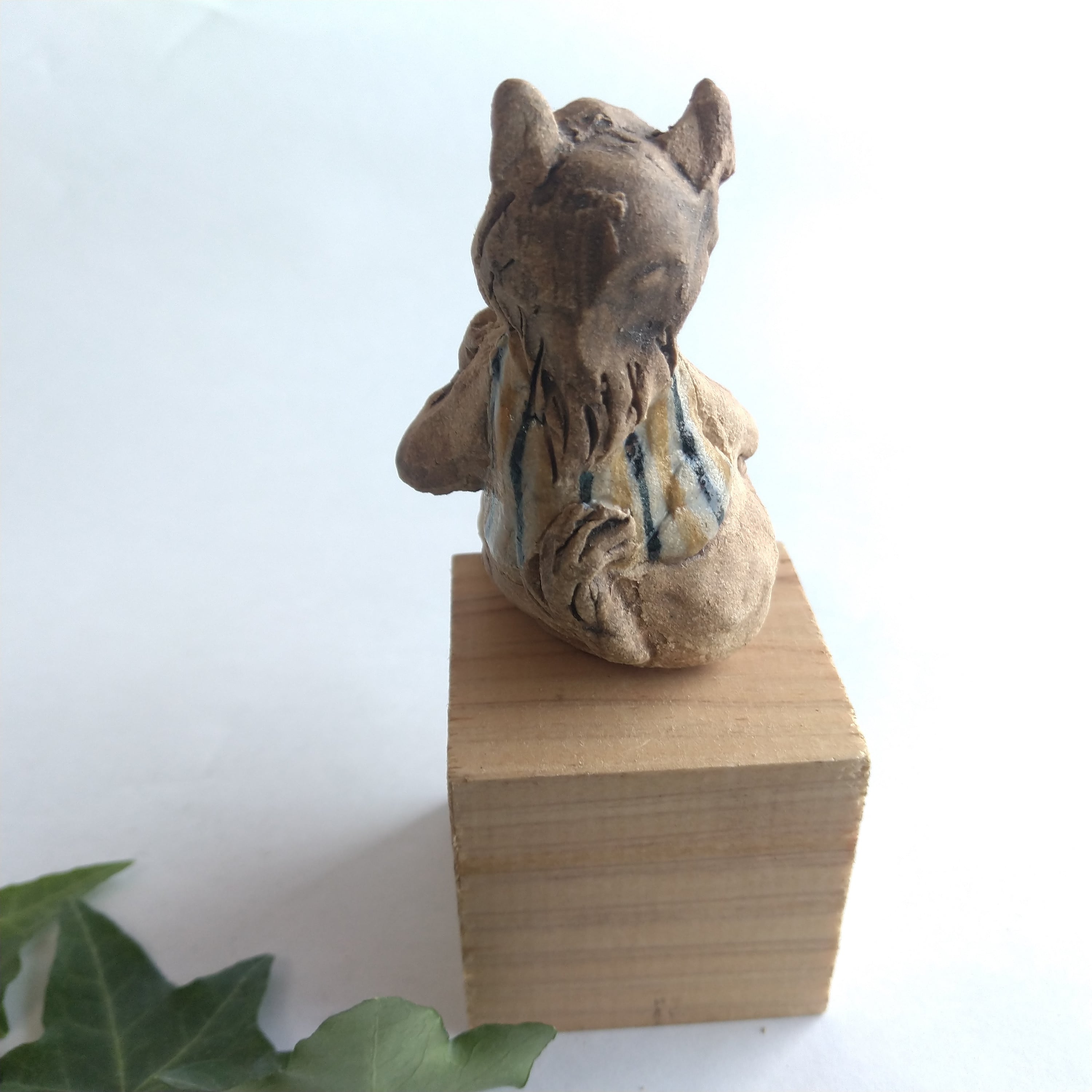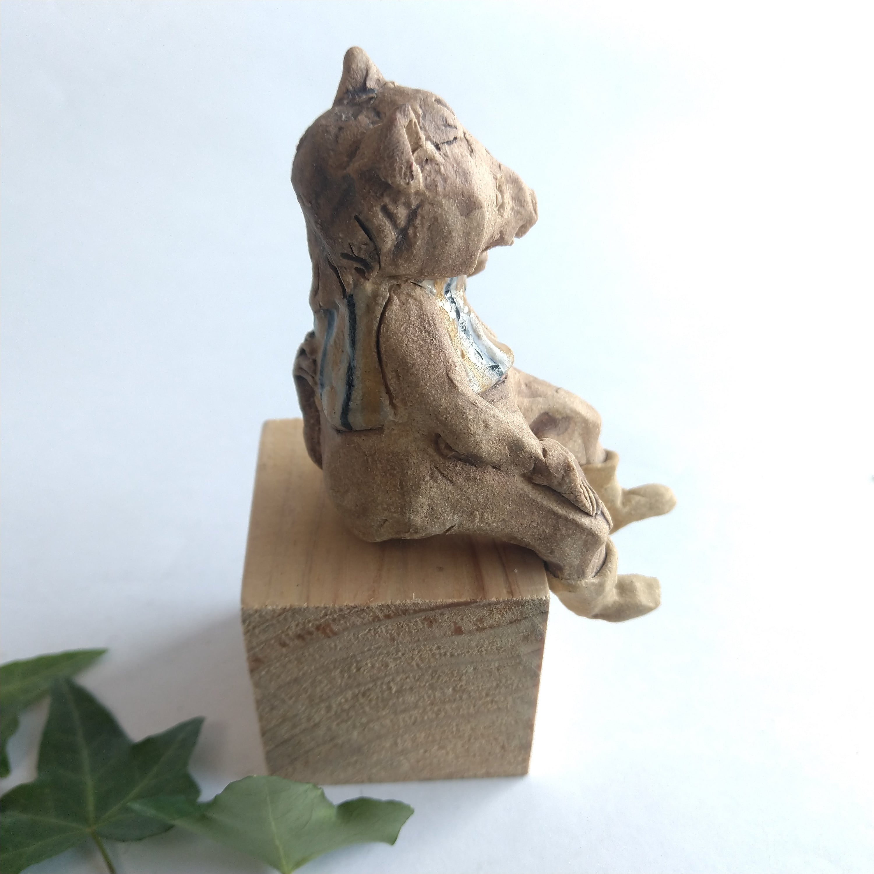 衣装の一部分には薄く透明釉を施しているので、その部分は少し光沢があります。