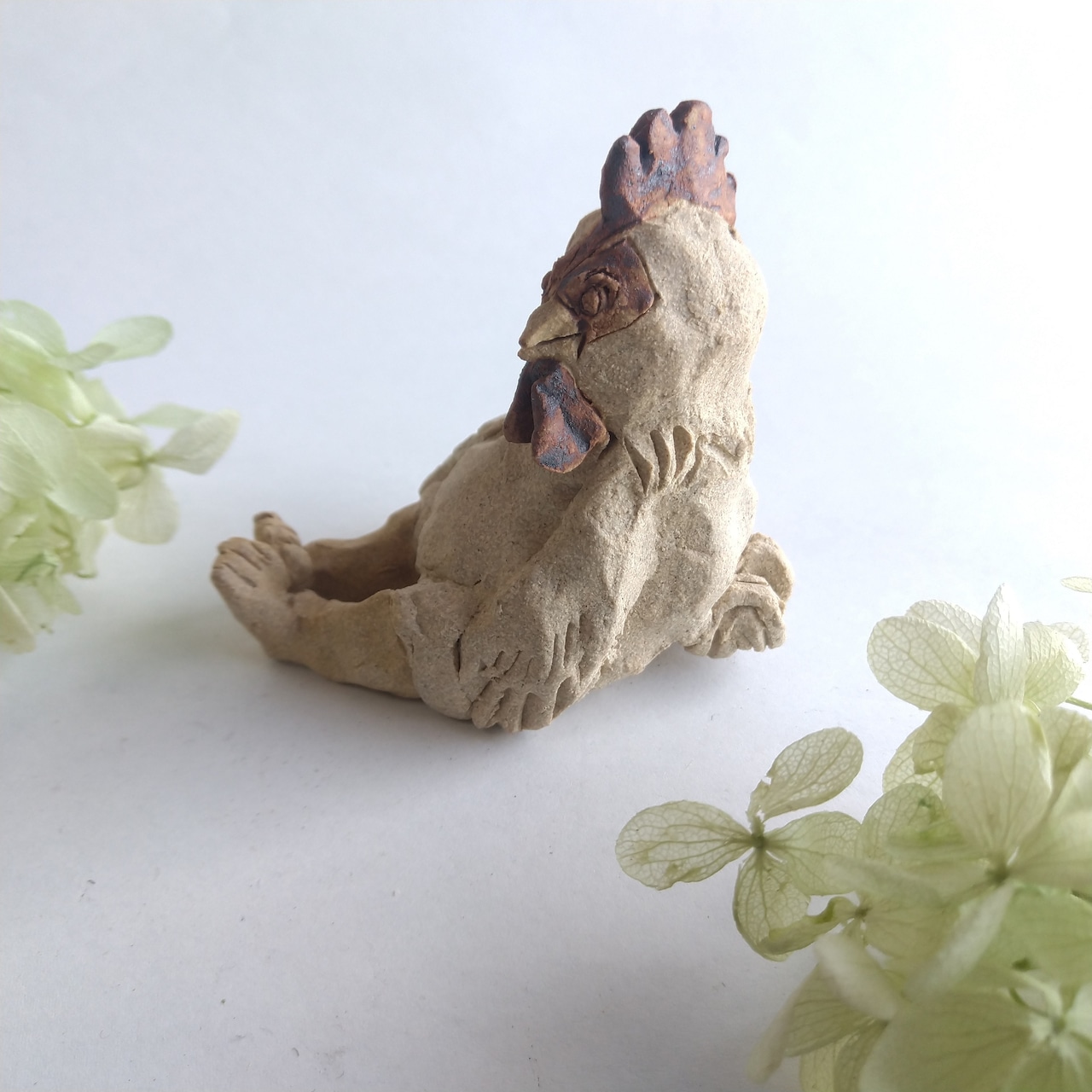 ひとりずつ手びねりで制作している陶人形で、素材は陶土を使用しています。