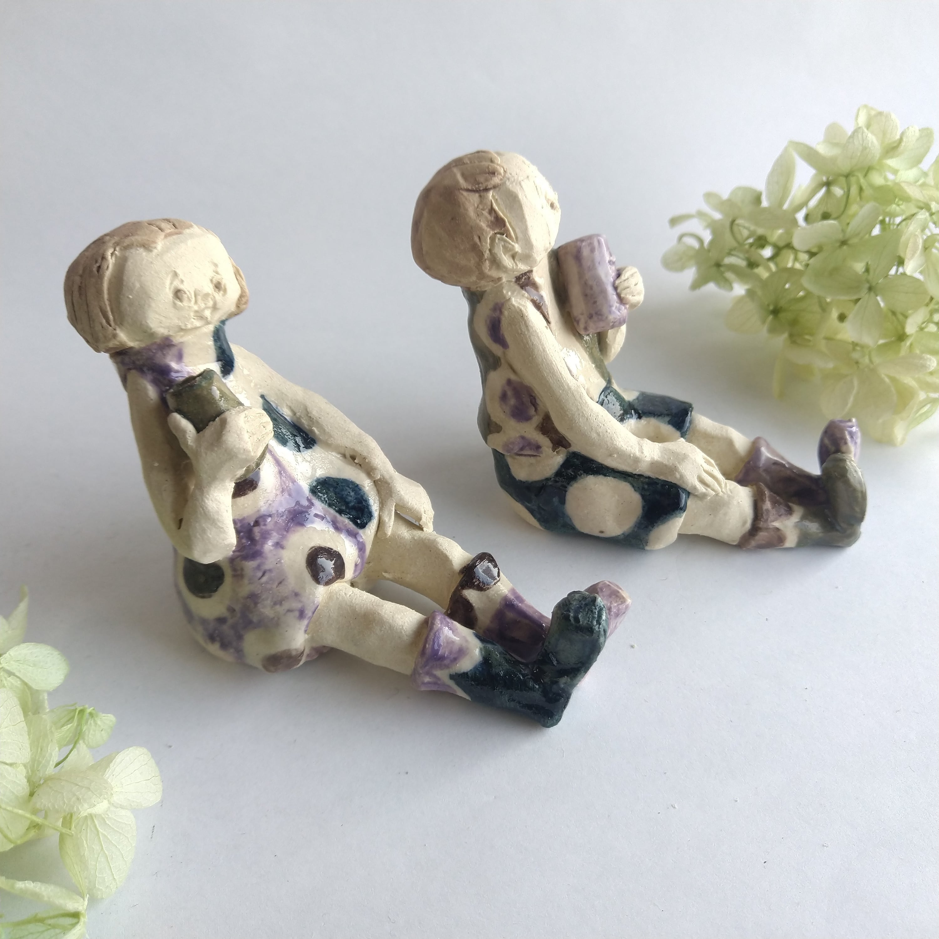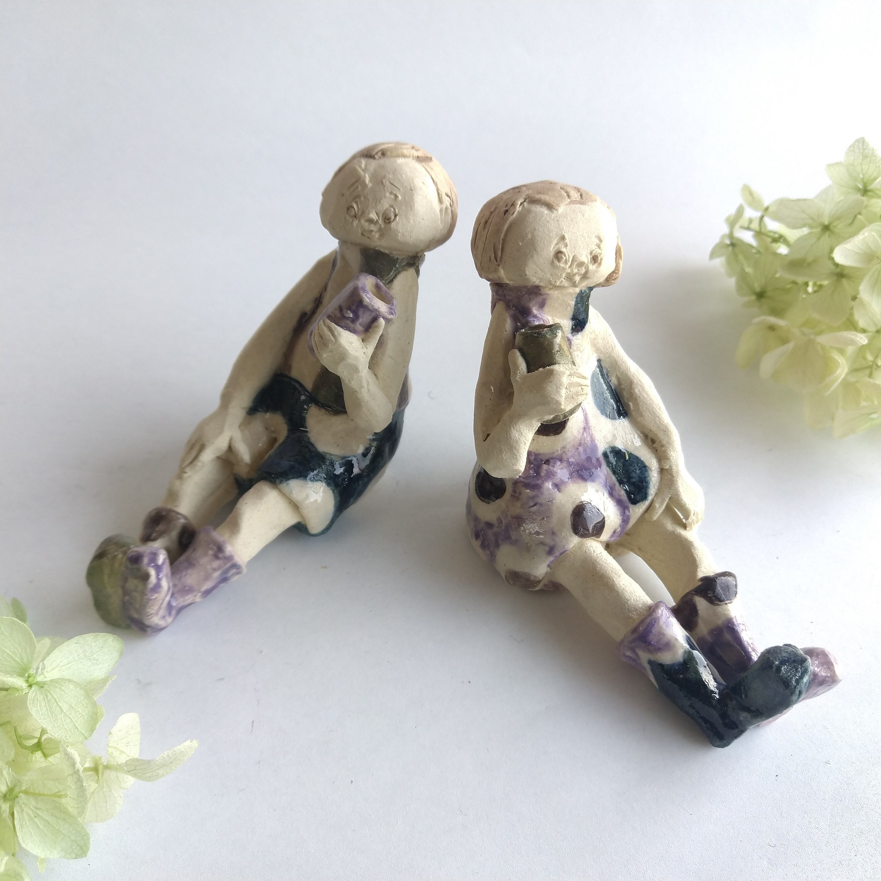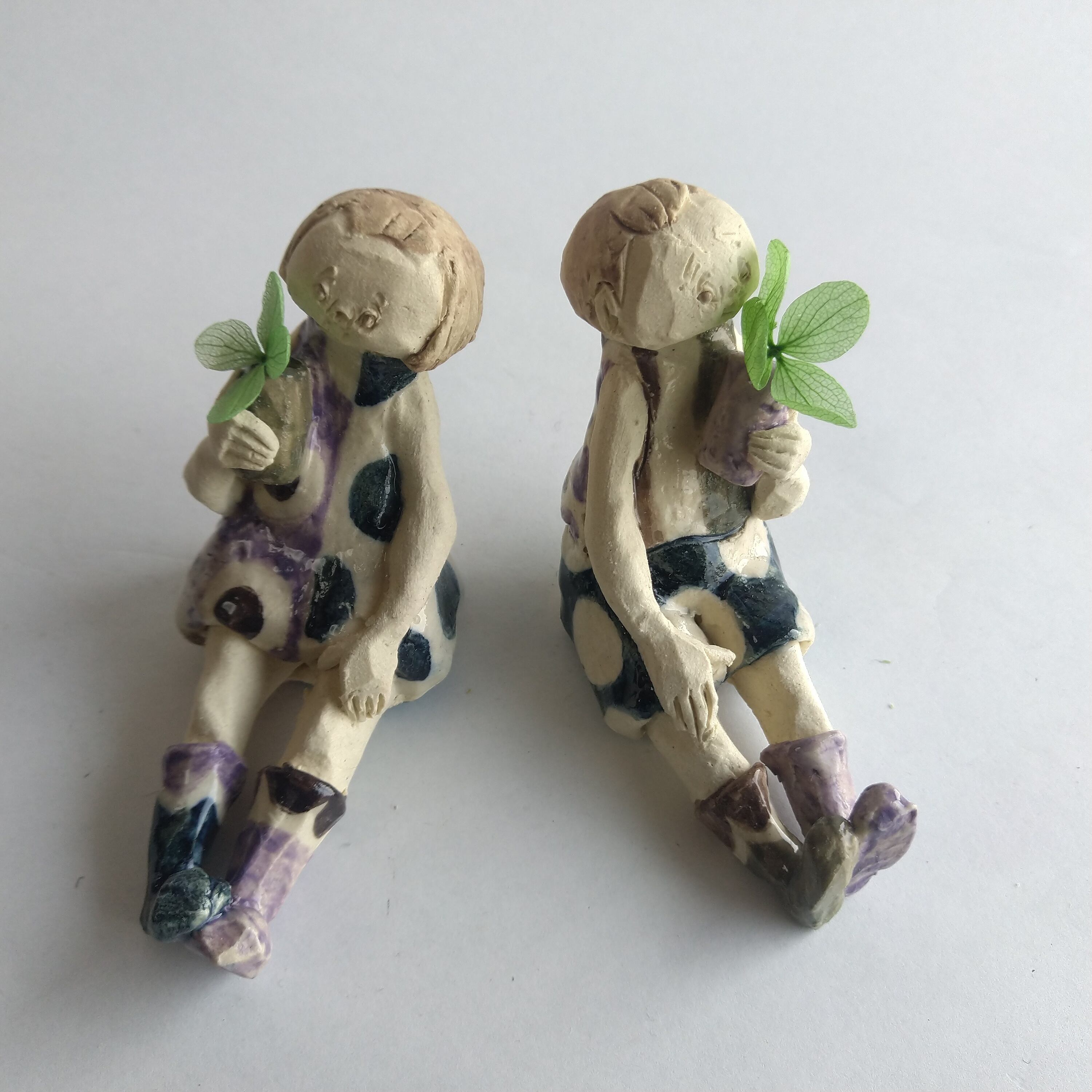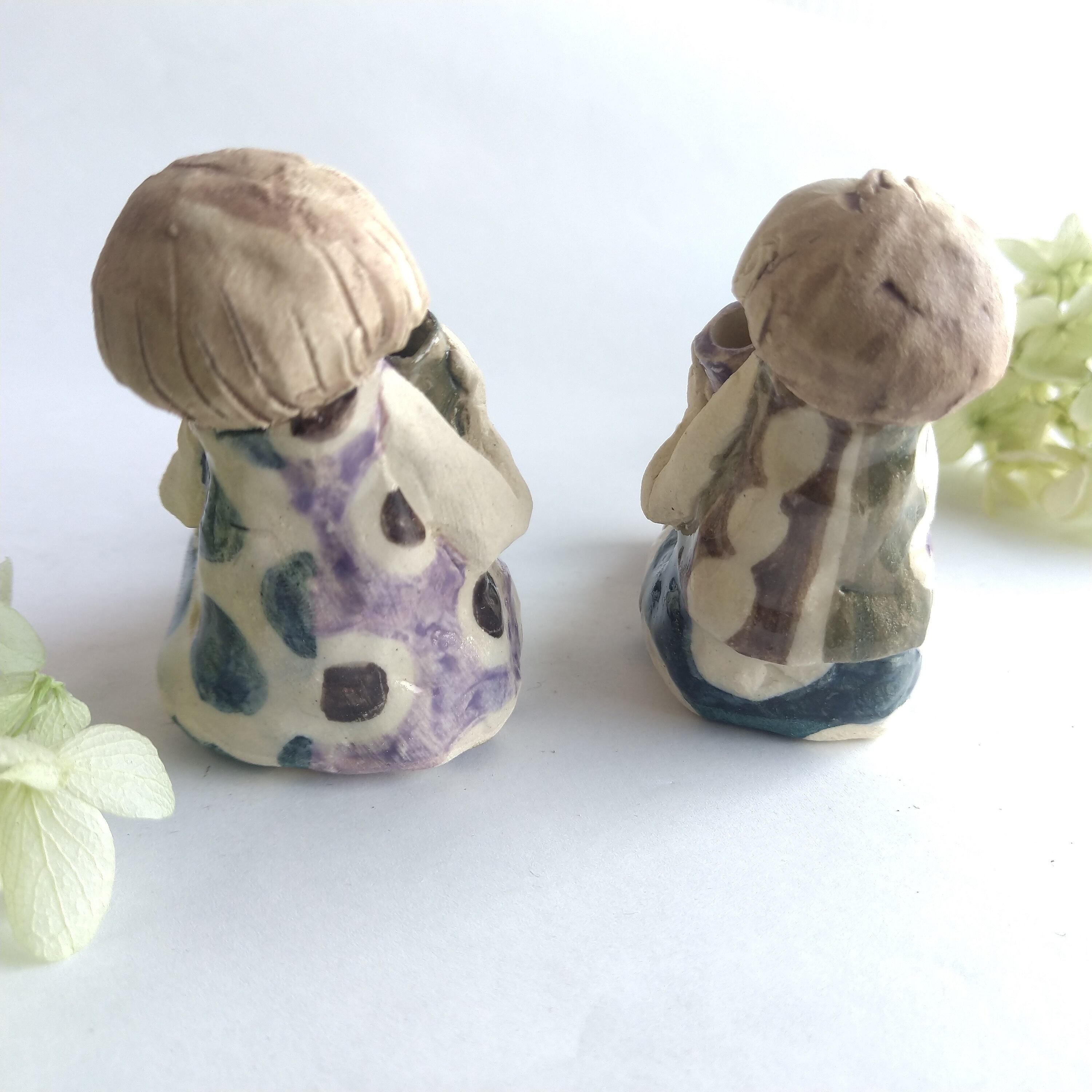 ひとりずつ手作りしている、てびねりの器と陶人形で、素材は陶土を使用しています。