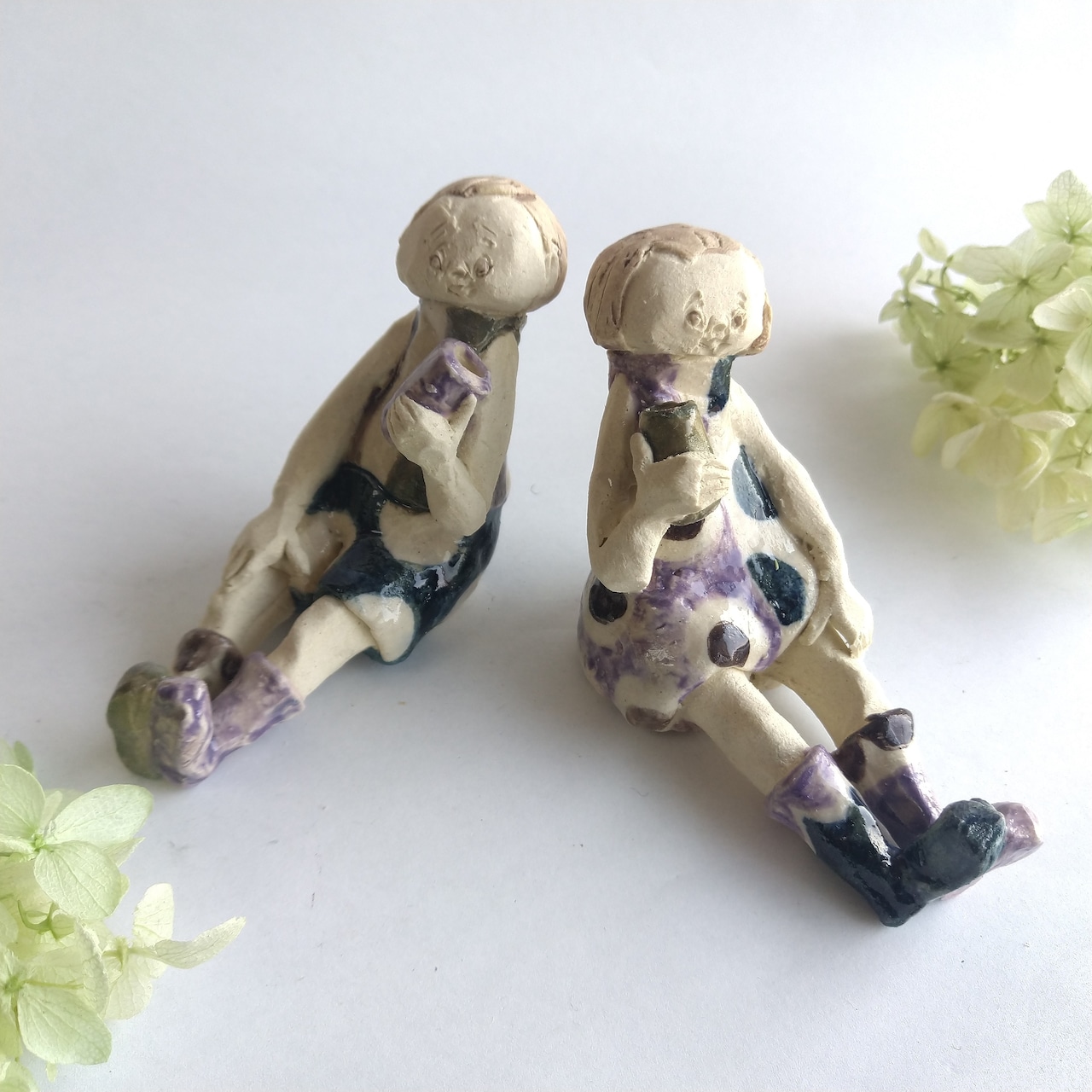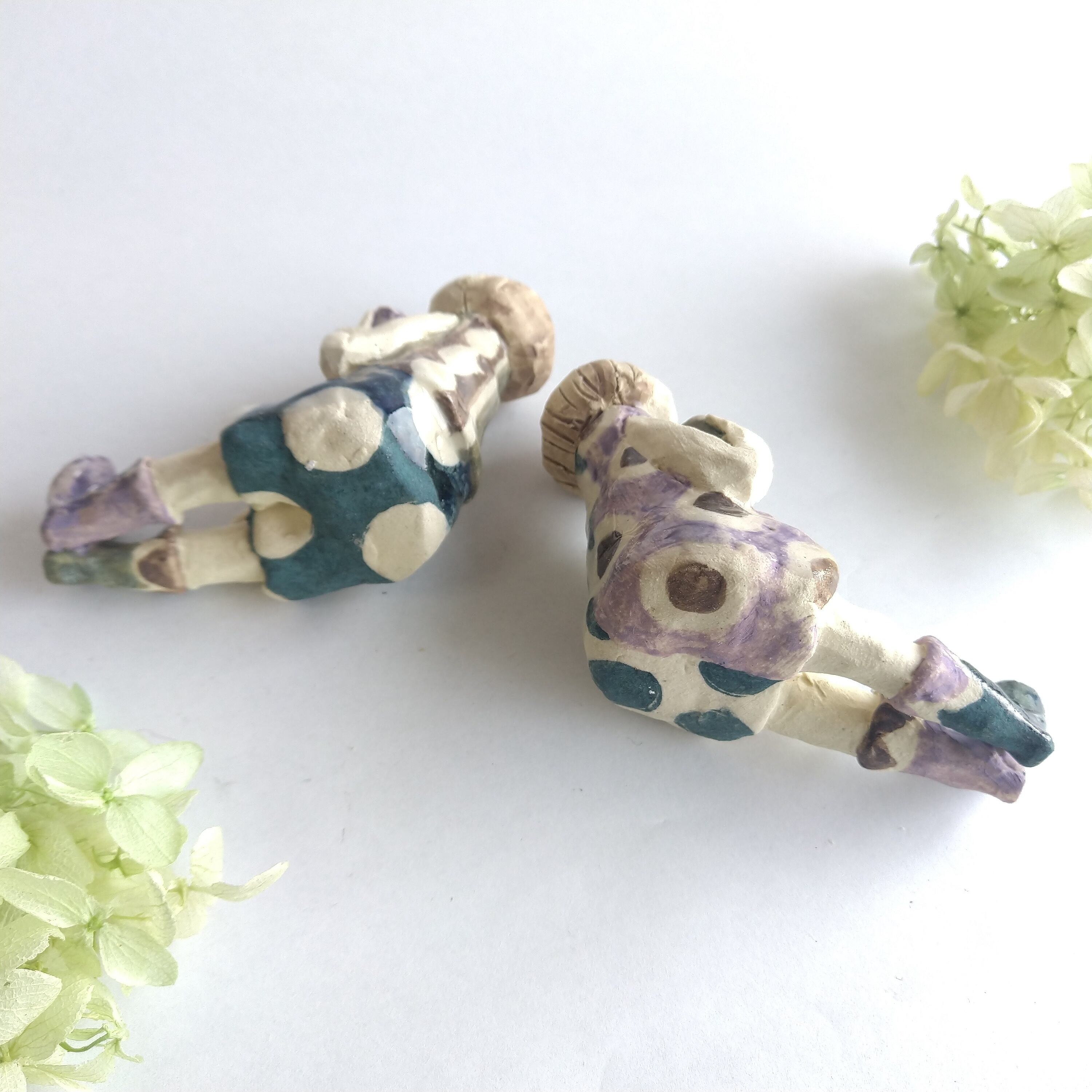 ポップな水玉模様(polka-dot)の衣装のペアの陶人形です。