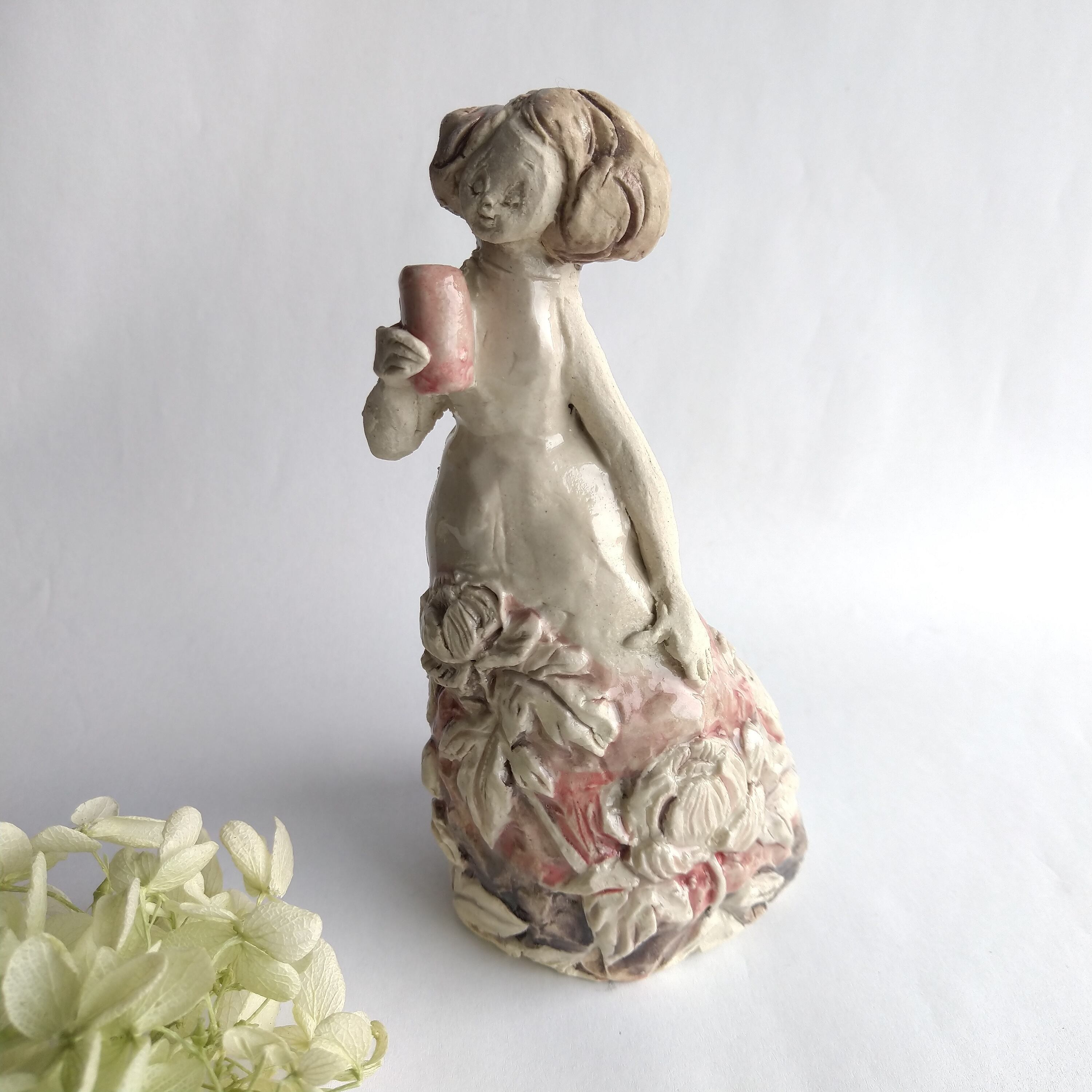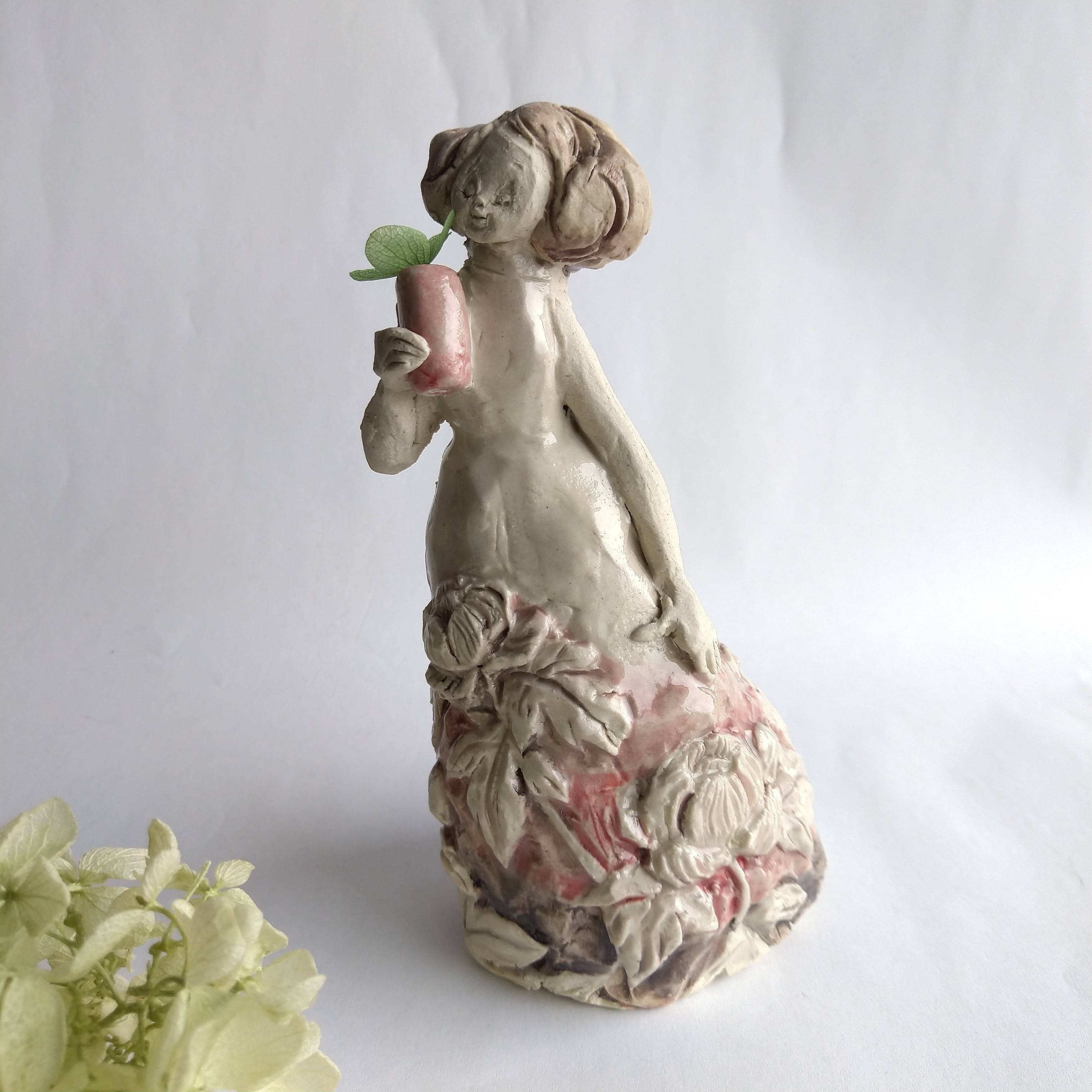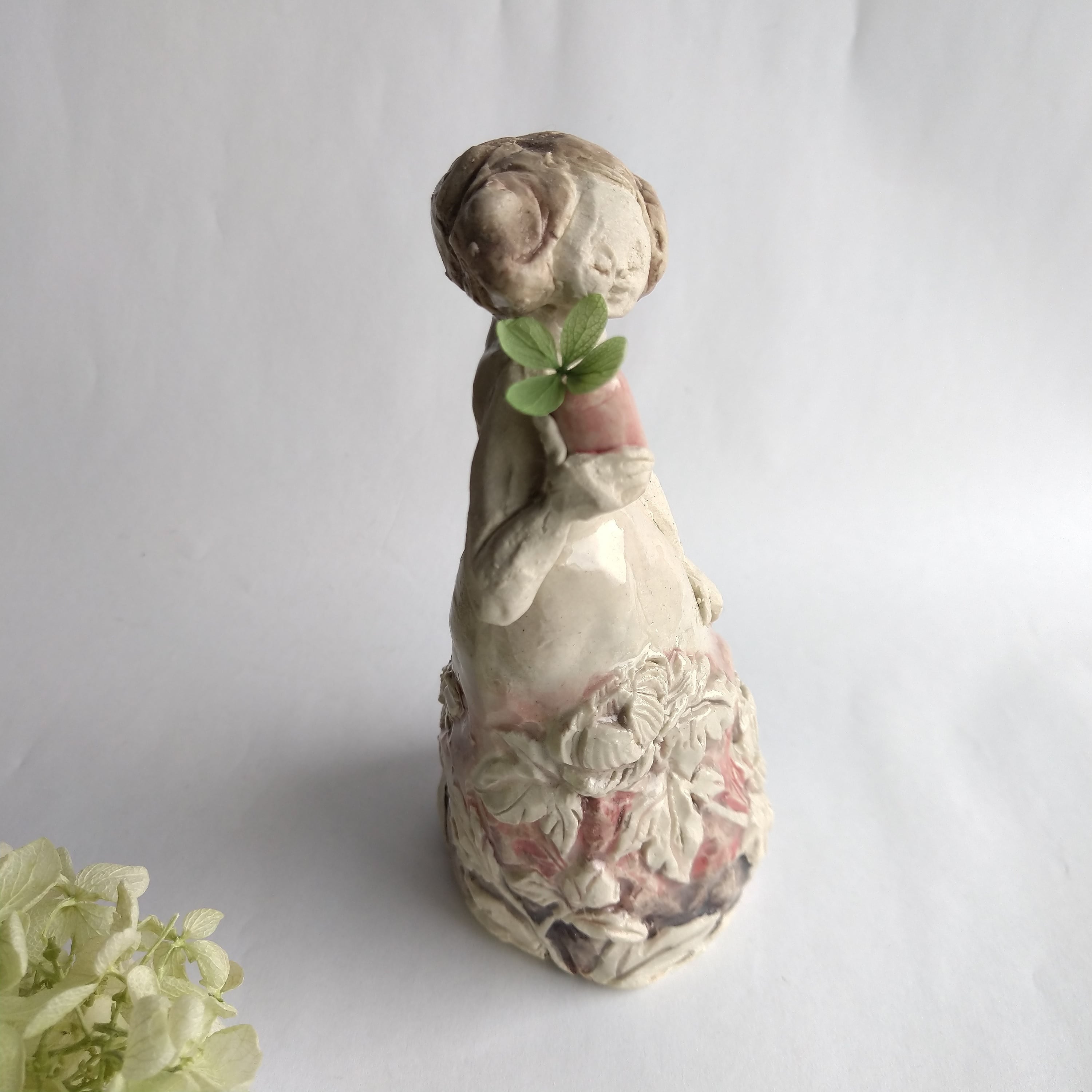 手に持っている小さな筒には、お好みで小さなドライフラワーやお香などを飾ることができます。