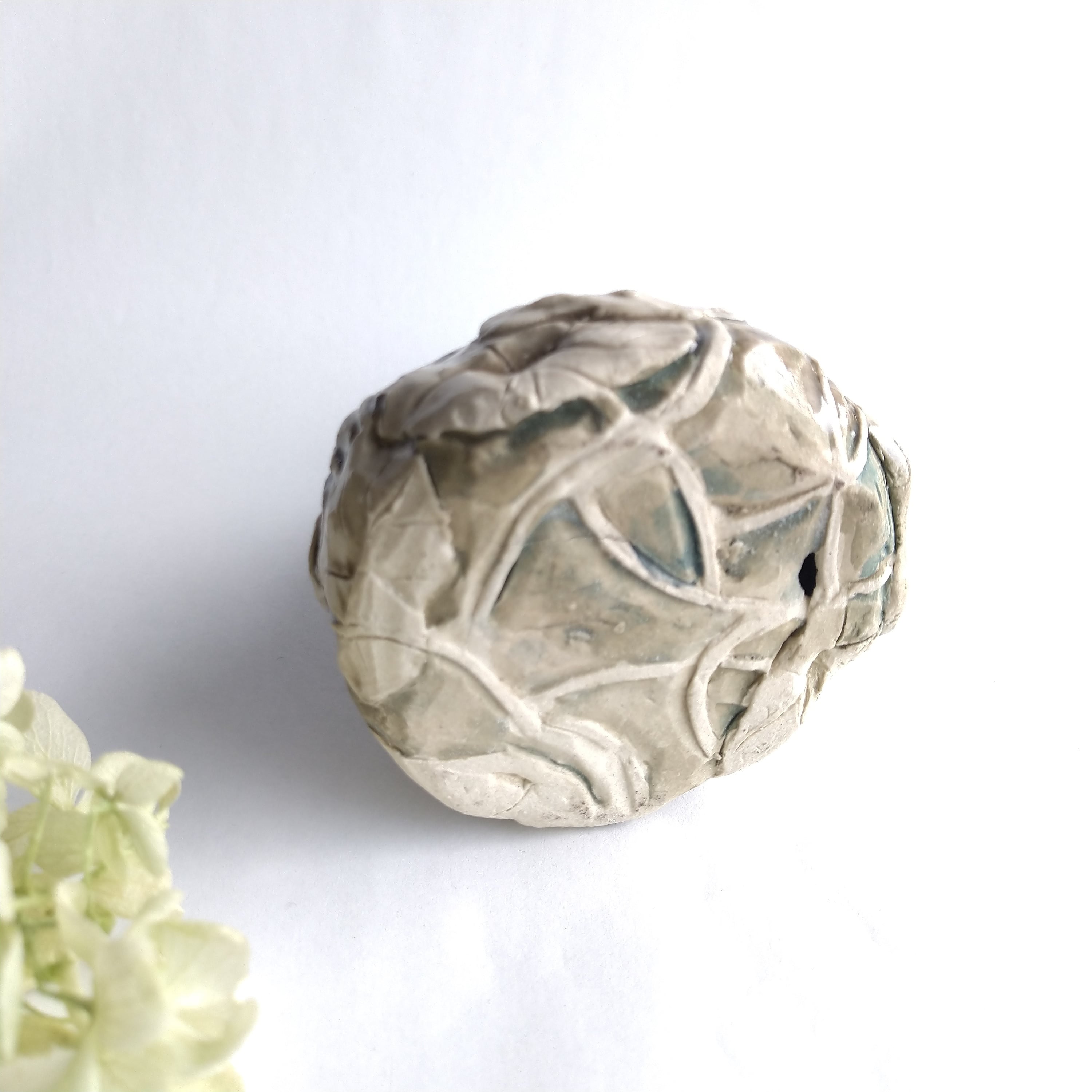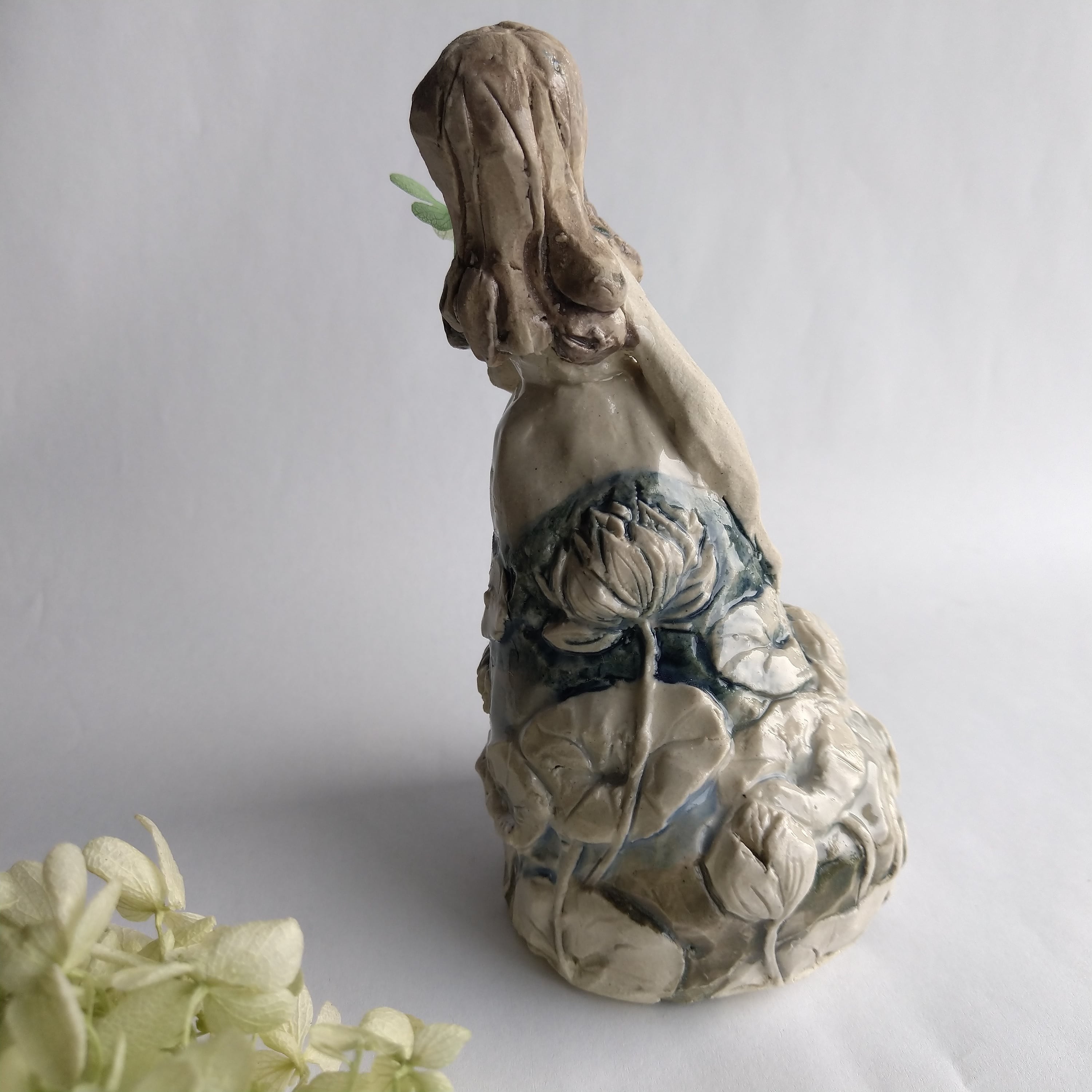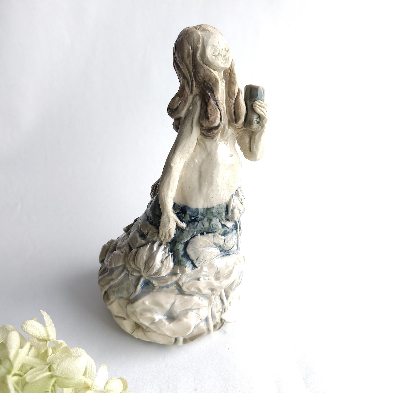 手に持っている小さな筒には、お好みで小さなドライフラワーやお香などを飾ることができます。