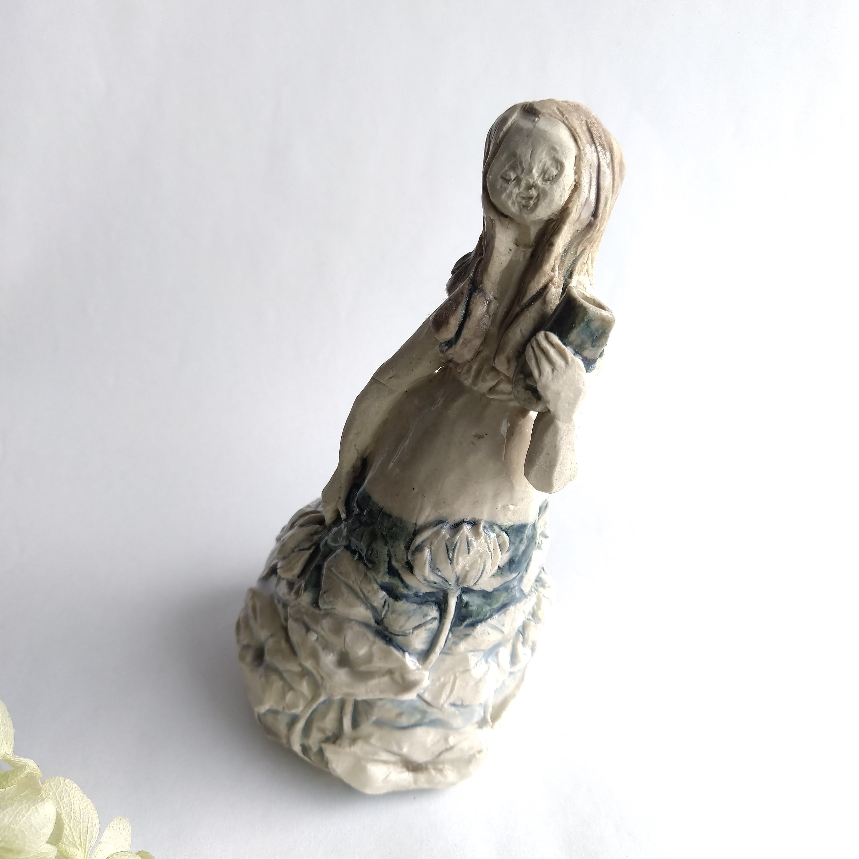 ひとりずつ手作りしている、てびねりの陶人形で、素材は陶土を使用しています。