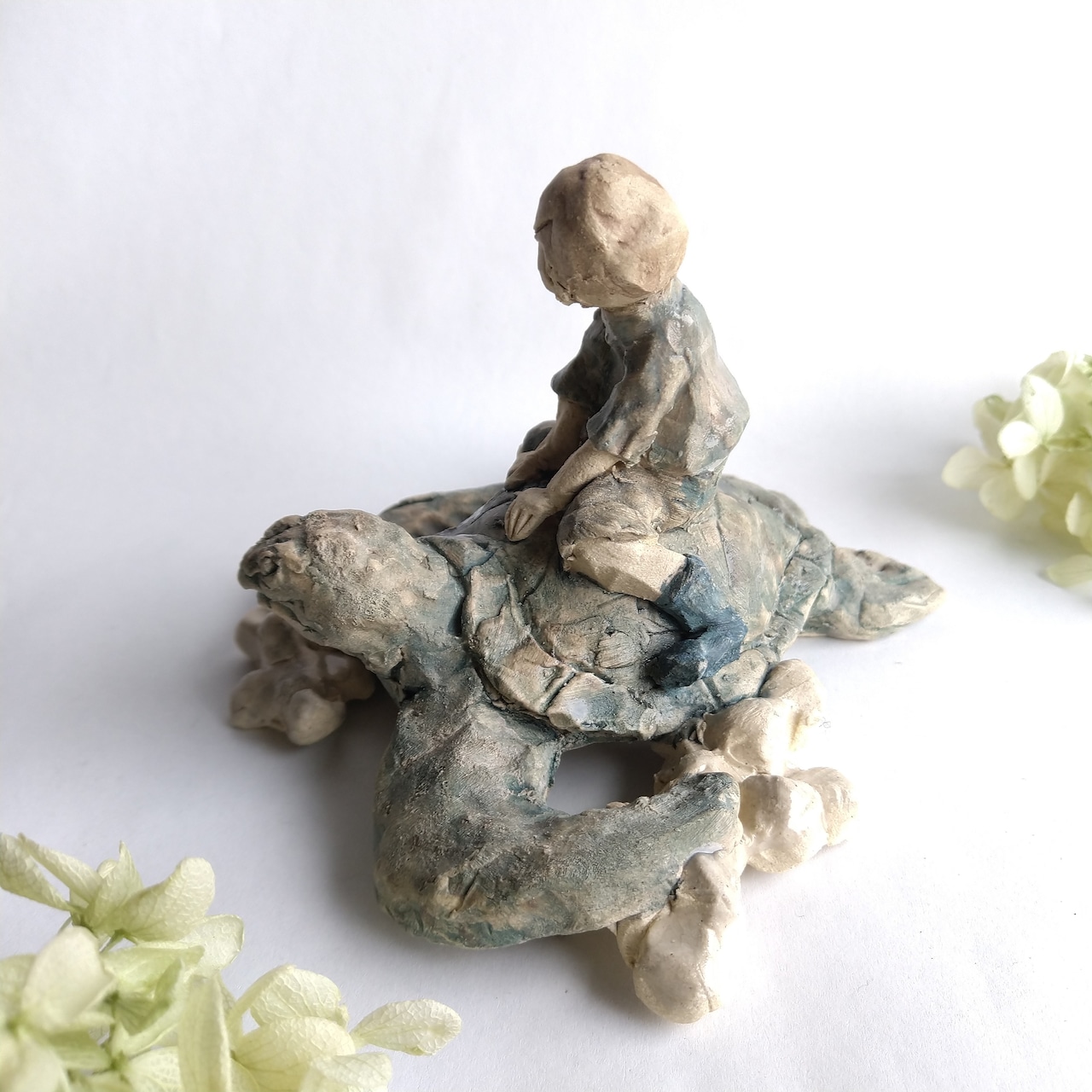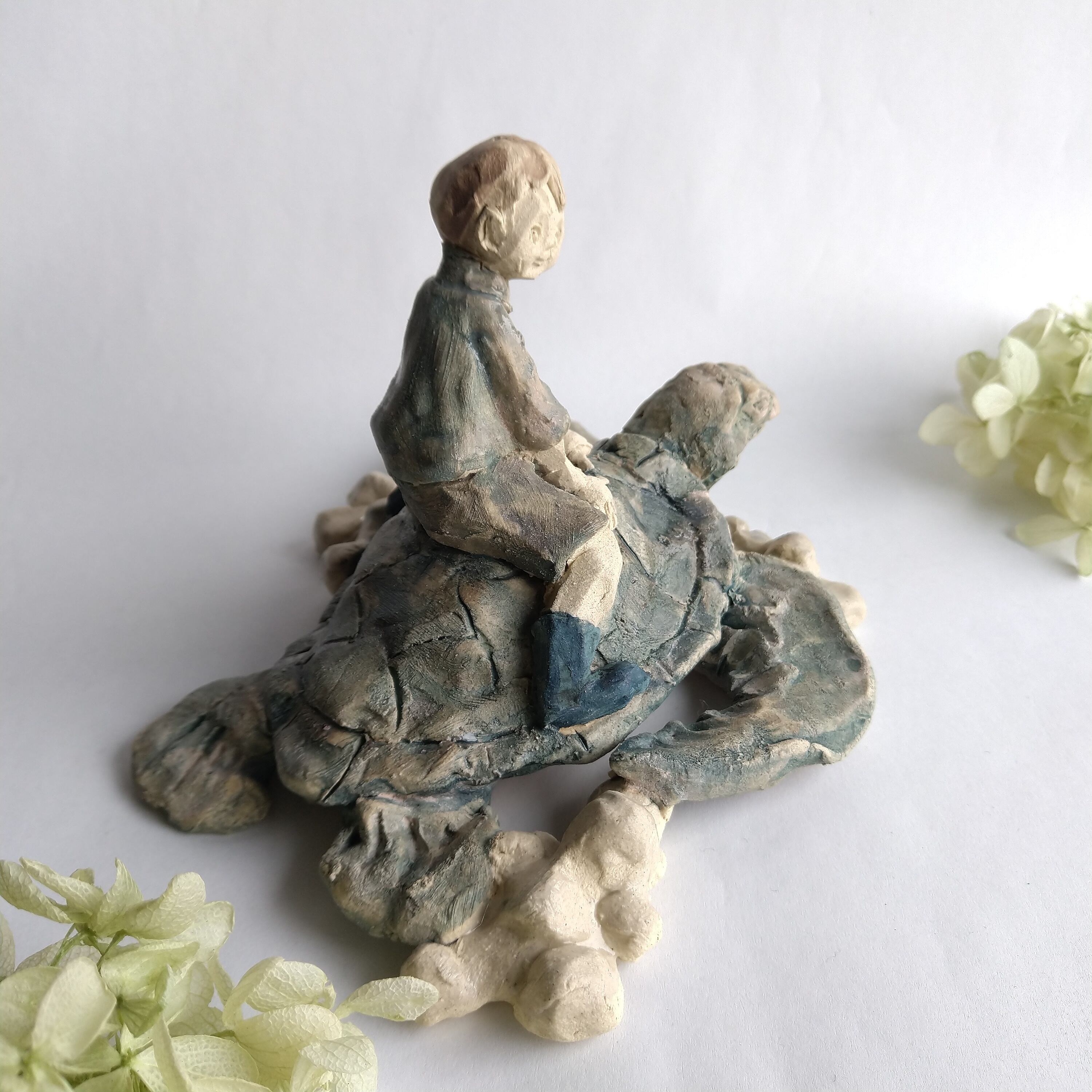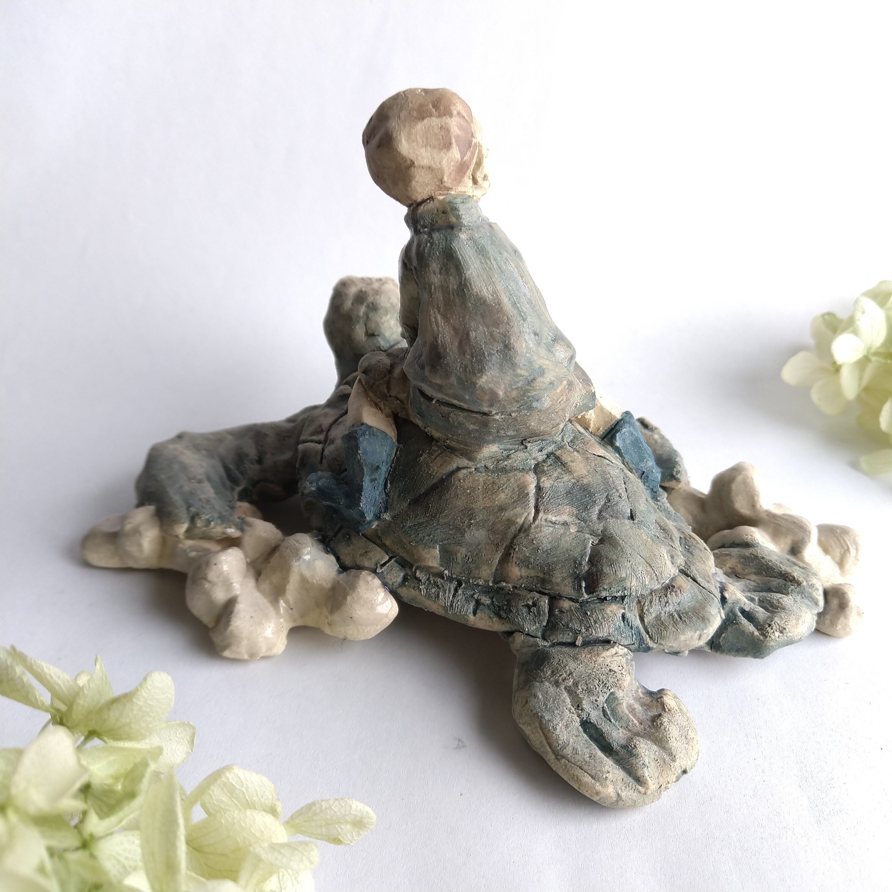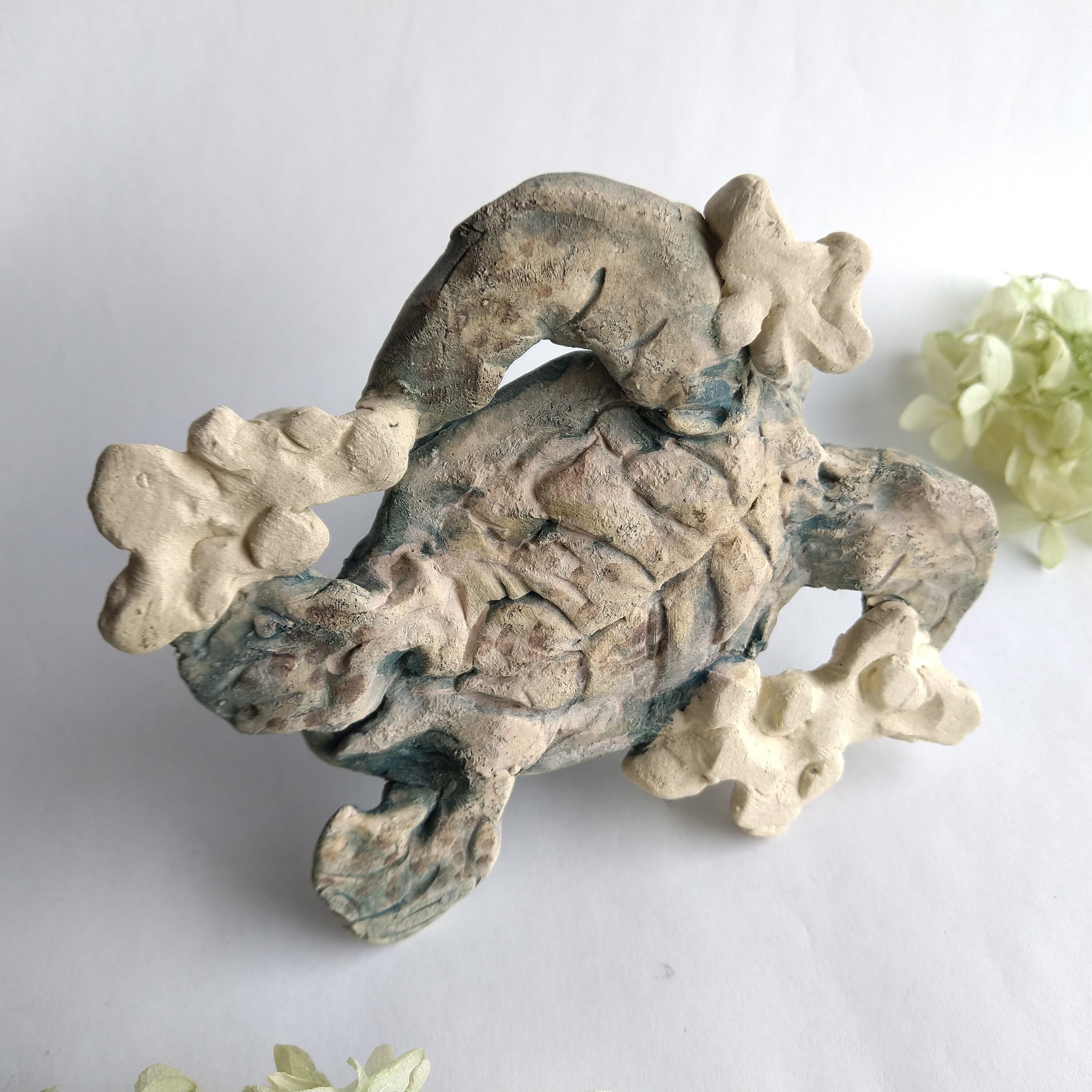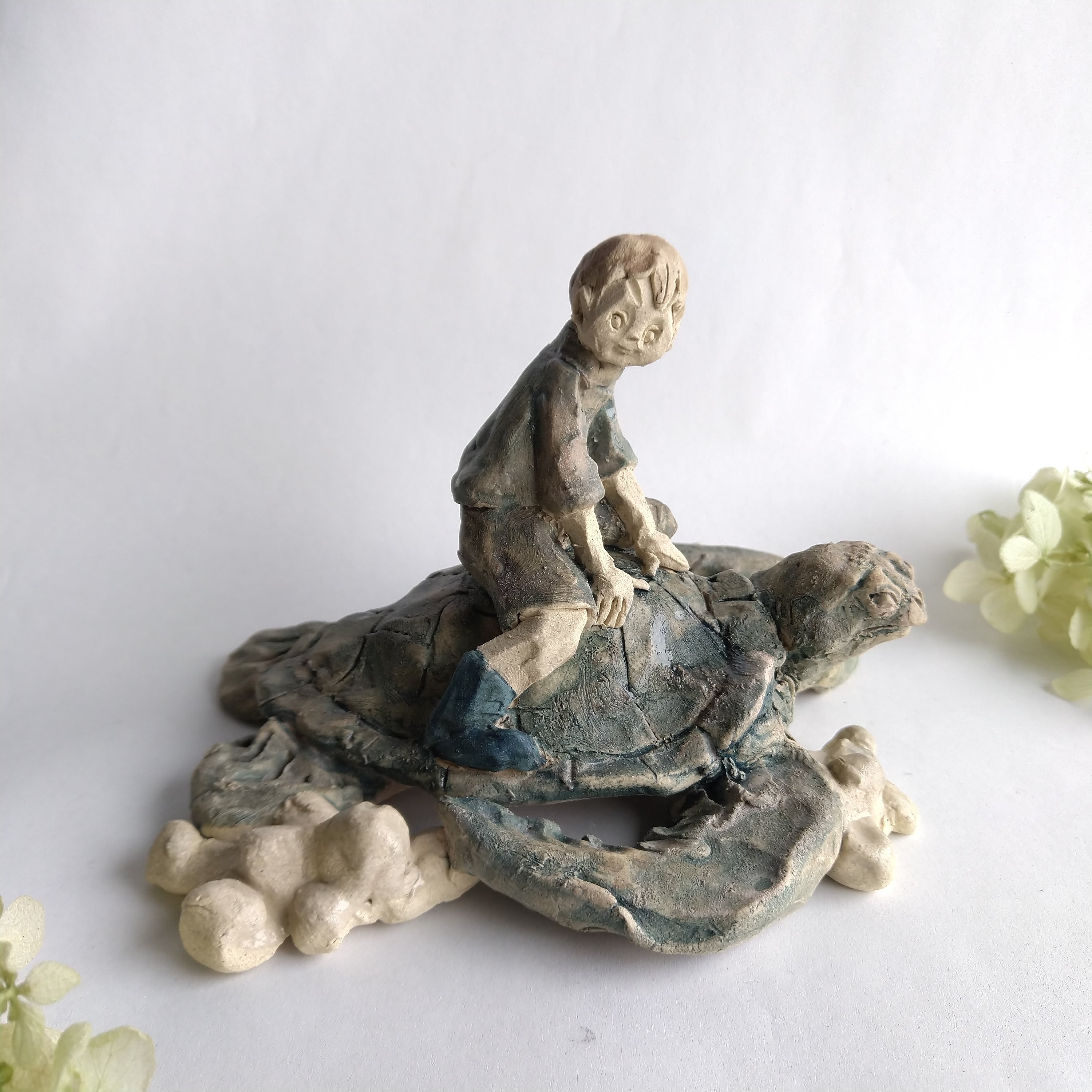 亀の甲羅、土台の一部には薄く透明釉を施しているので、その部分は少し光沢があります。
