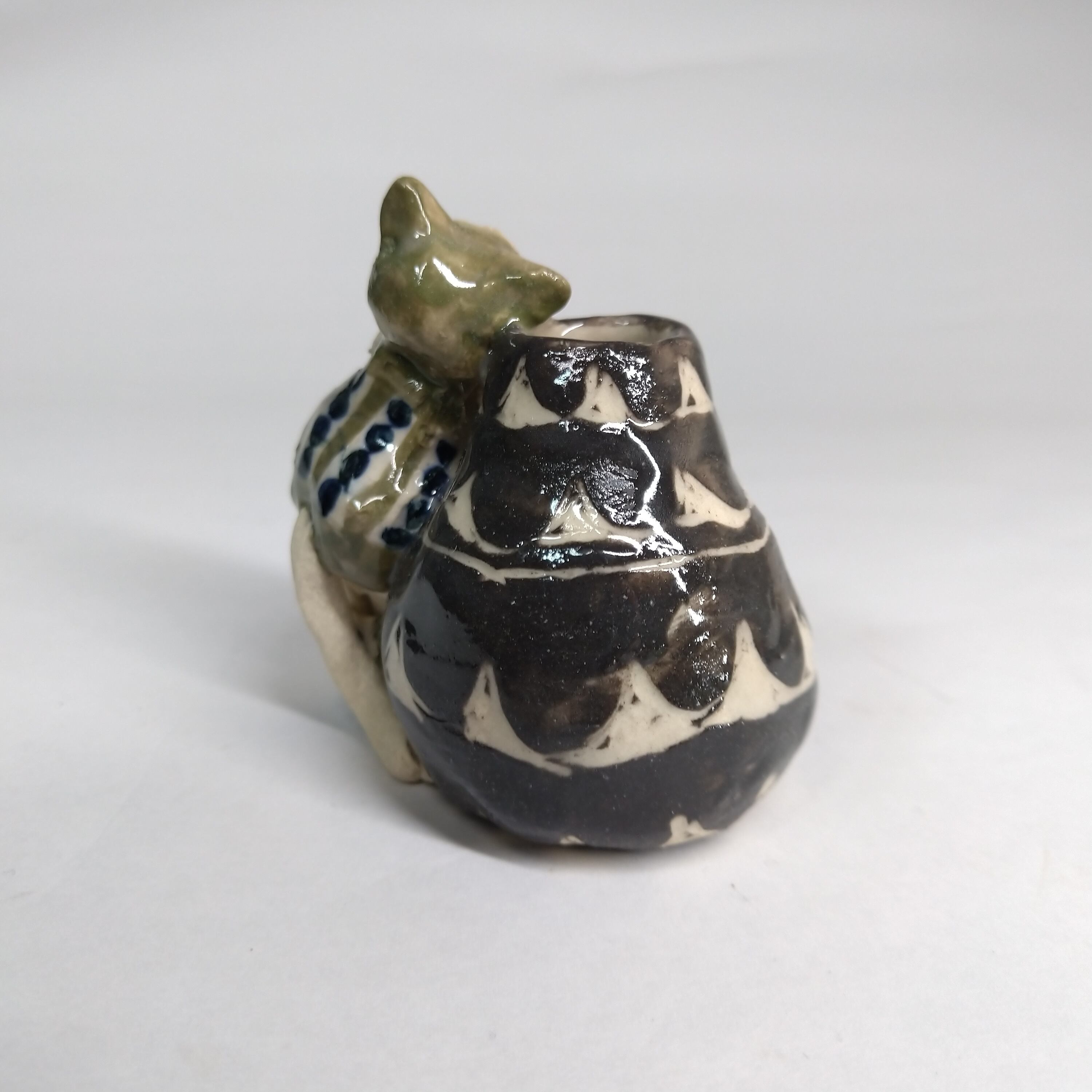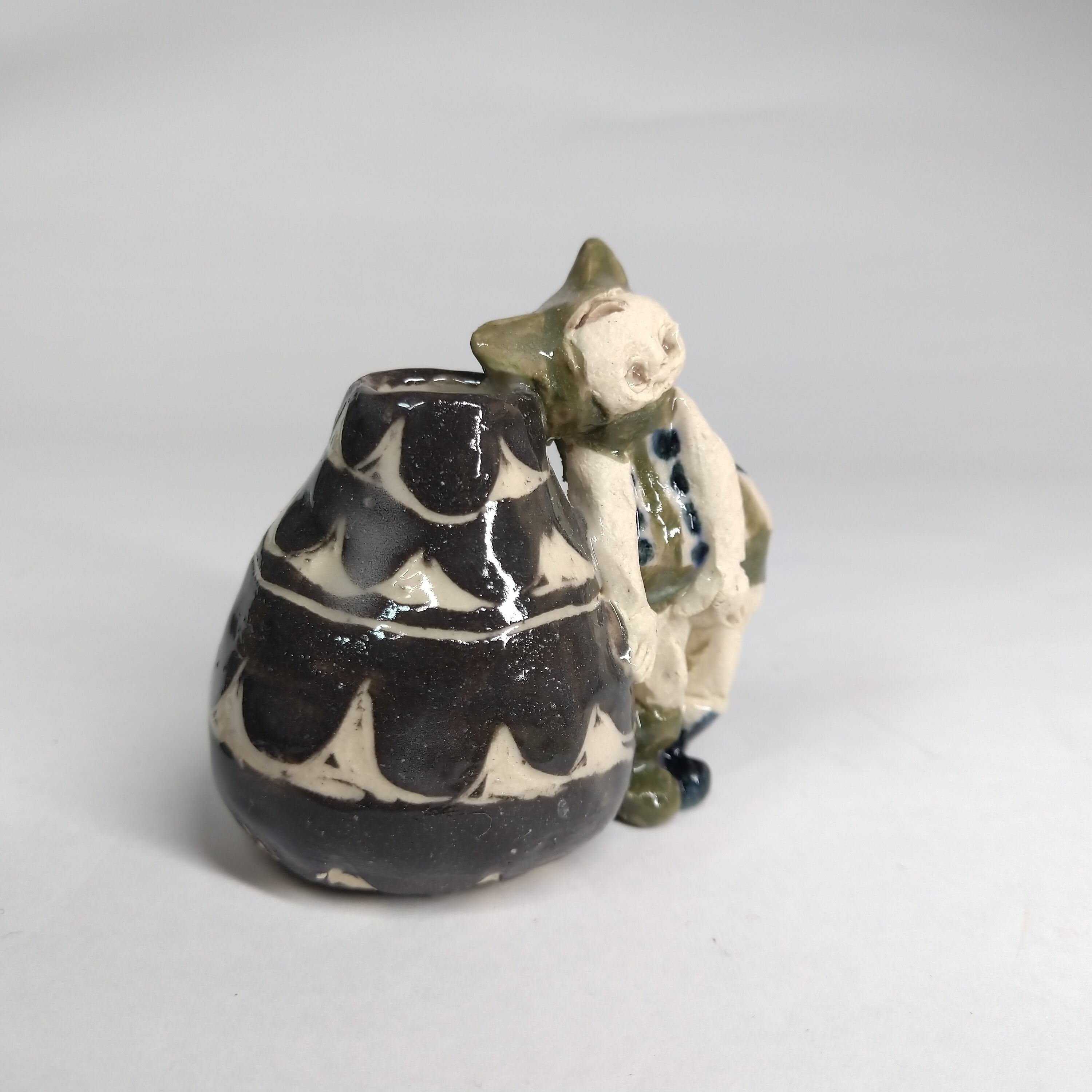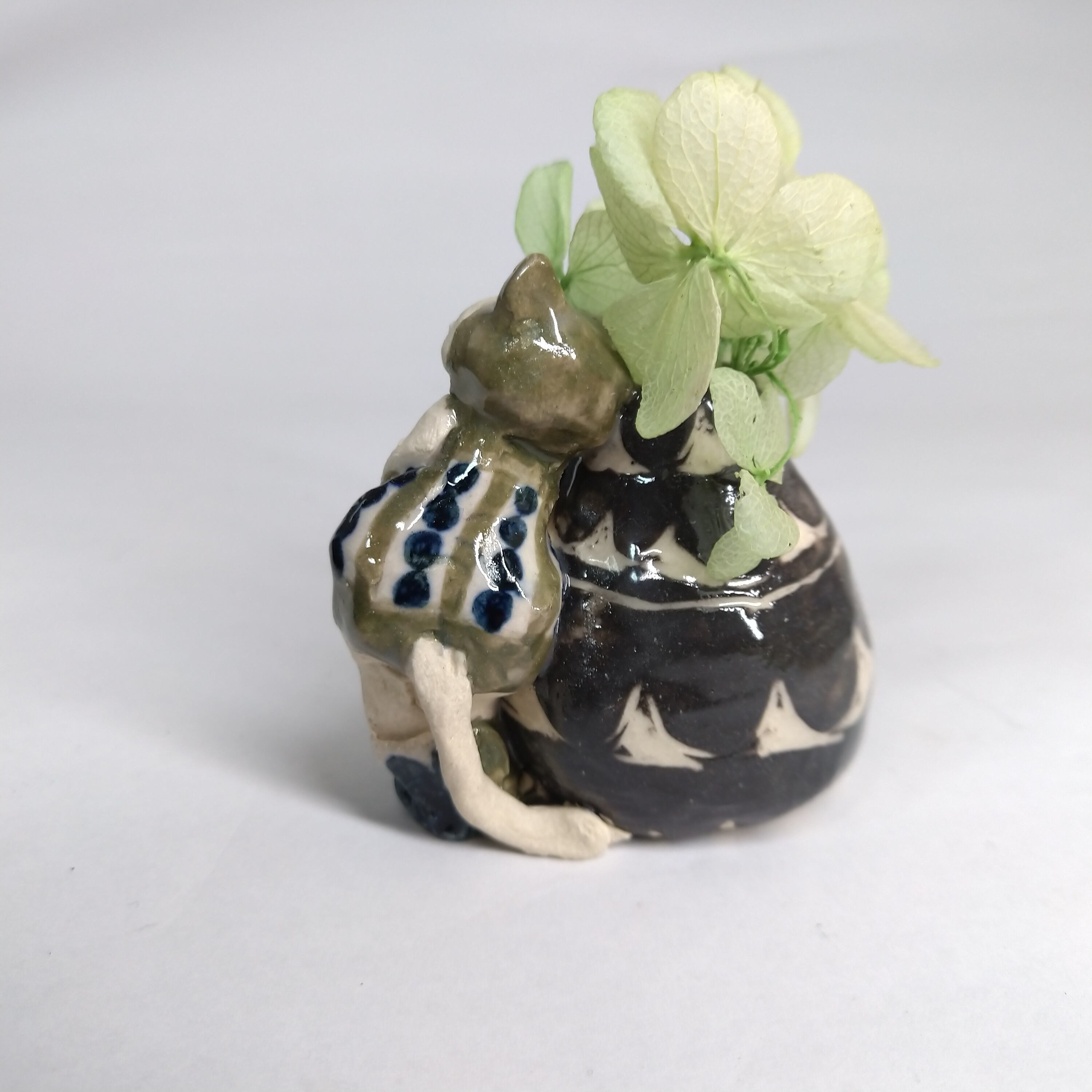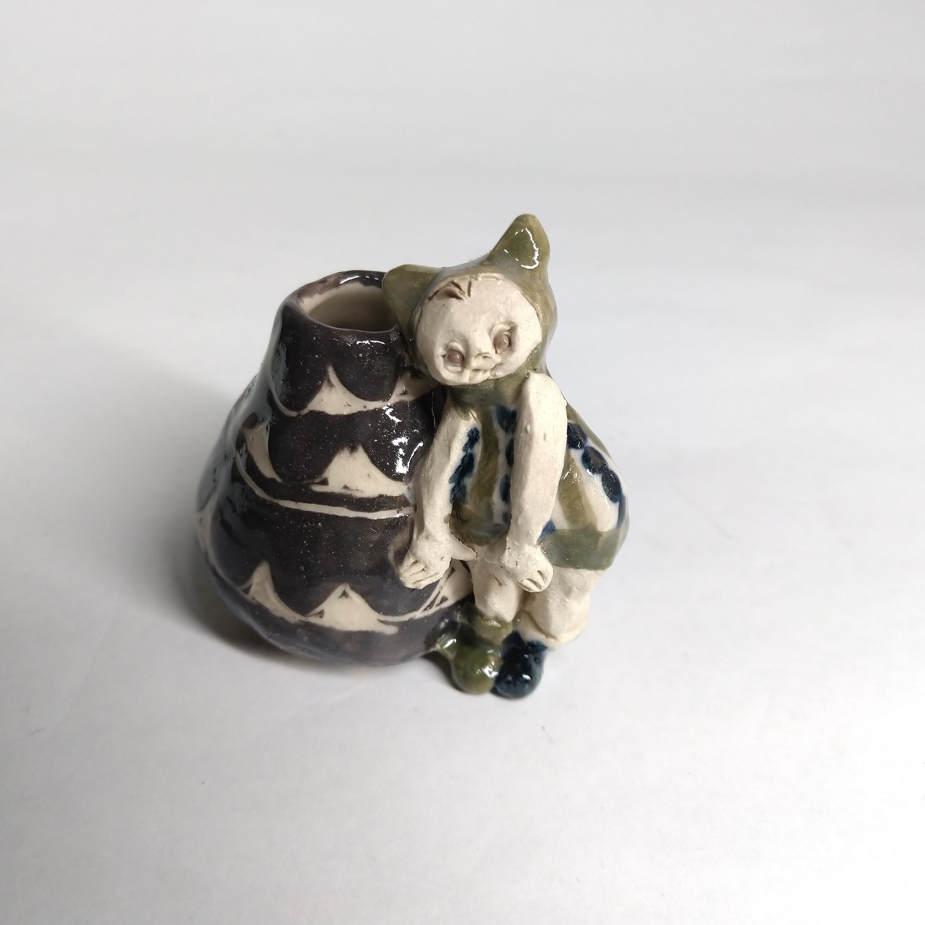 小さな花器と、妖精のようなちびっこ陶人形とを組み合わせてみました。