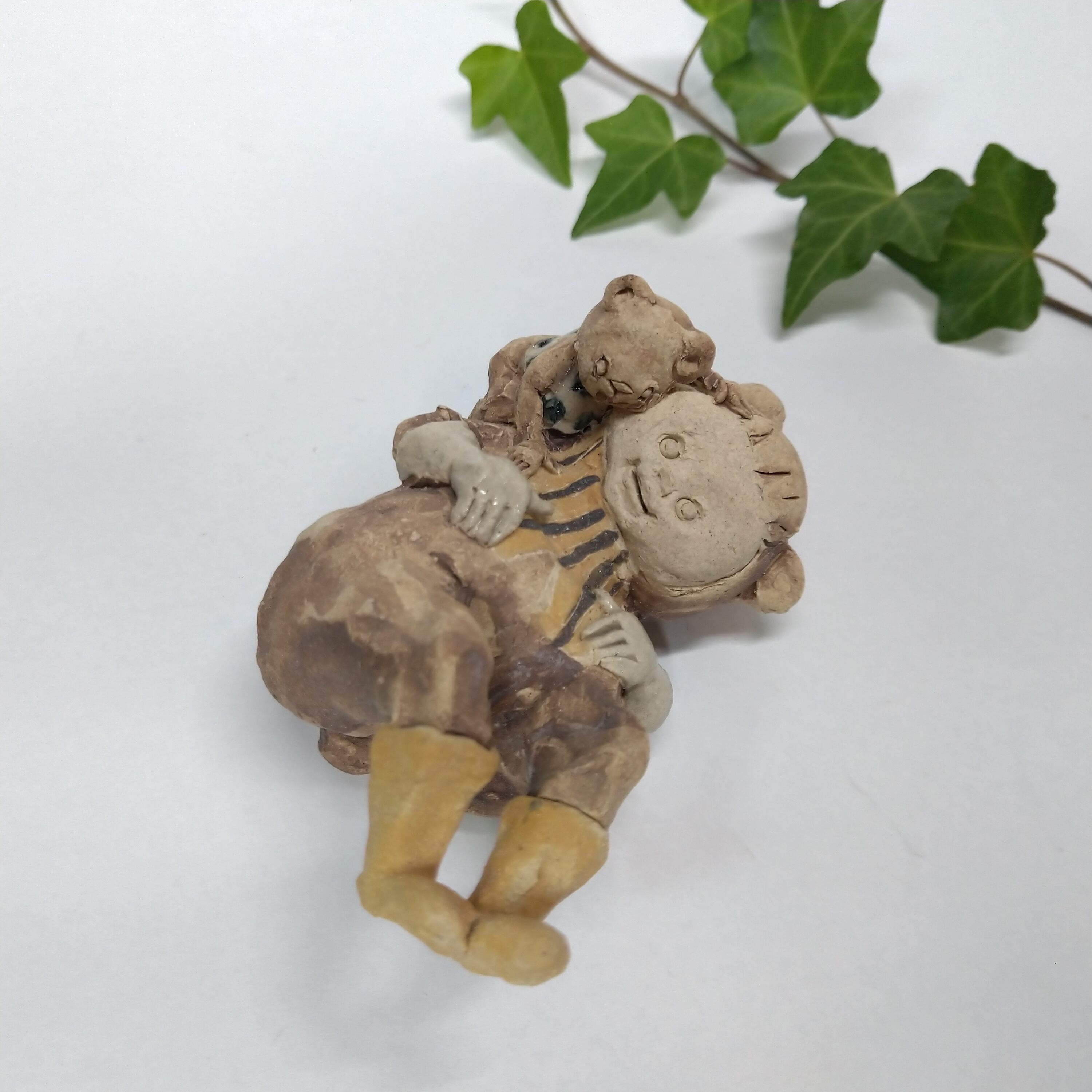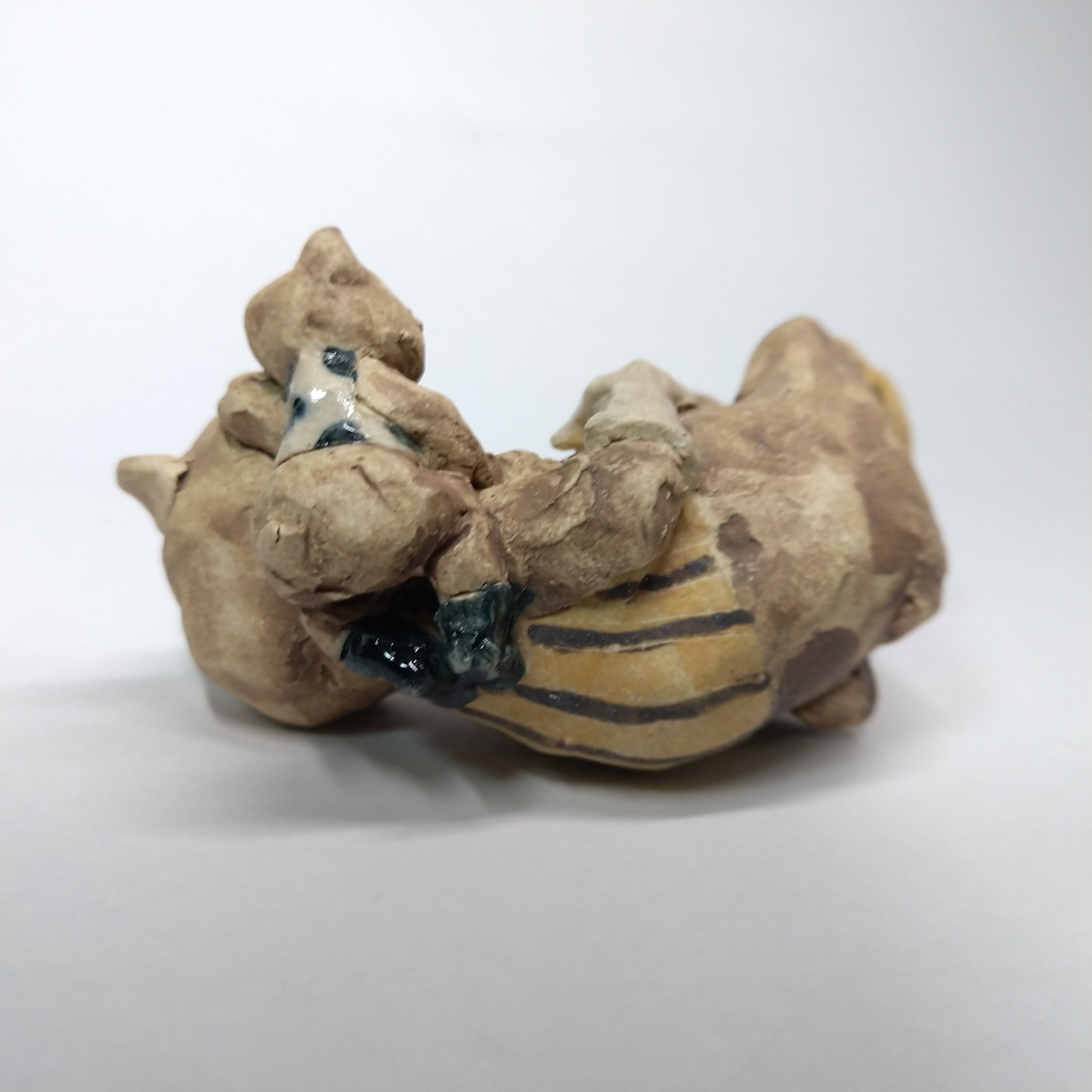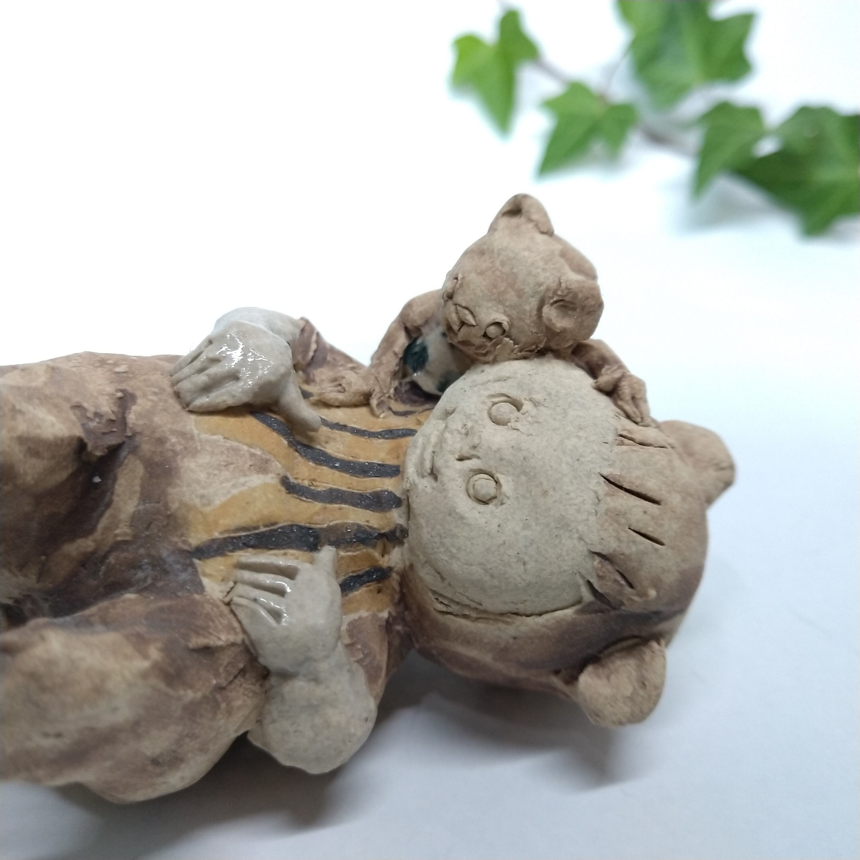 くまの衣装の一部分には薄く透明釉を施しているので、その部分は少し光沢があります。