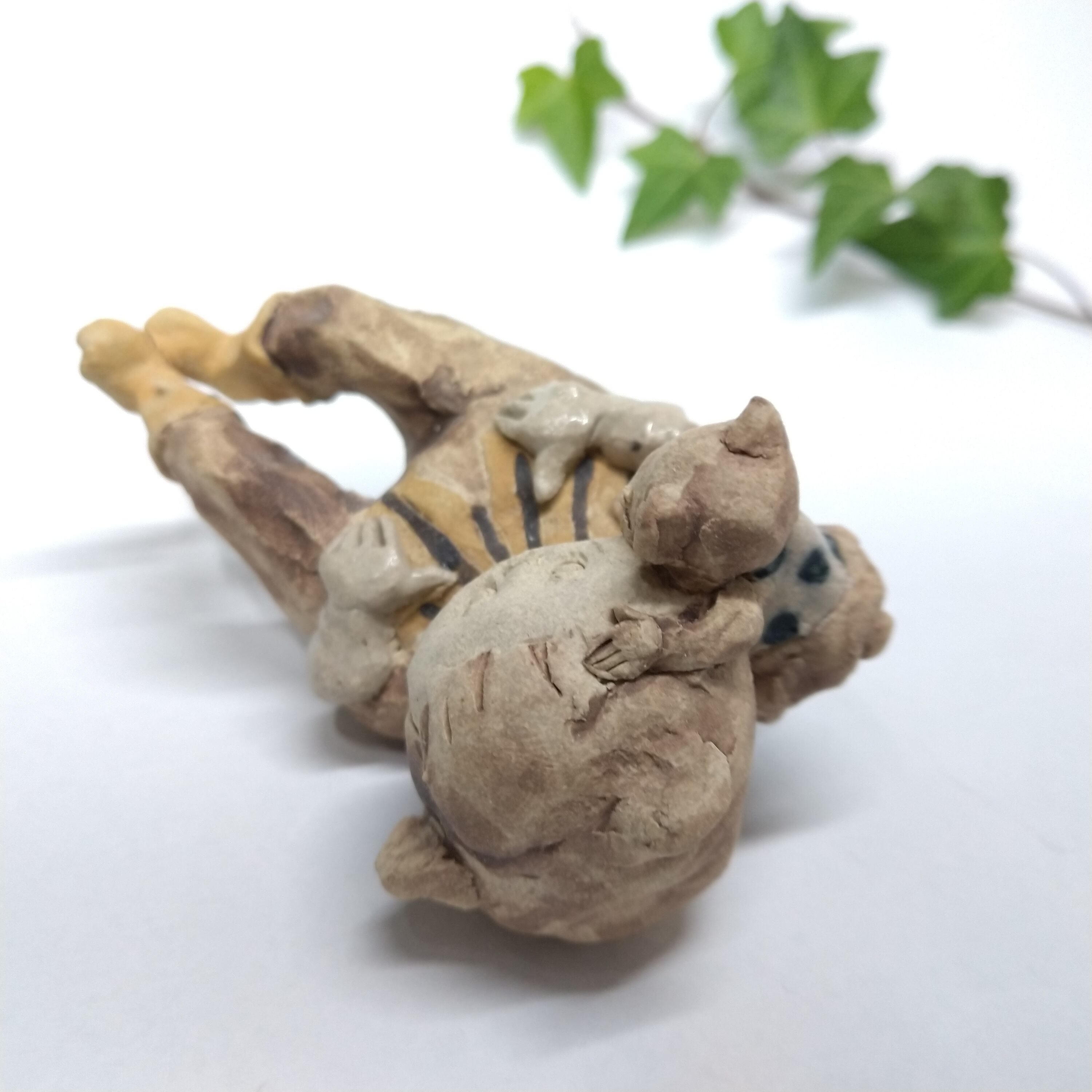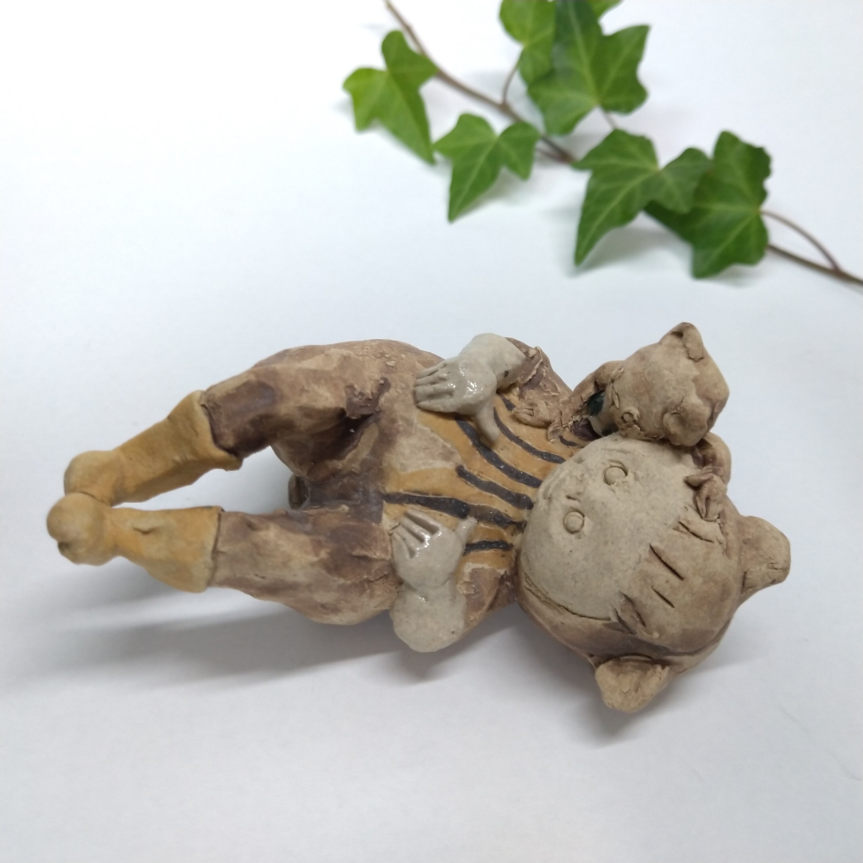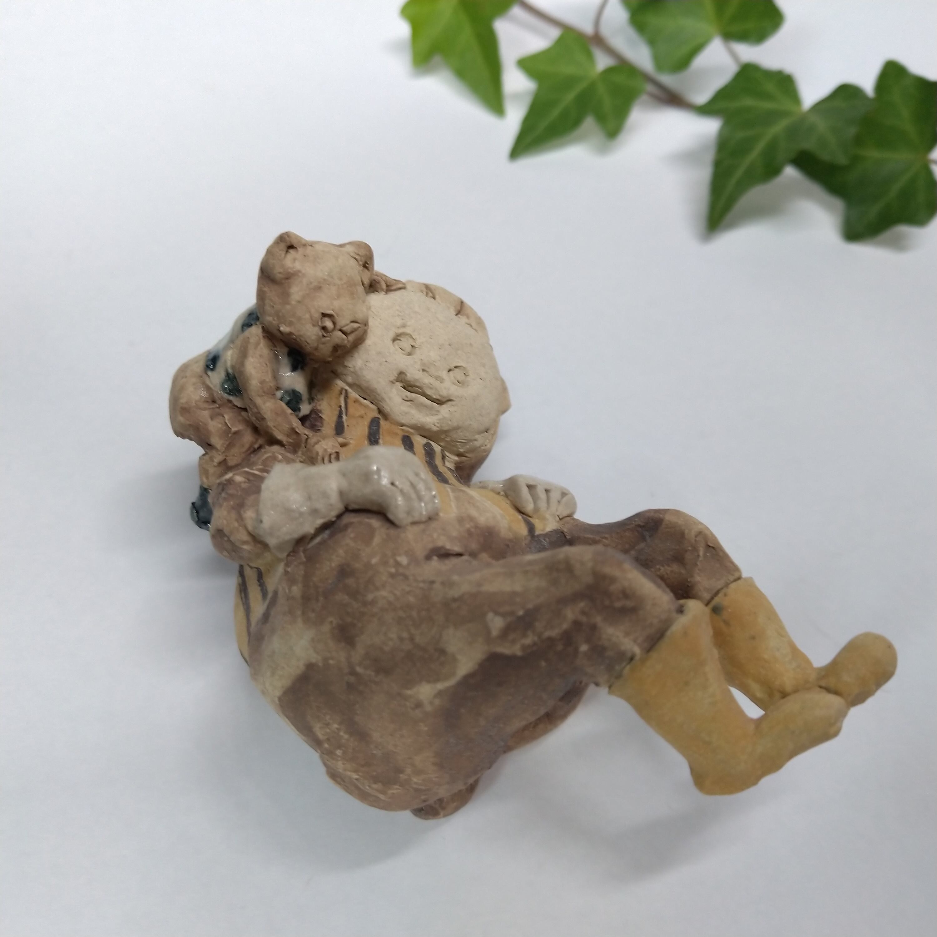 くまの衣装の一部分には薄く透明釉を施しているので、その部分は少し光沢があります。