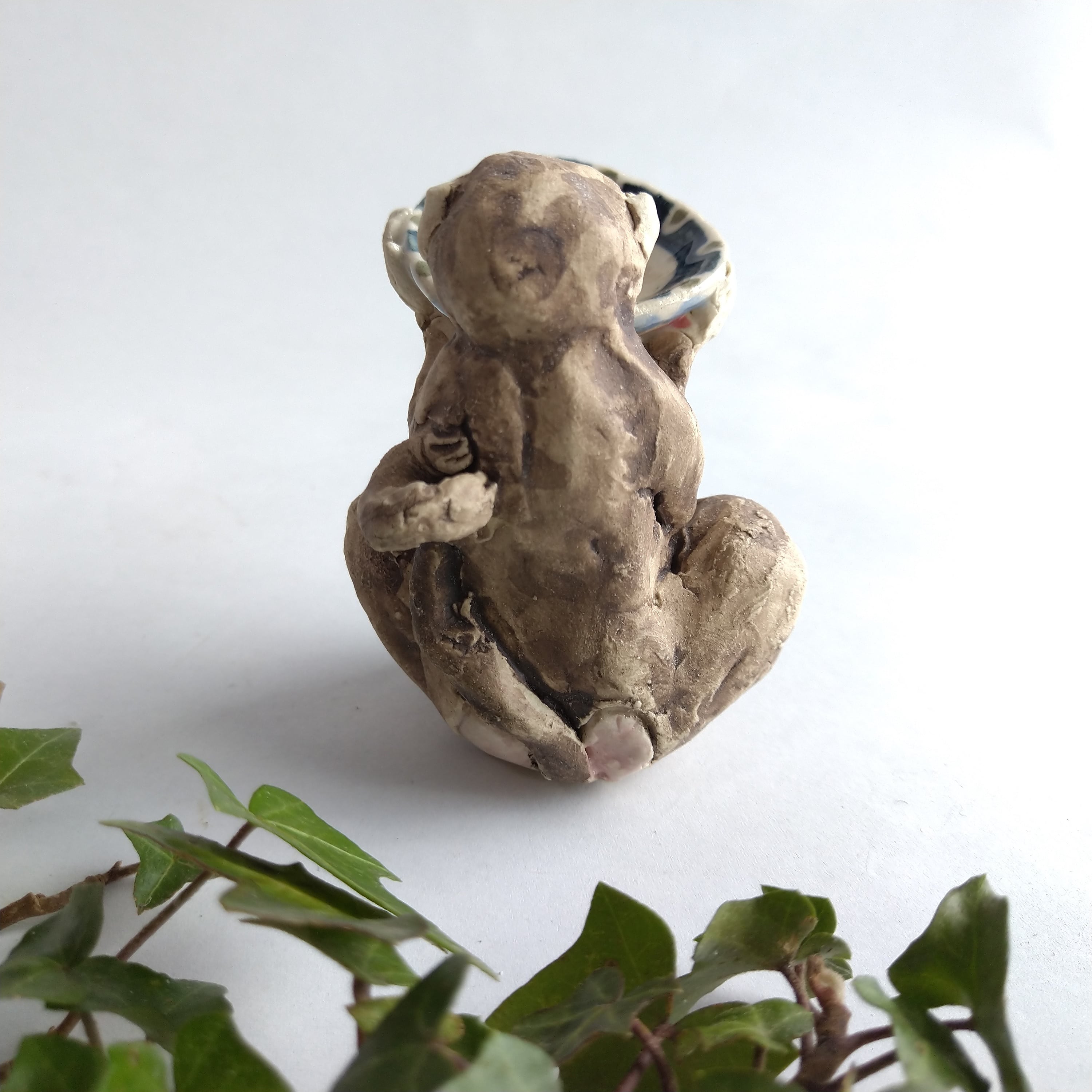 ひとりずつ手びねりで制作している陶人形で、素材は陶土を使用しています。