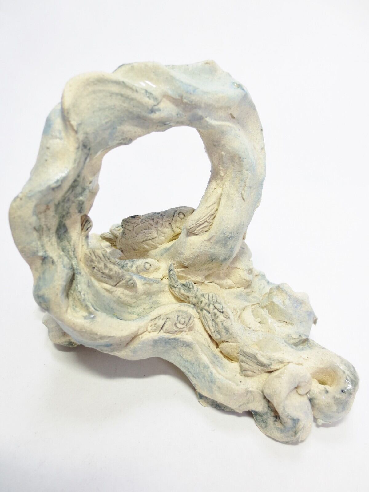 水流の一部には薄く透明釉を施しているので、その部分は少し光沢があります。