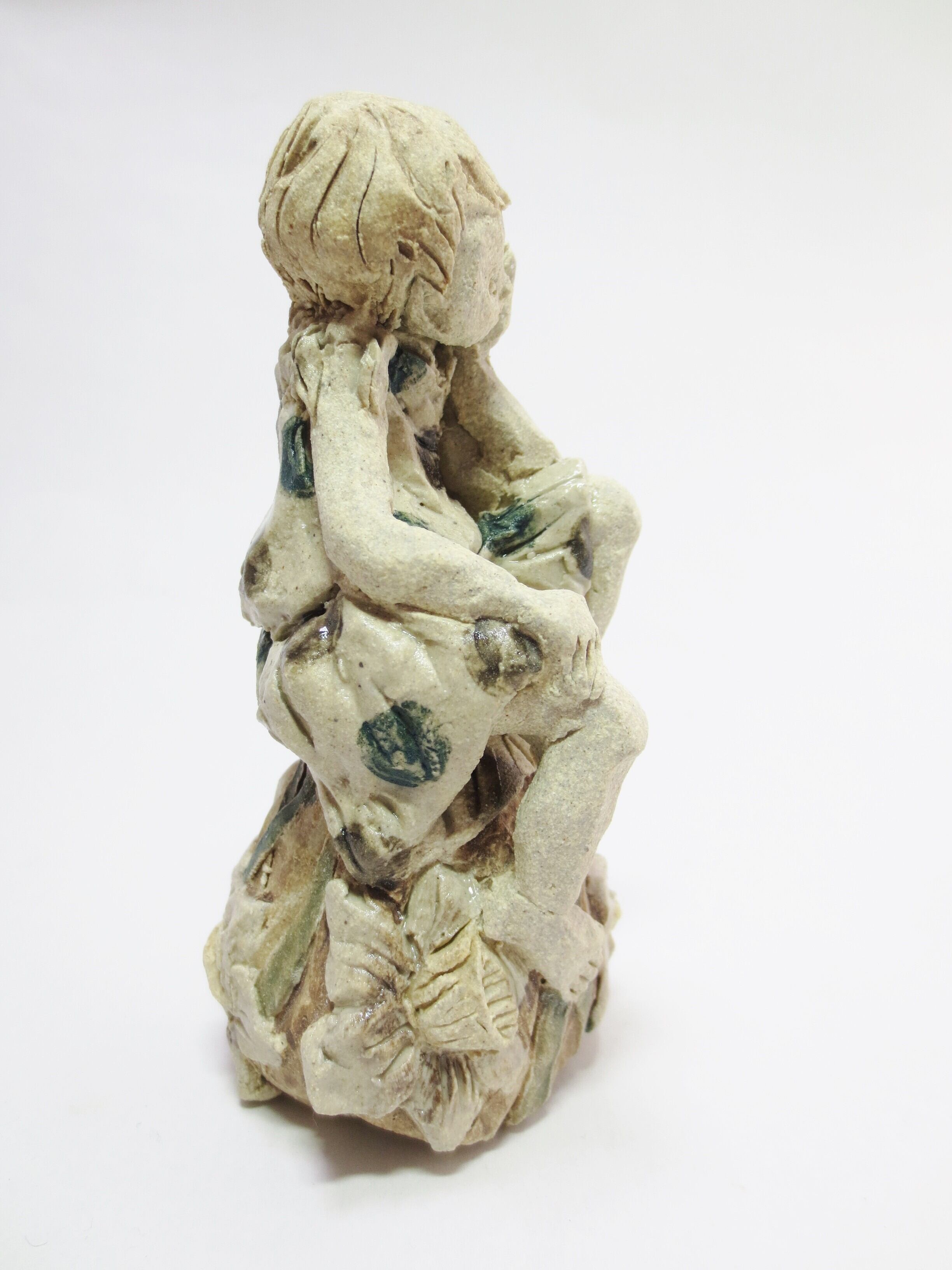 服と土台の一部分には薄く透明釉を施しているので、その部分は少し光沢があります。