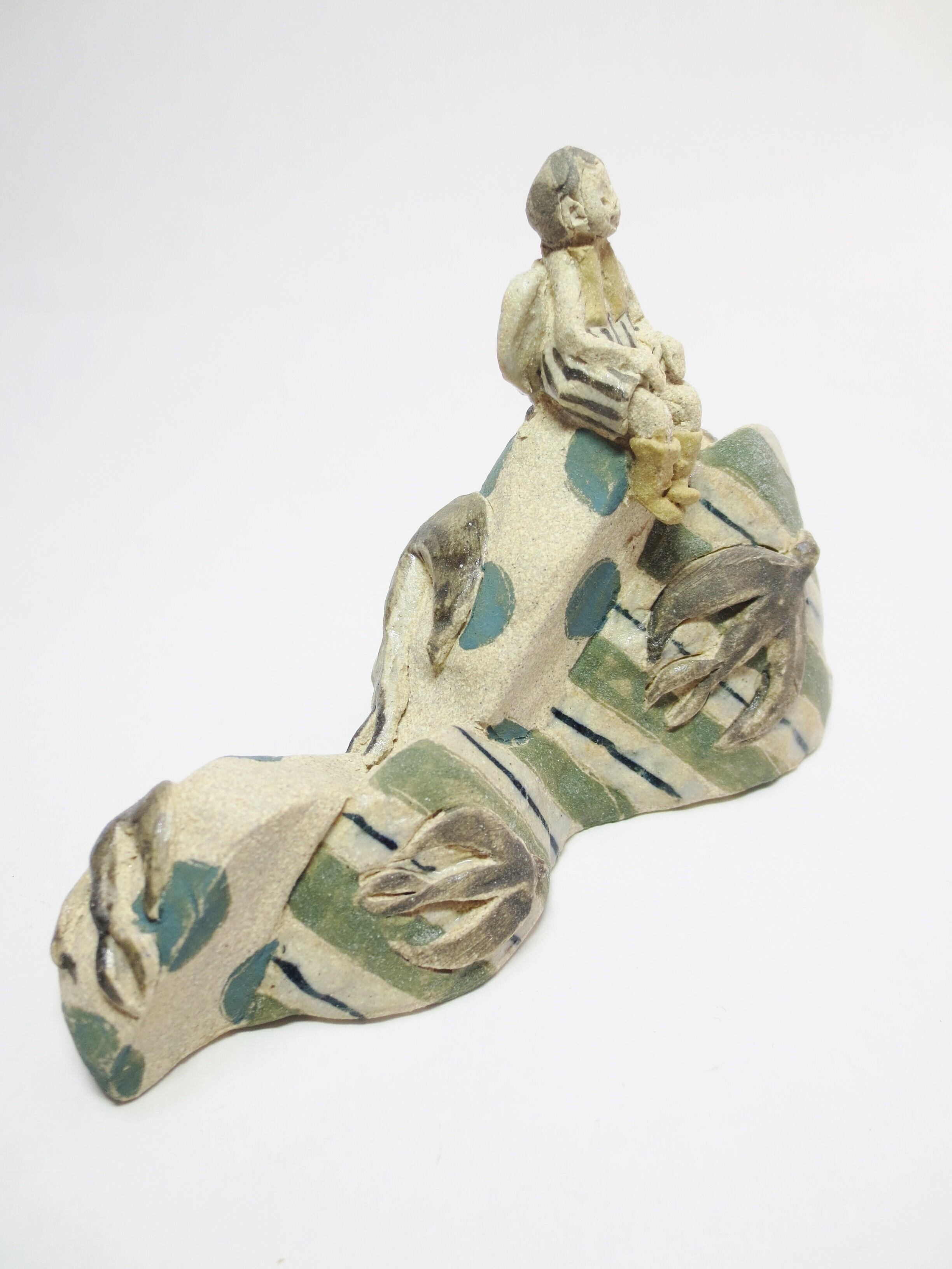 服、ツバメ、土台の一部分には薄く透明釉を施しているので、その部分は少し光沢があります。