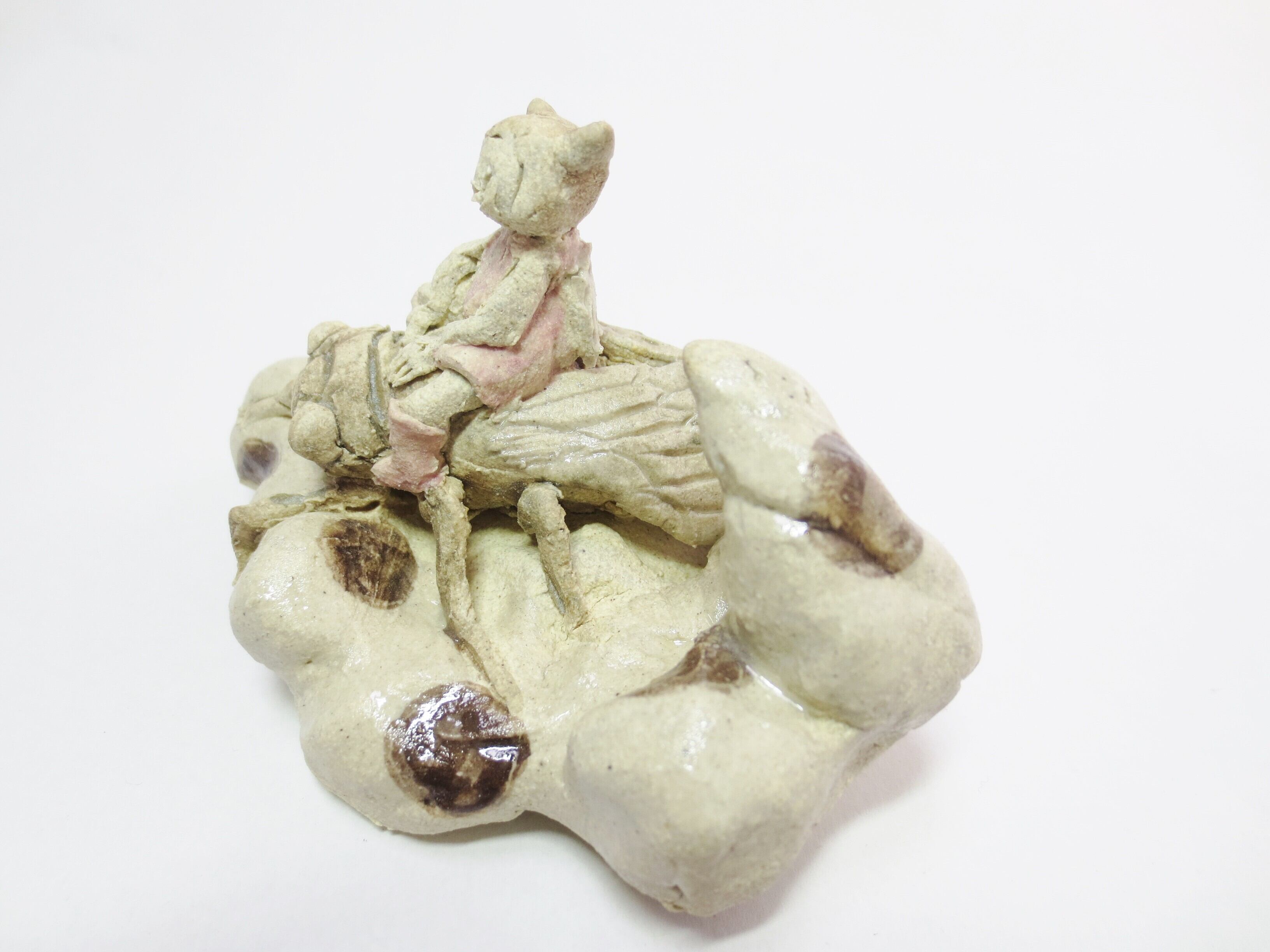 羽と土台の一部分には薄く透明釉を施しているので、その部分は少し光沢があります。